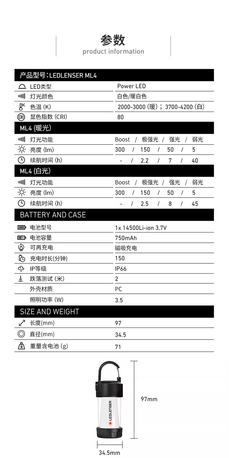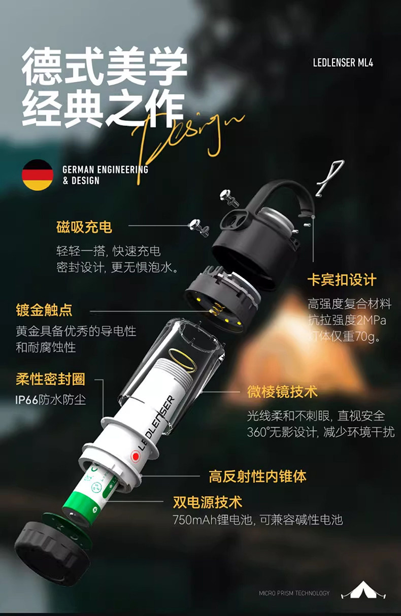 德國Ledlenser萊德雷神ML4可充電便捷掛燈戶外露營燈馬燈帳篷燈