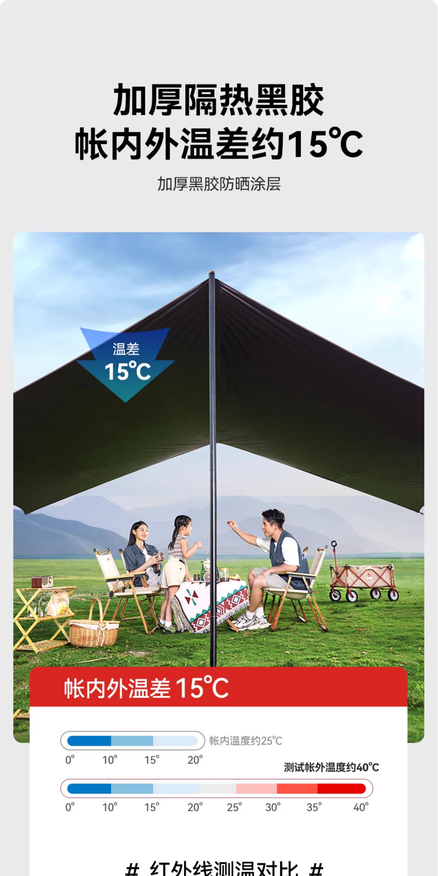 我飛黑膠天幕帳篷戶外露營全套防曬裝備防雨六角蝶形野營遮陽棚