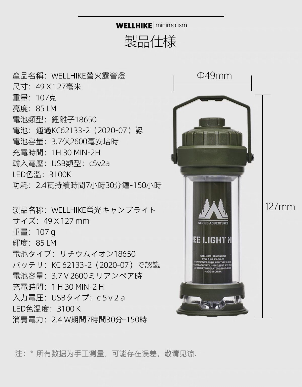 | 燈的種類 | 電池燈 |