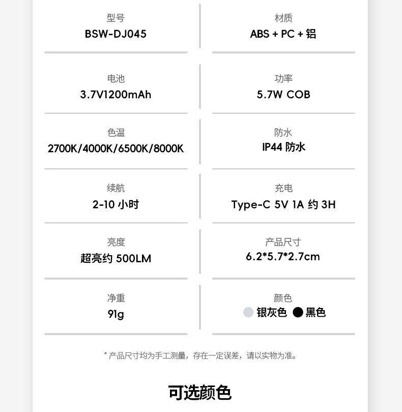 色溫範圍 2700k~6500k
