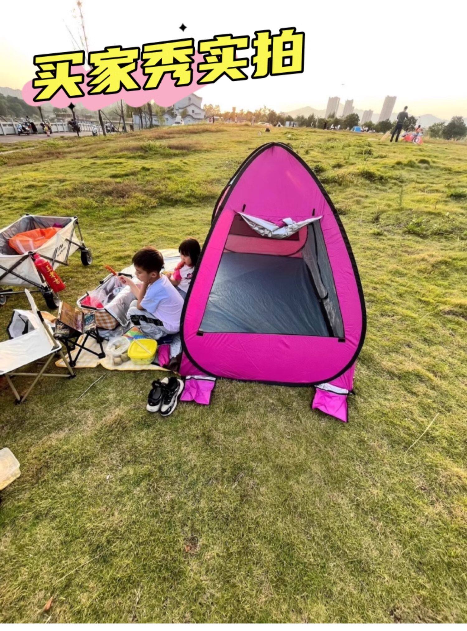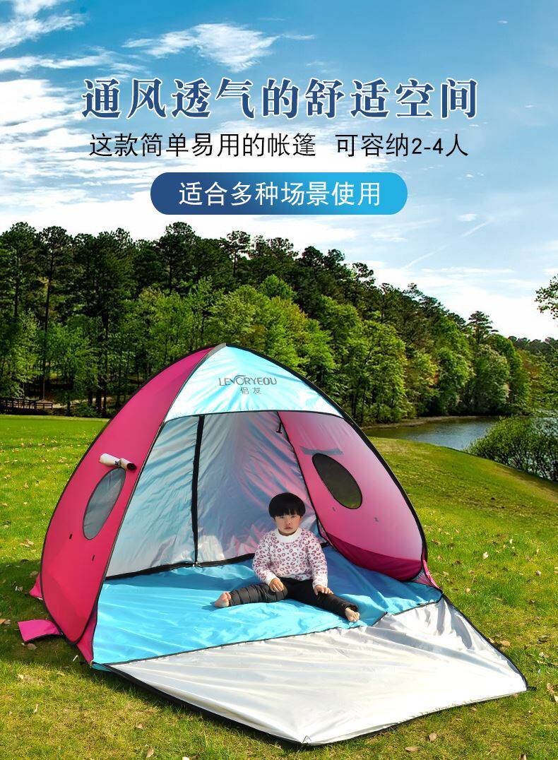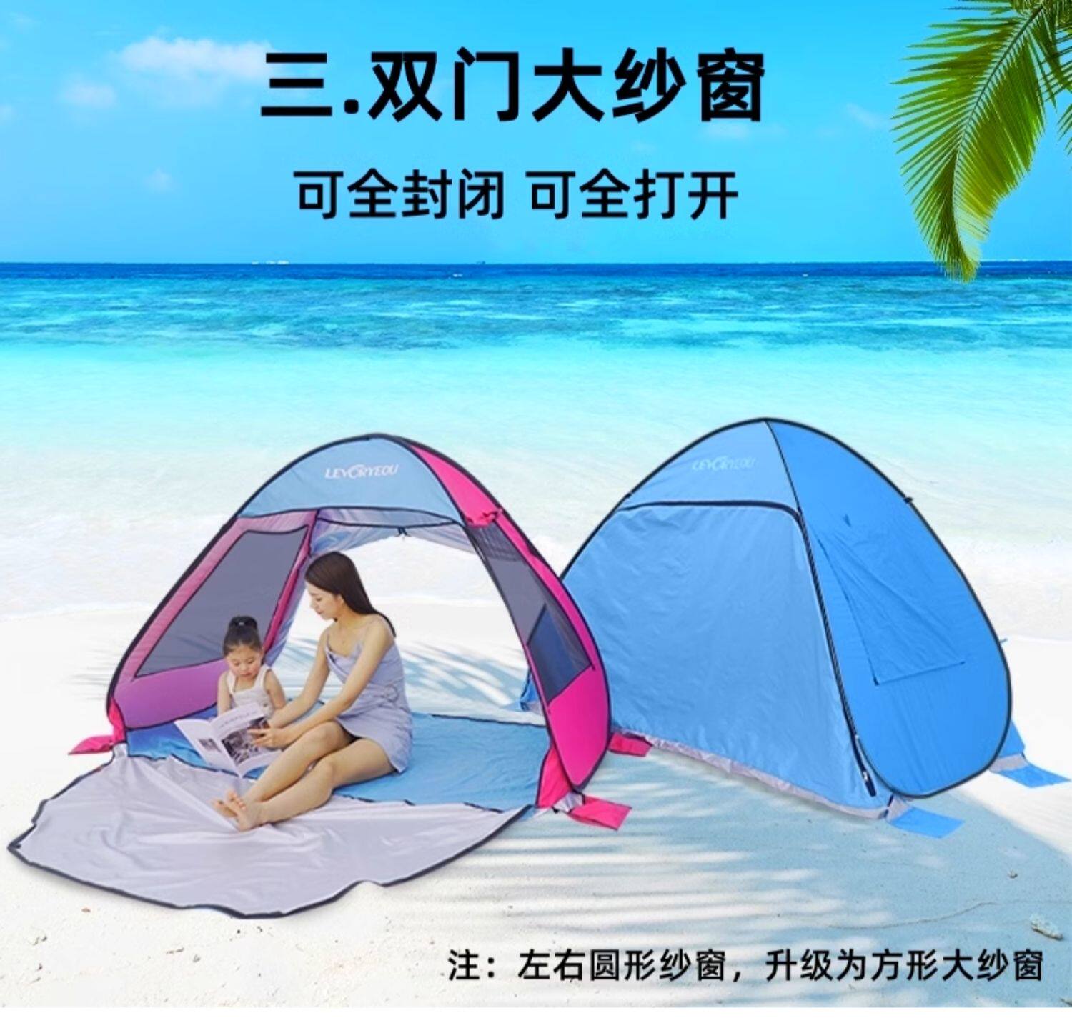 兒童春遊沙灘防曬小帳篷戶外可攜式折曡速開簡易海邊遮陽露營野餐