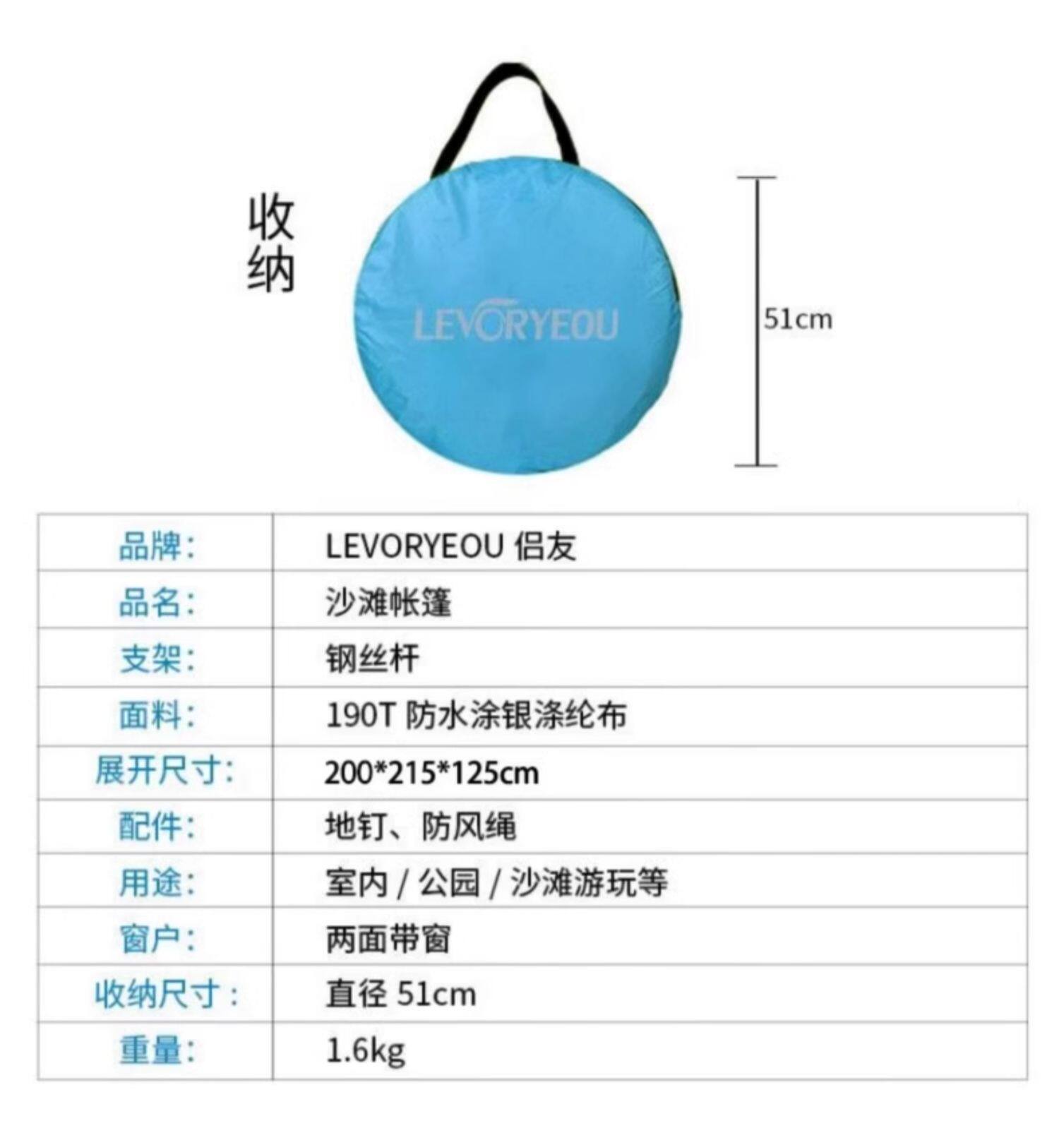 | 帳底材質 | 170T防水滌綸 |