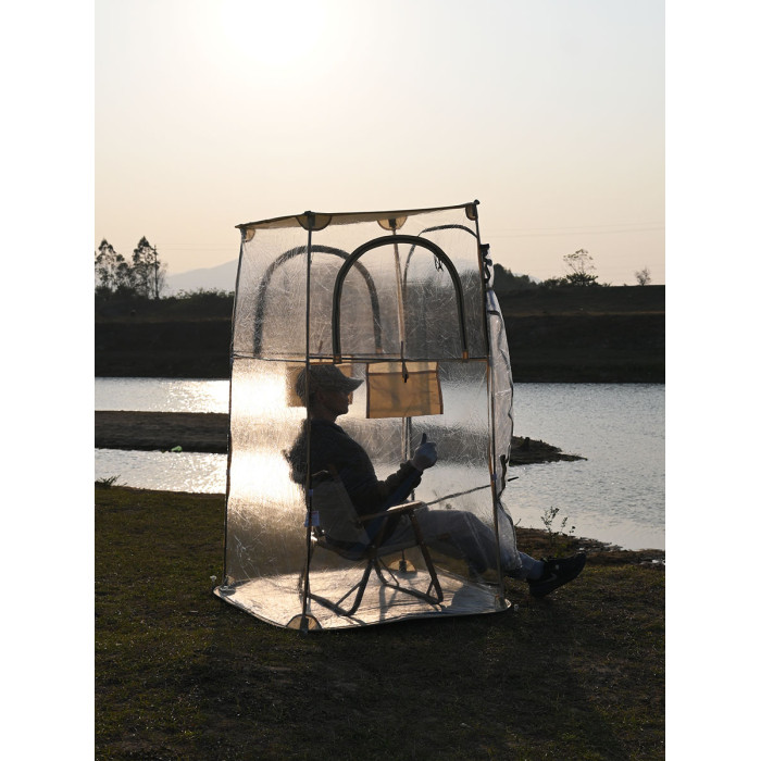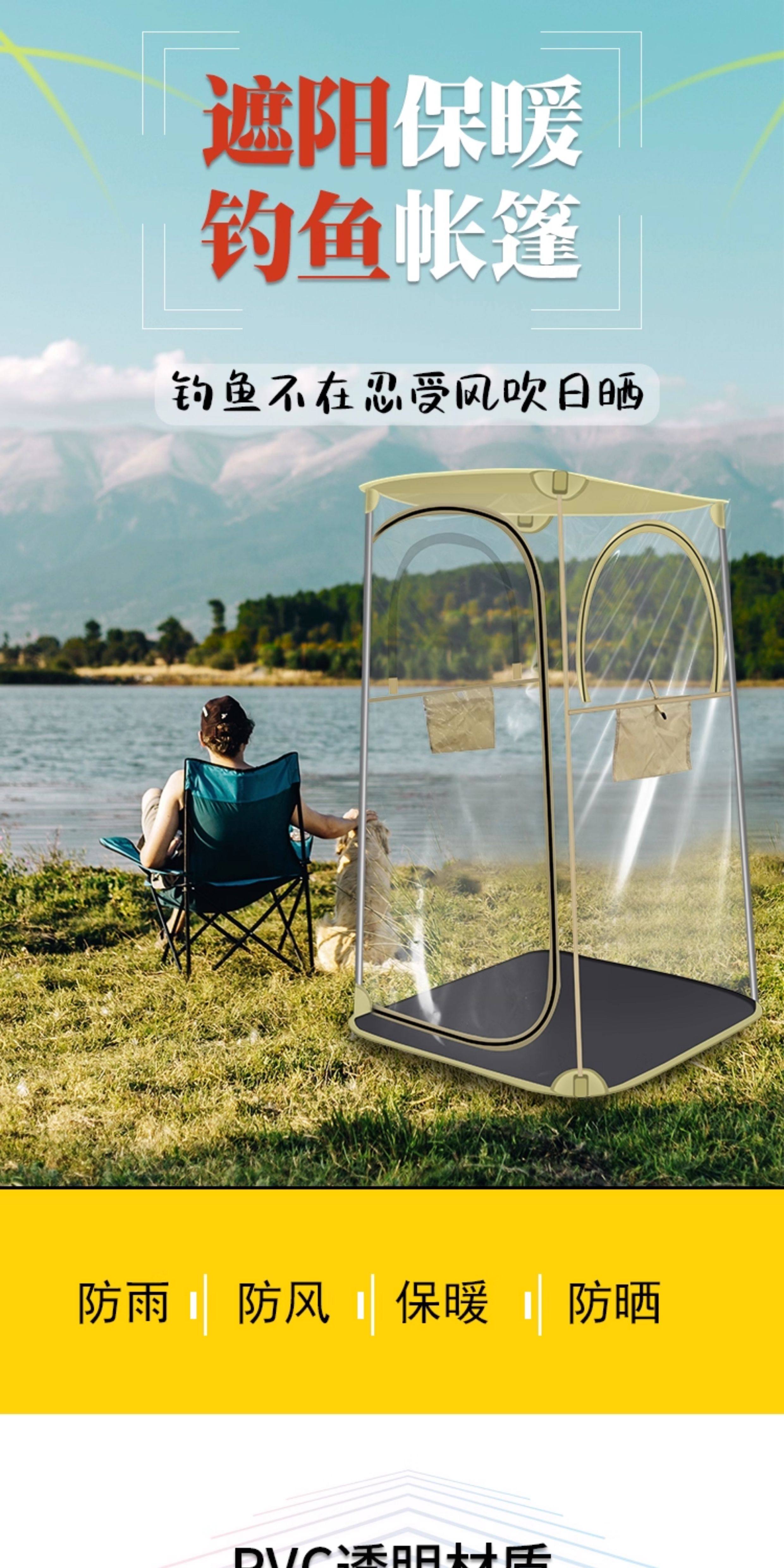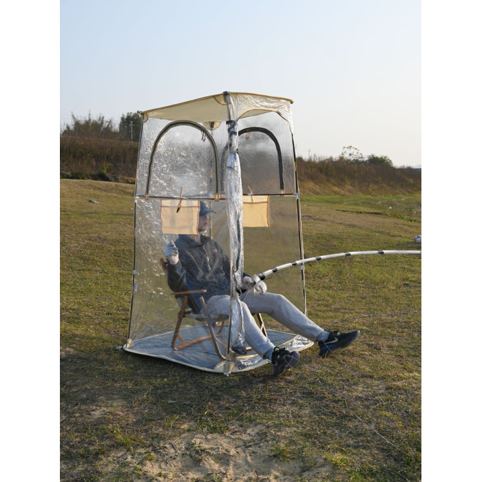冬季戶外釣魚帳篷防風雨保暖防寒可攜式透明全景曬太陽PVC四面帳