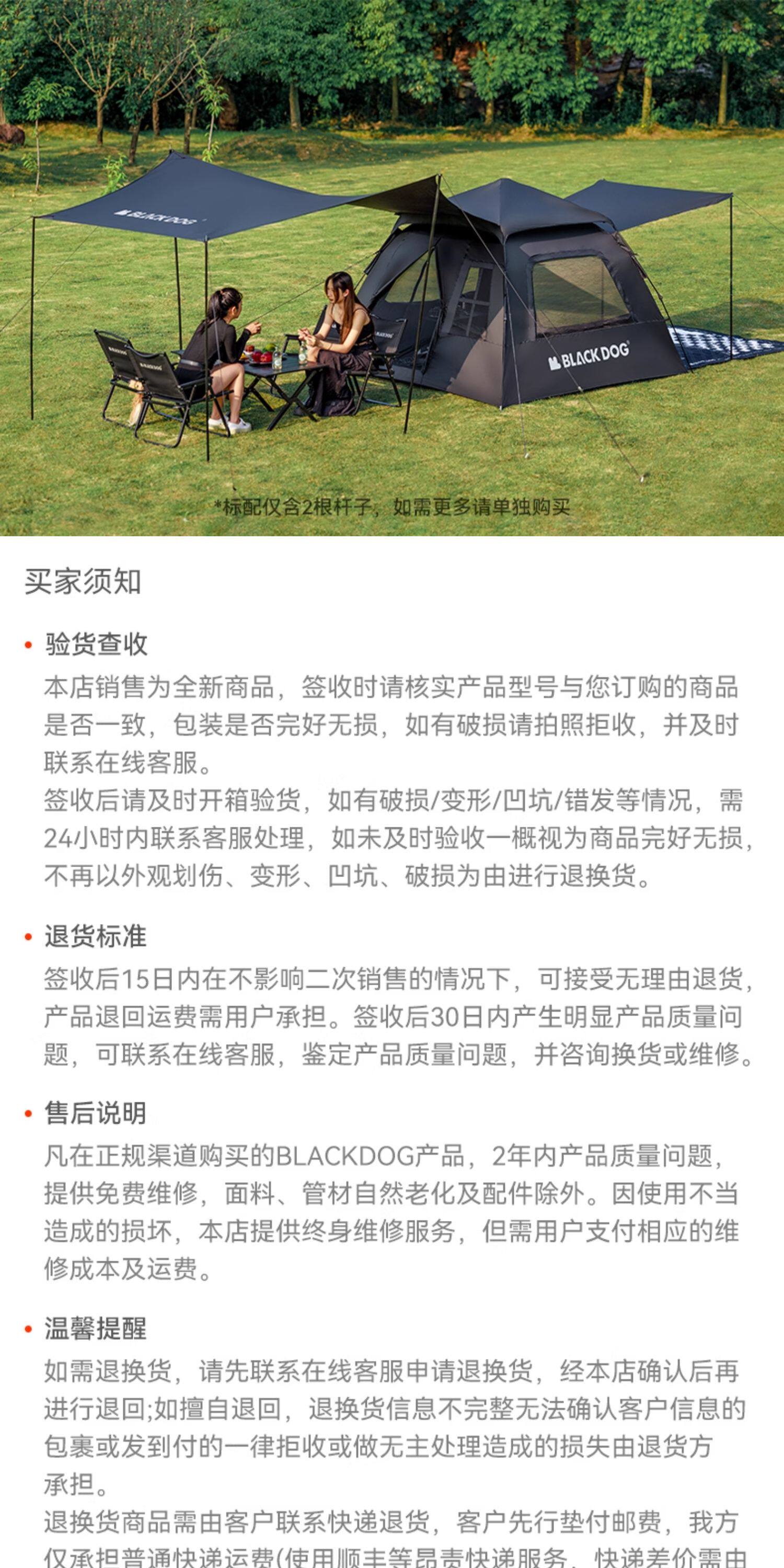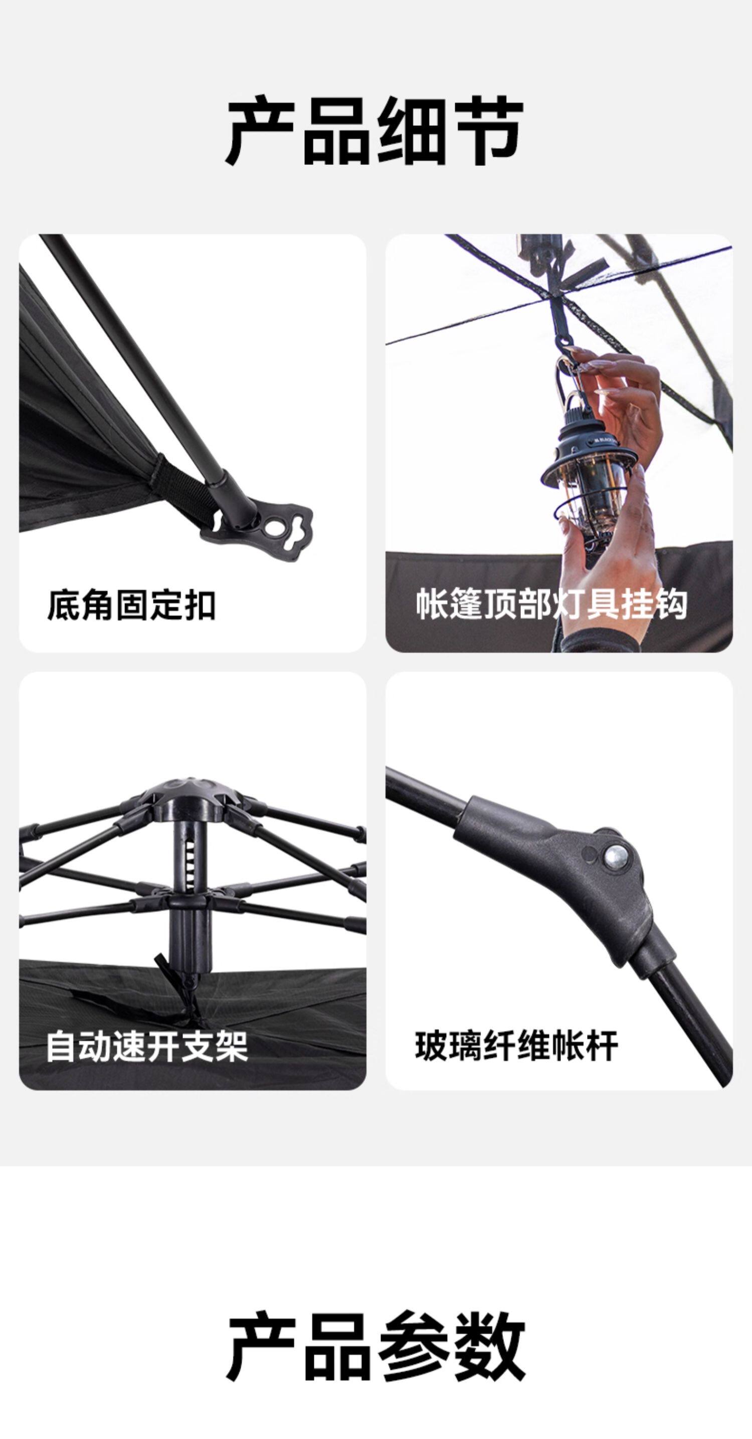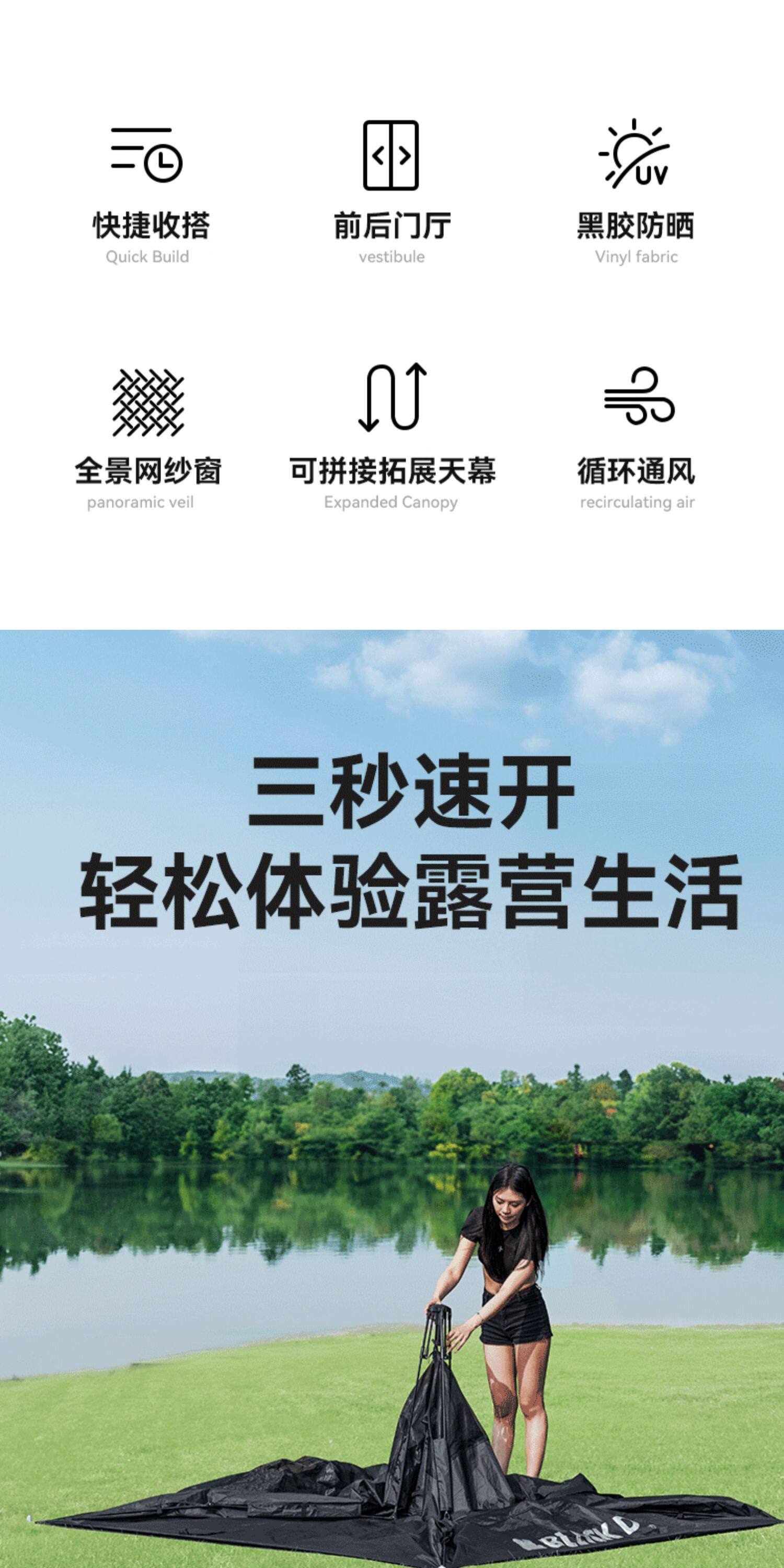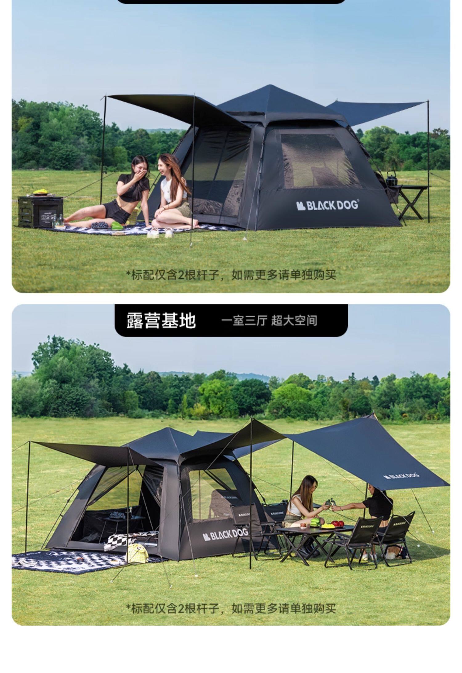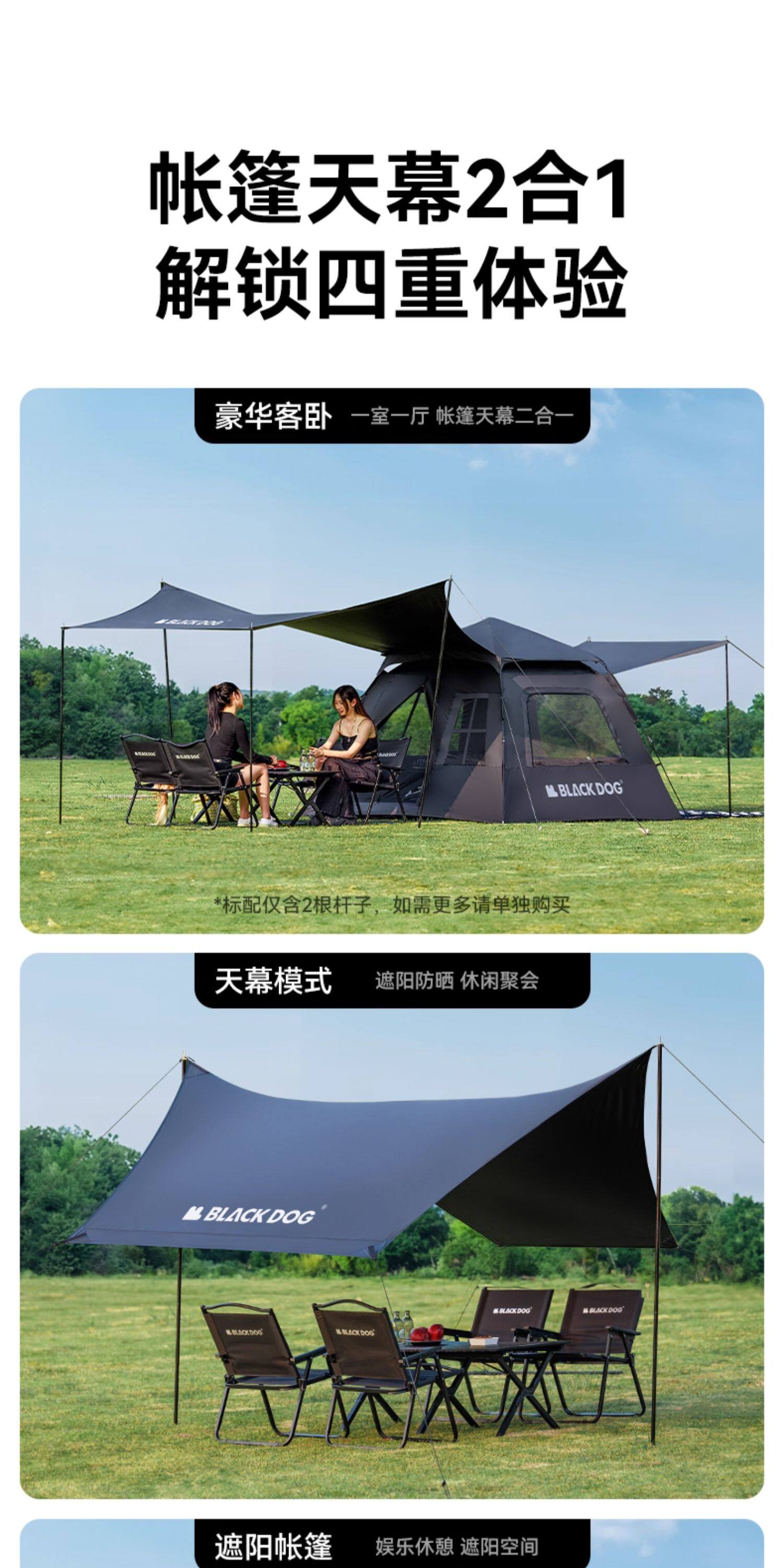 BLACKDOG黑狗露營帳篷戶外野營過夜黑膠防曬折曡速開露營全套裝備