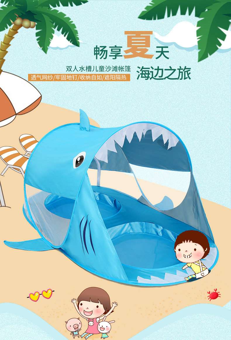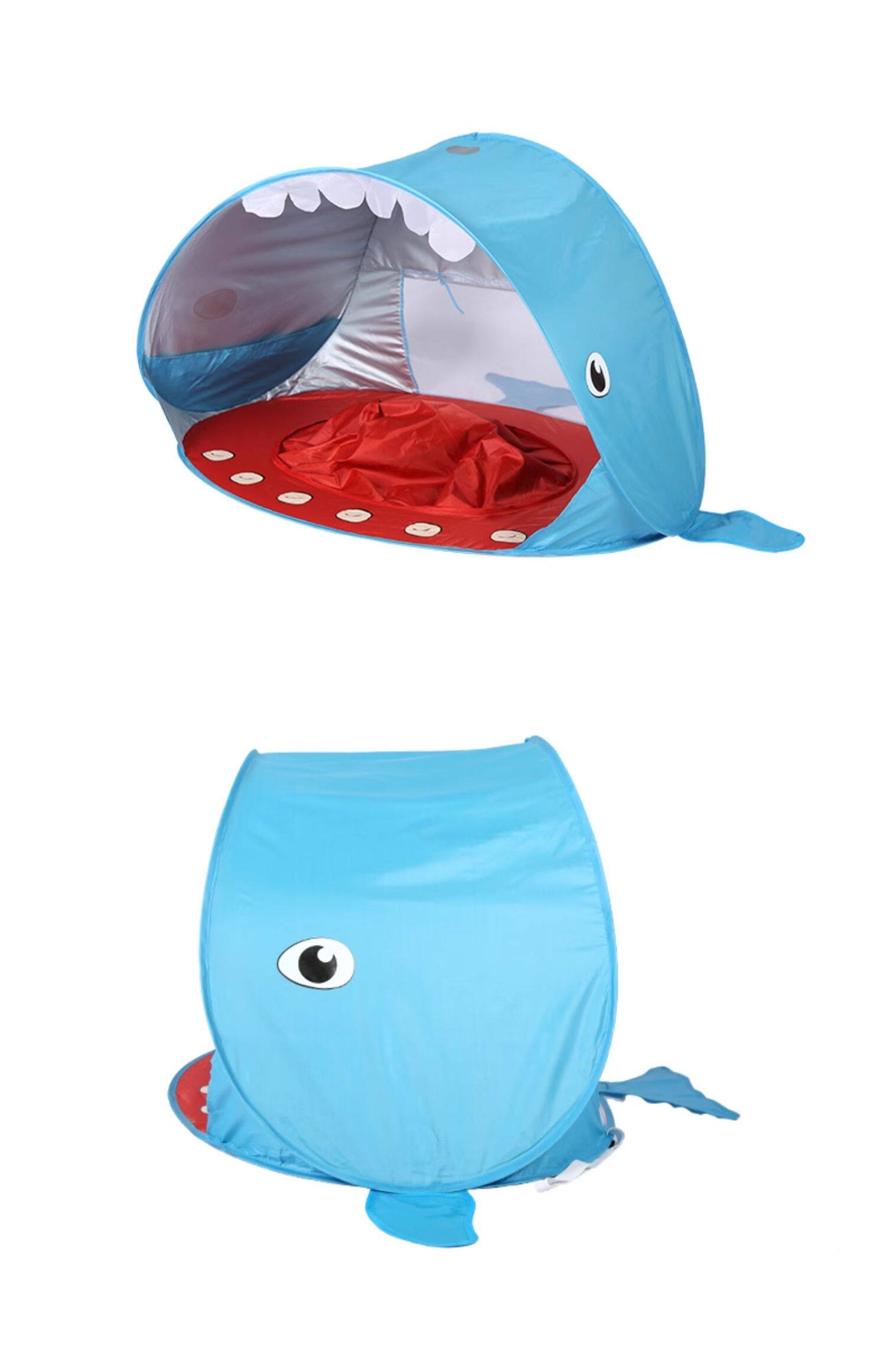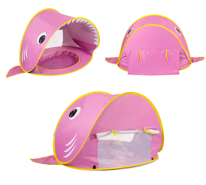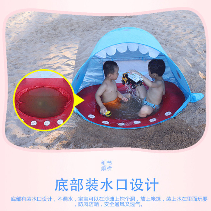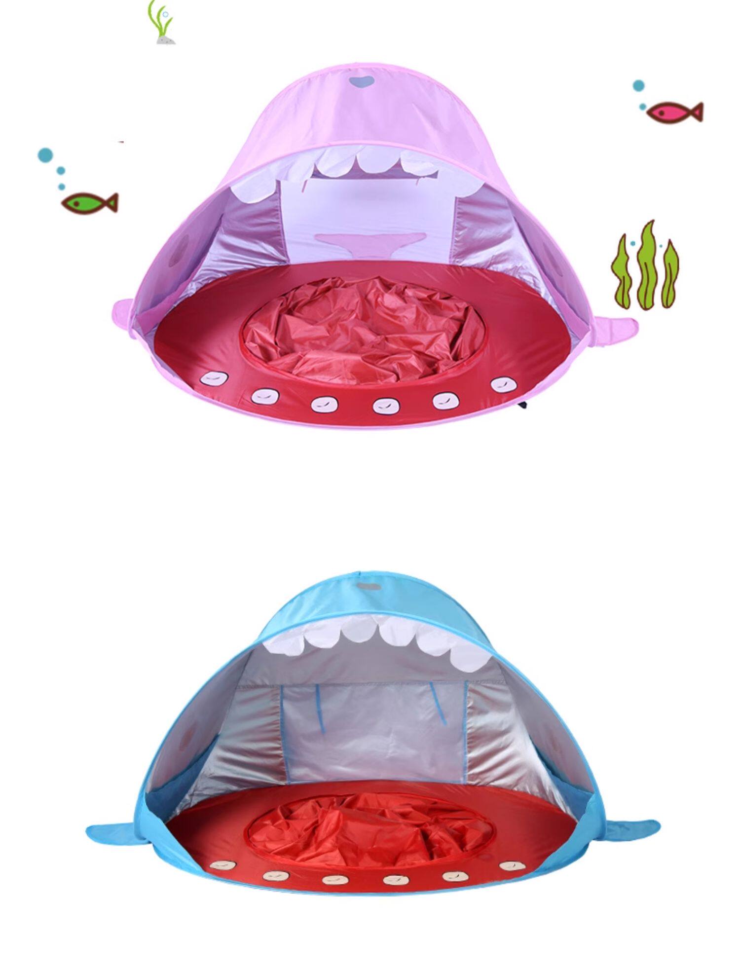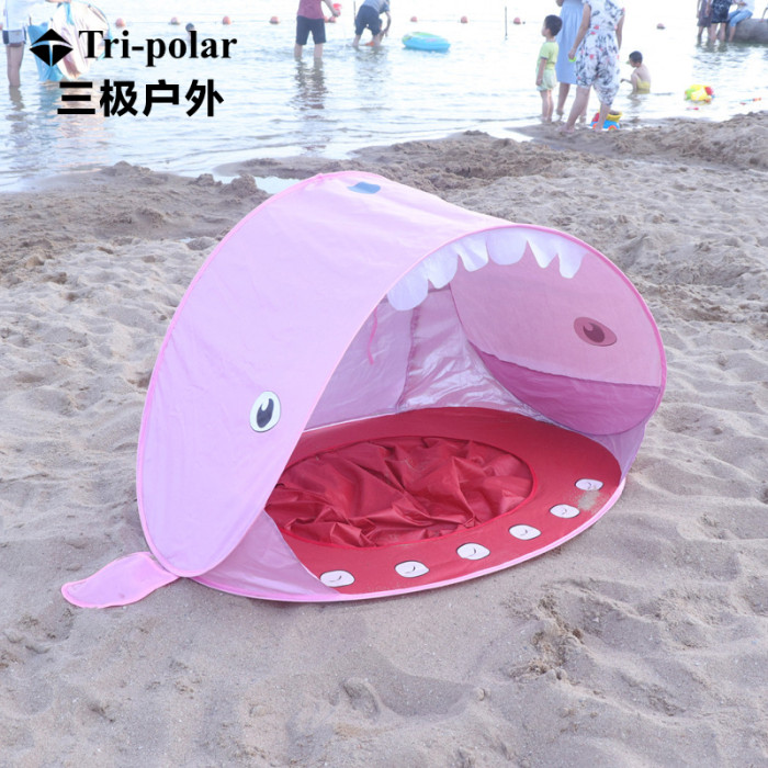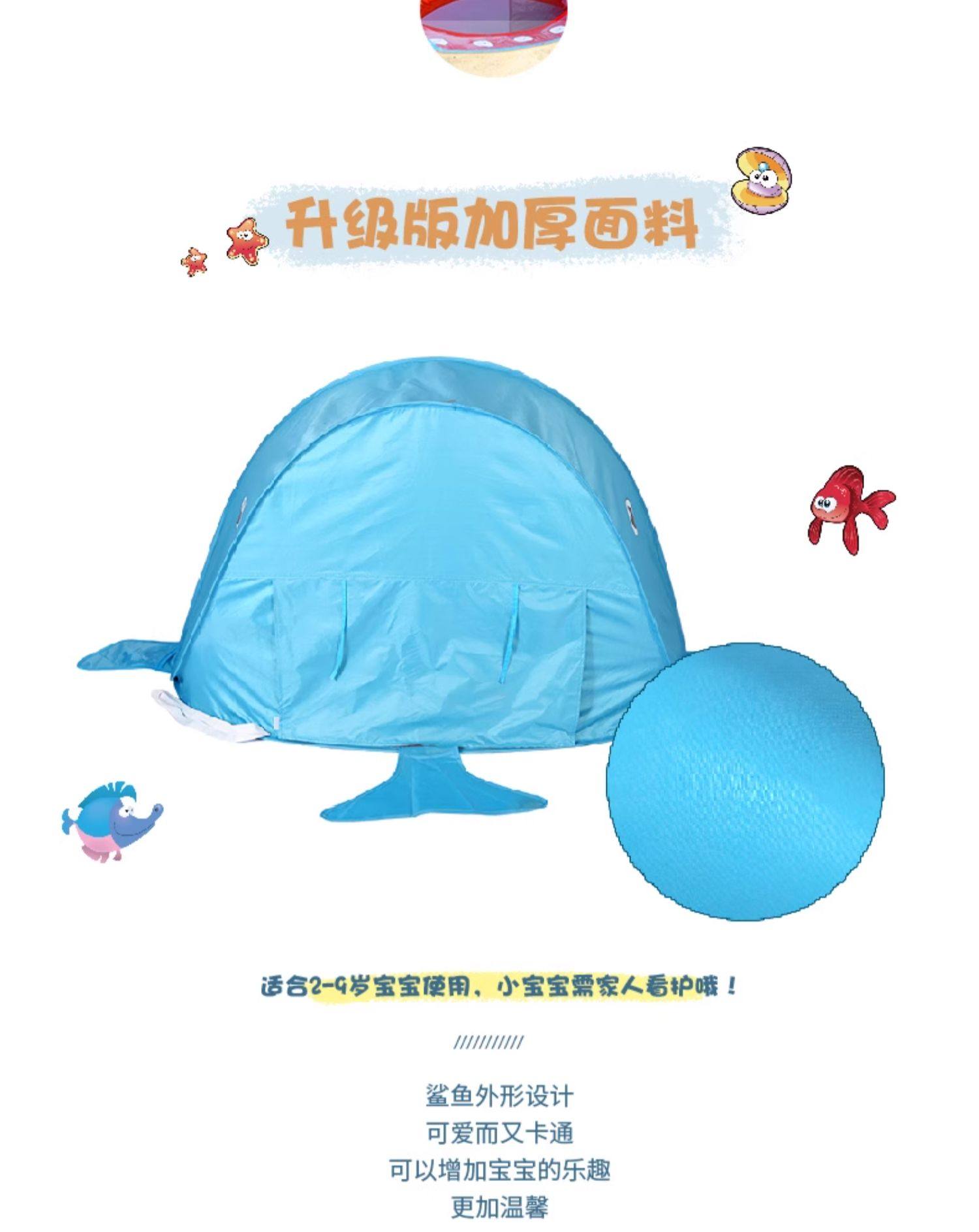 全自動速開兒童沙灘帳篷簡易可攜式可愛鯊魚小孩海邊玩沙遮陽遊戯屋