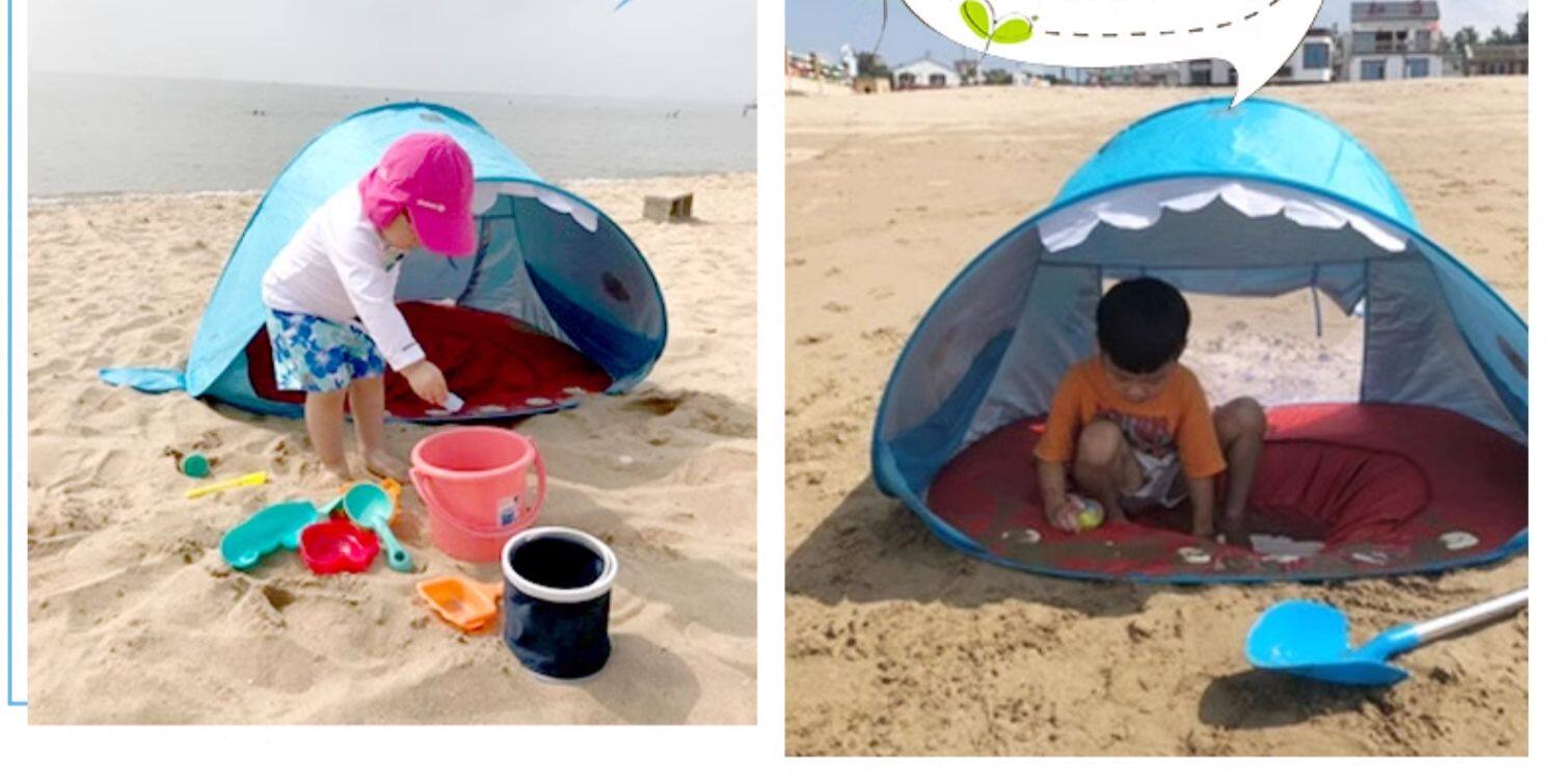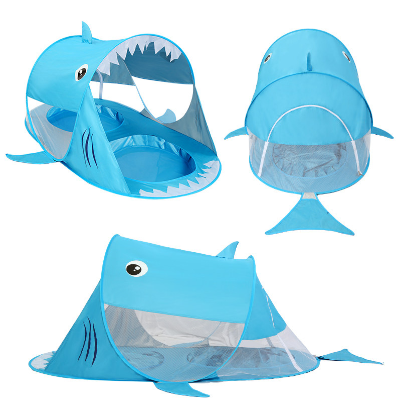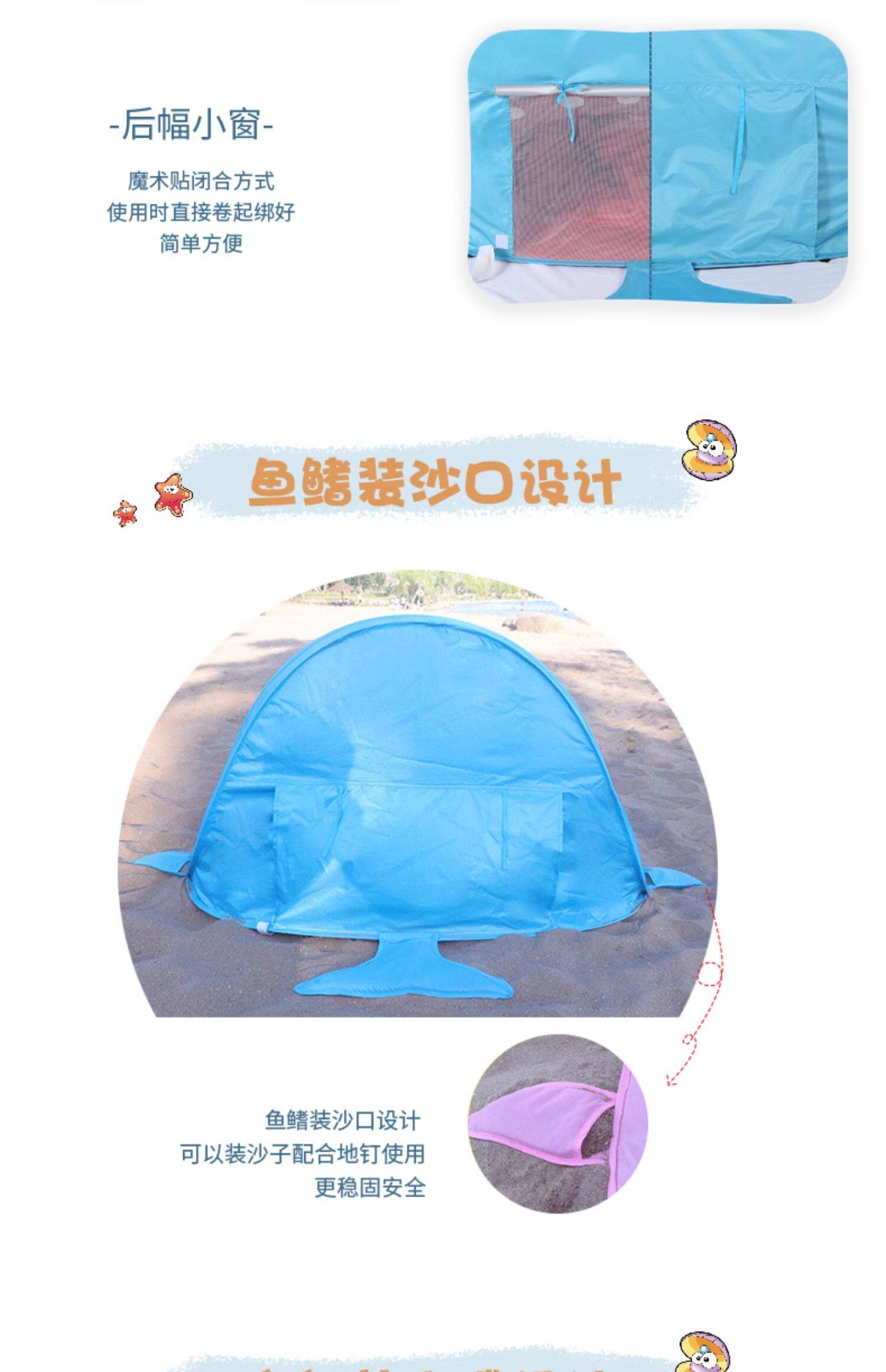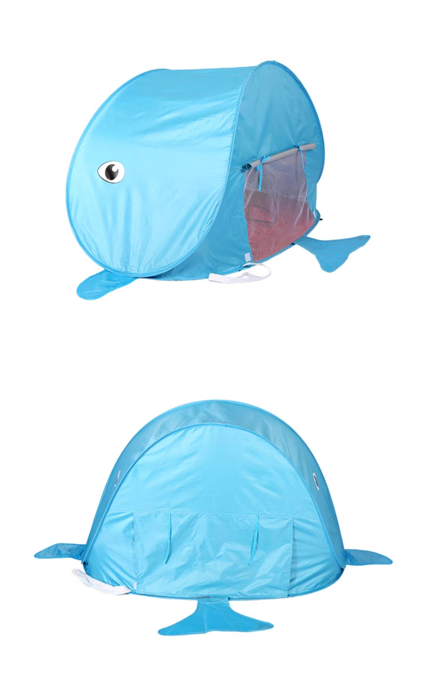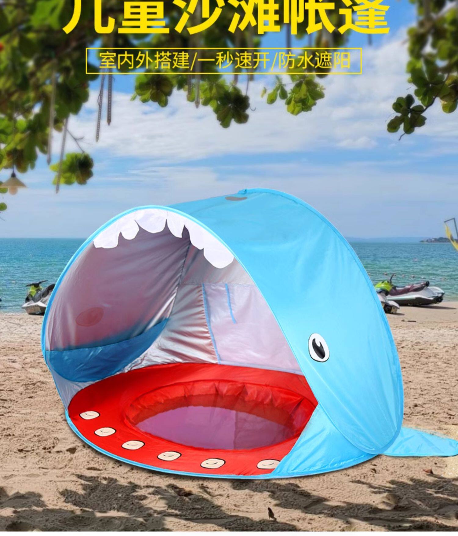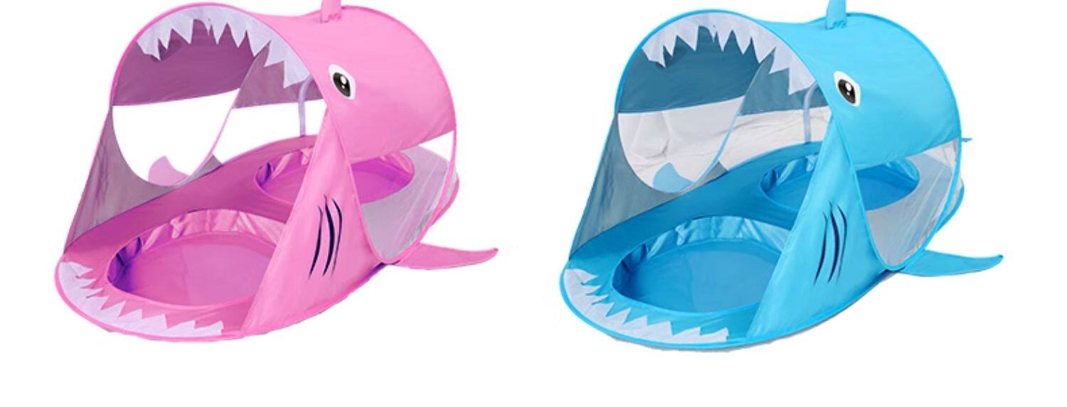 全自動速開兒童沙灘帳篷簡易可攜式可愛鯊魚小孩海邊玩沙遮陽遊戯屋