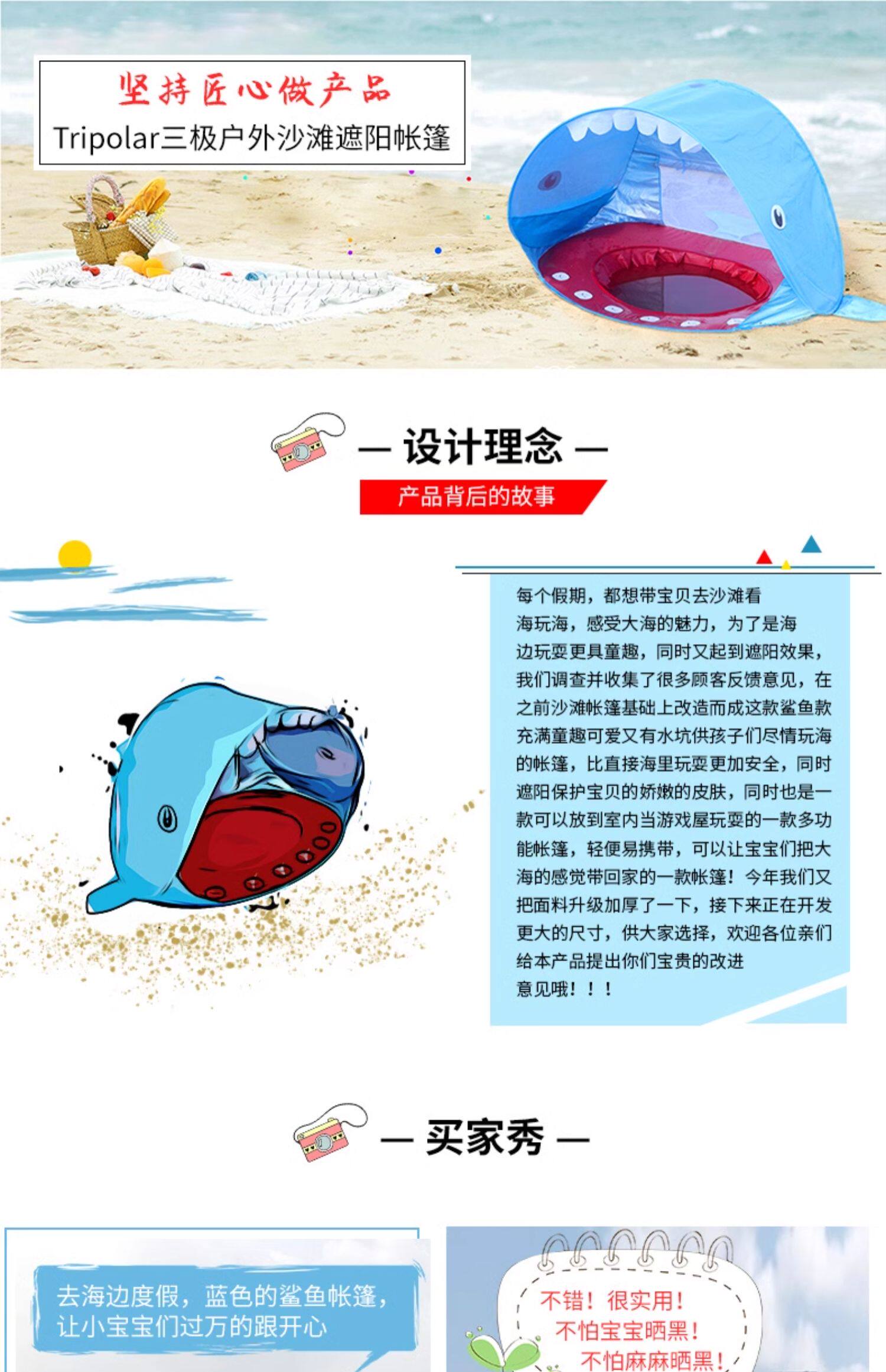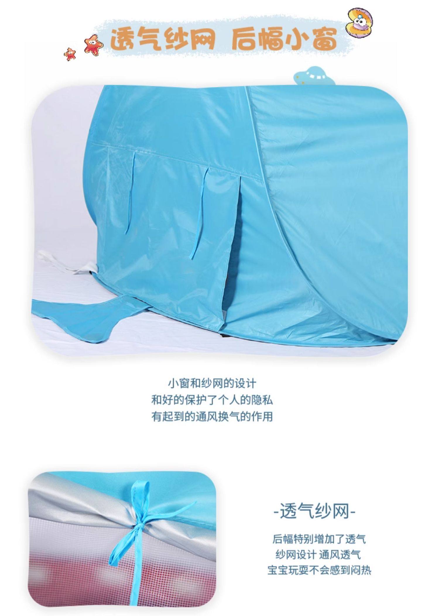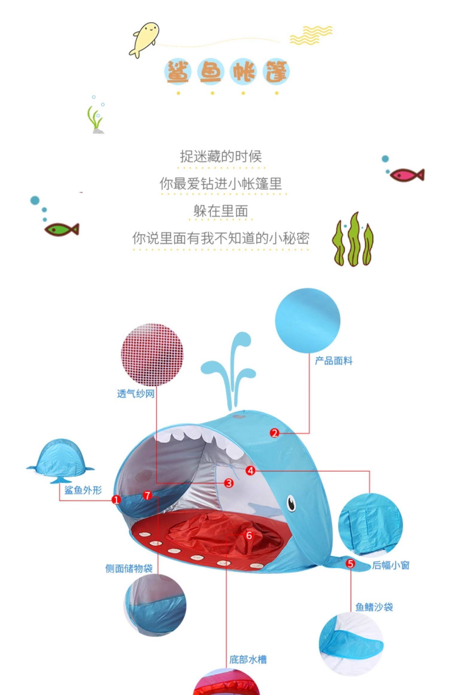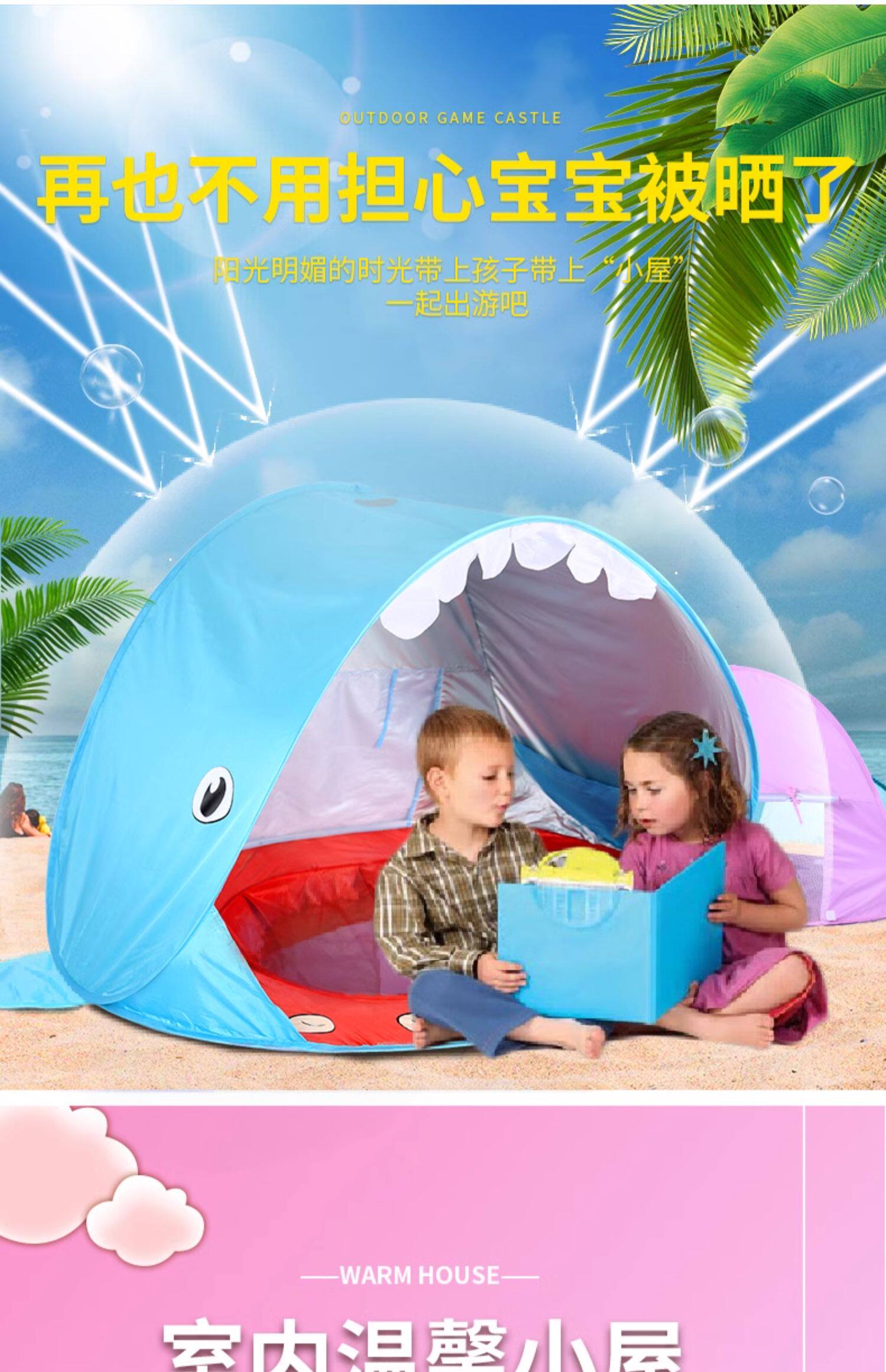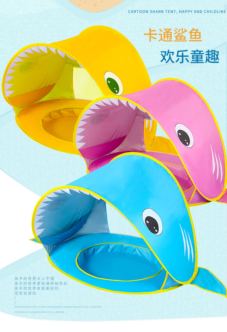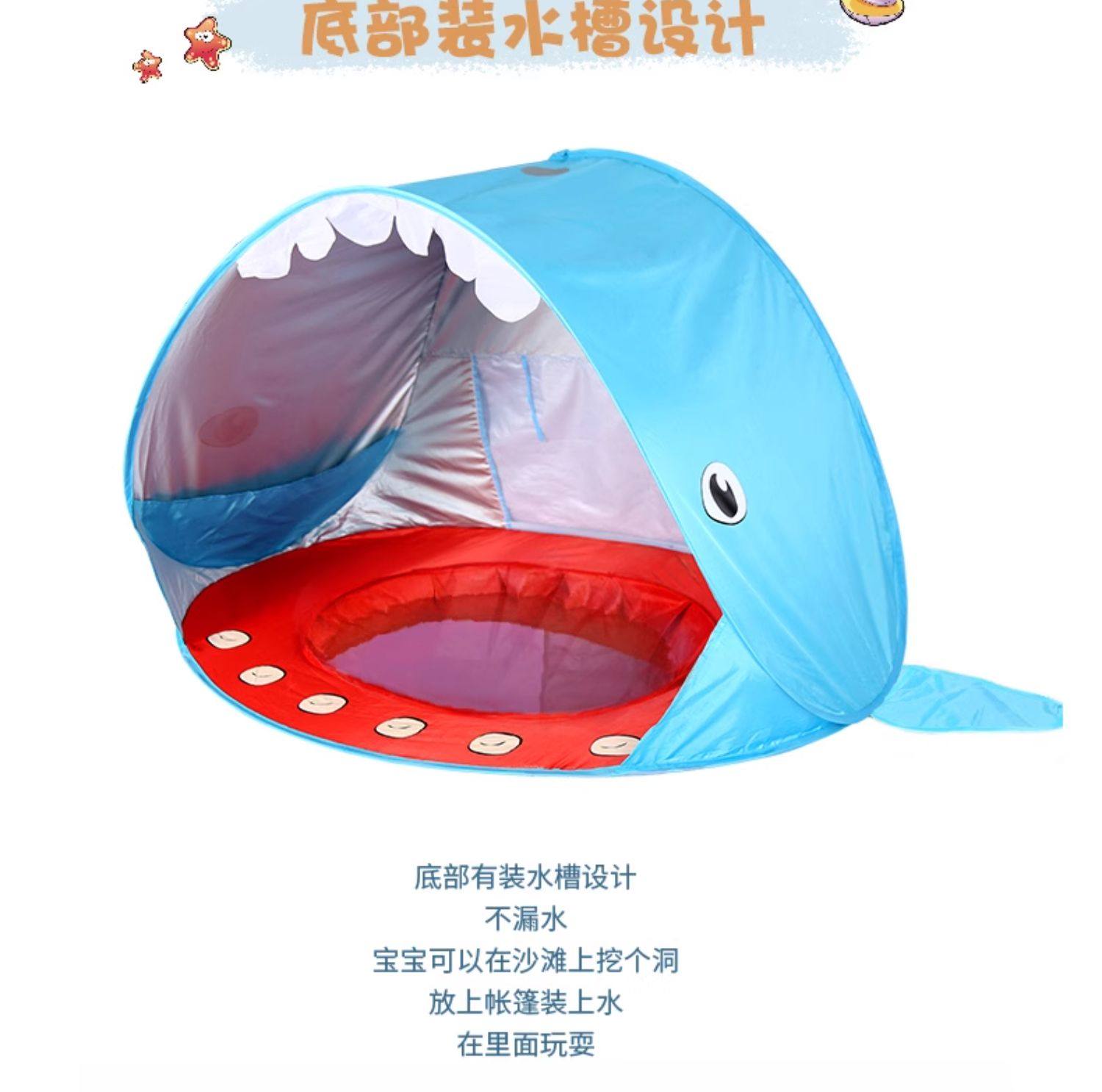 全自動速開兒童沙灘帳篷簡易可攜式可愛鯊魚小孩海邊玩沙遮陽遊戯屋