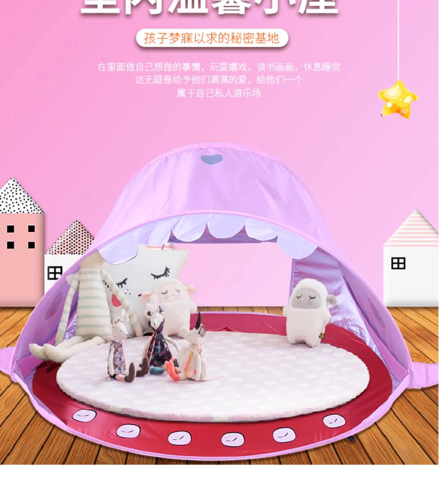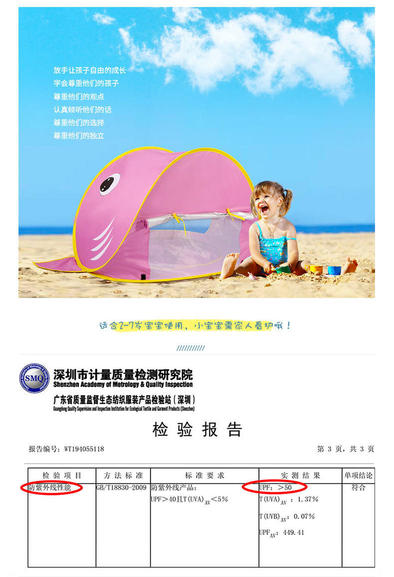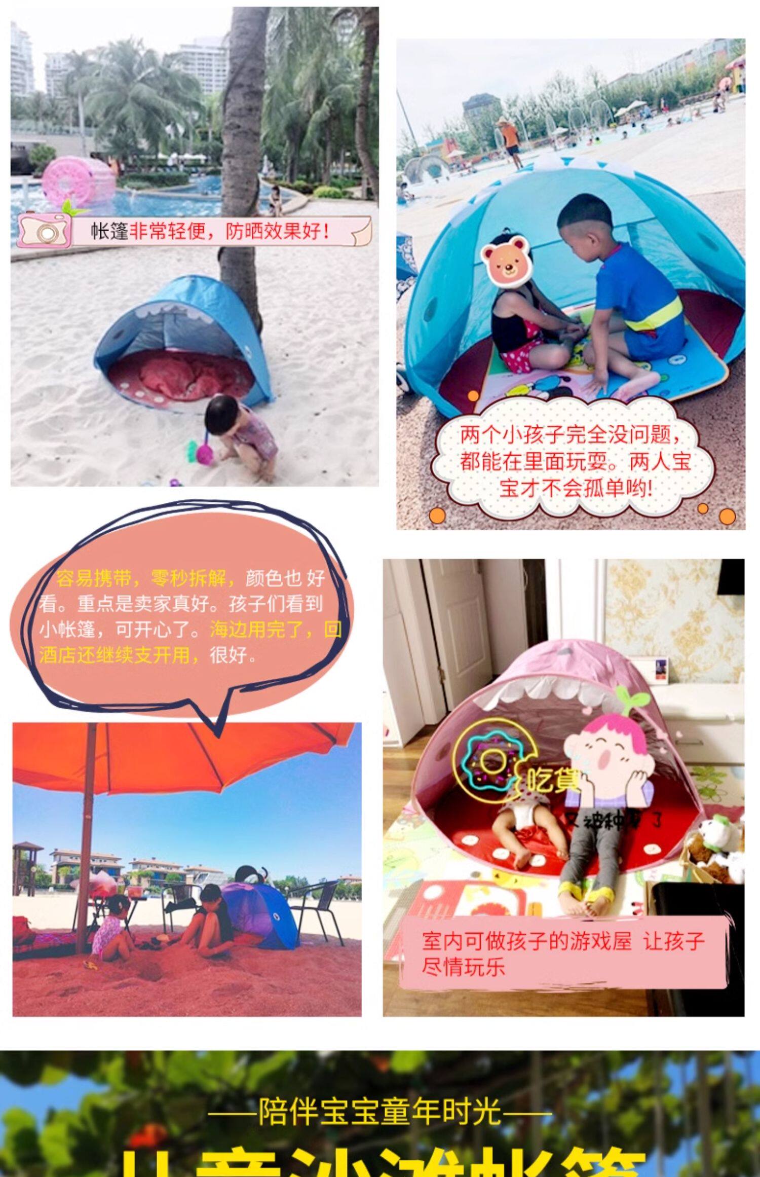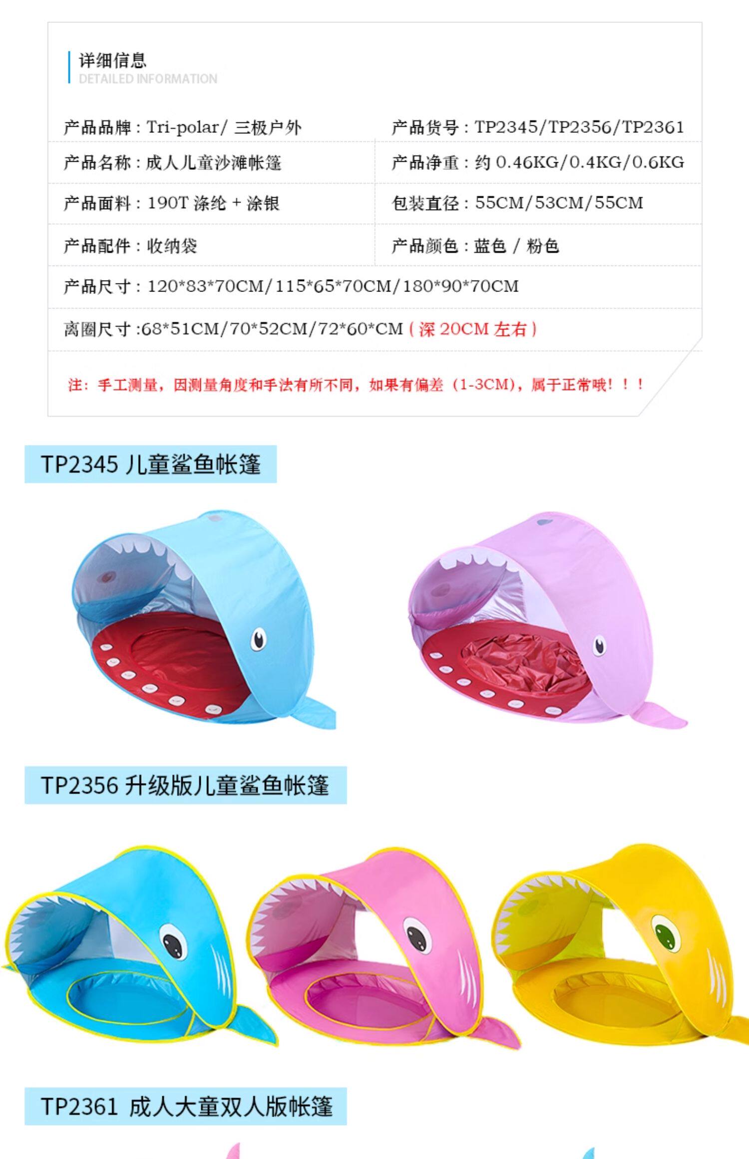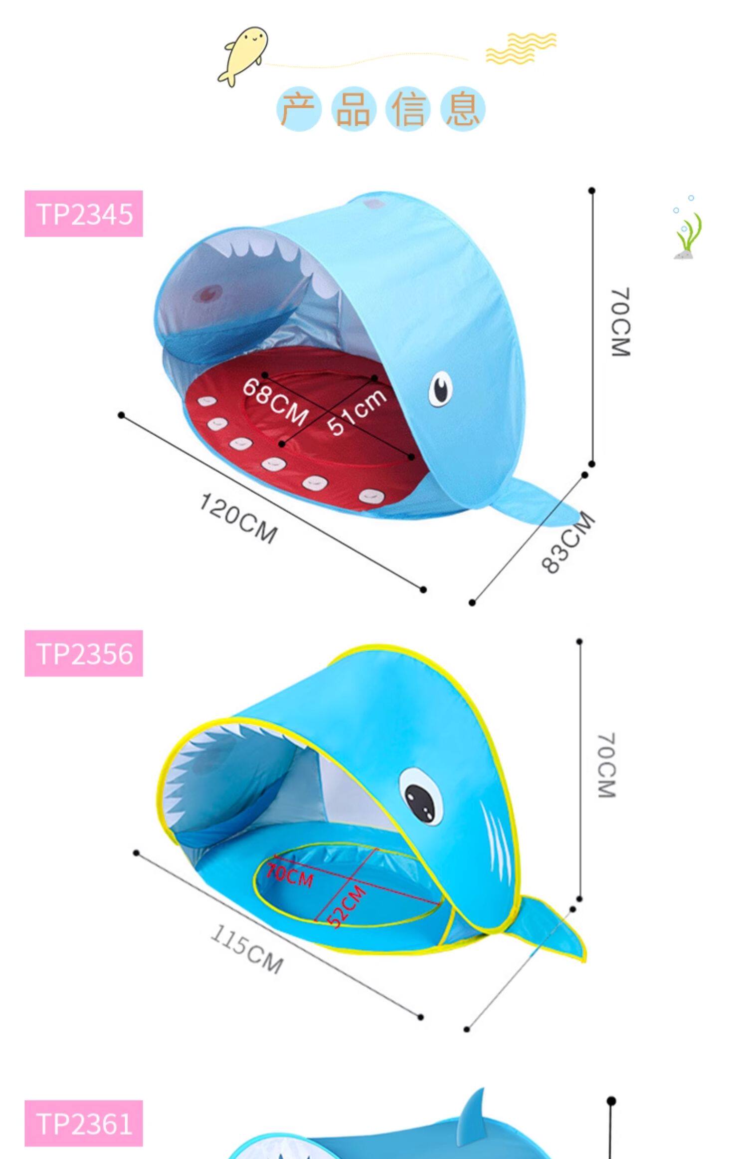 全自動速開兒童沙灘帳篷簡易可攜式可愛鯊魚小孩海邊玩沙遮陽遊戯屋