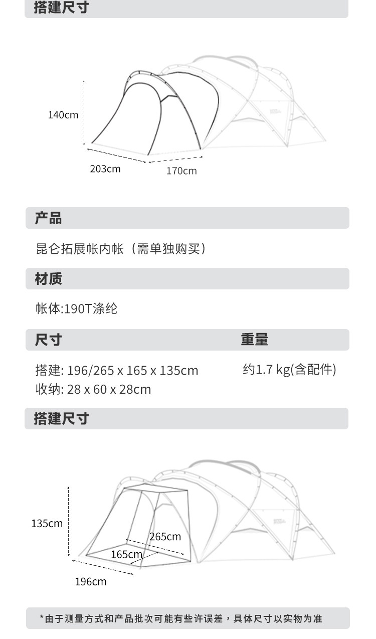 | 帳篷結搆 | 單層帳 |