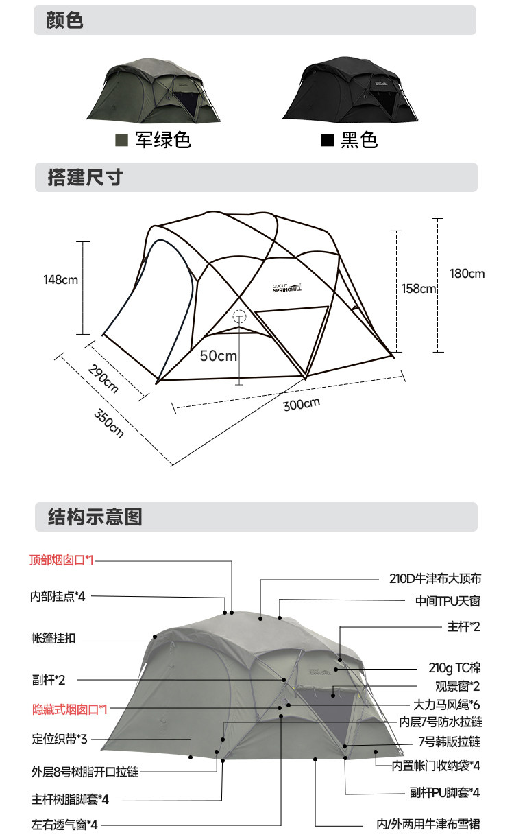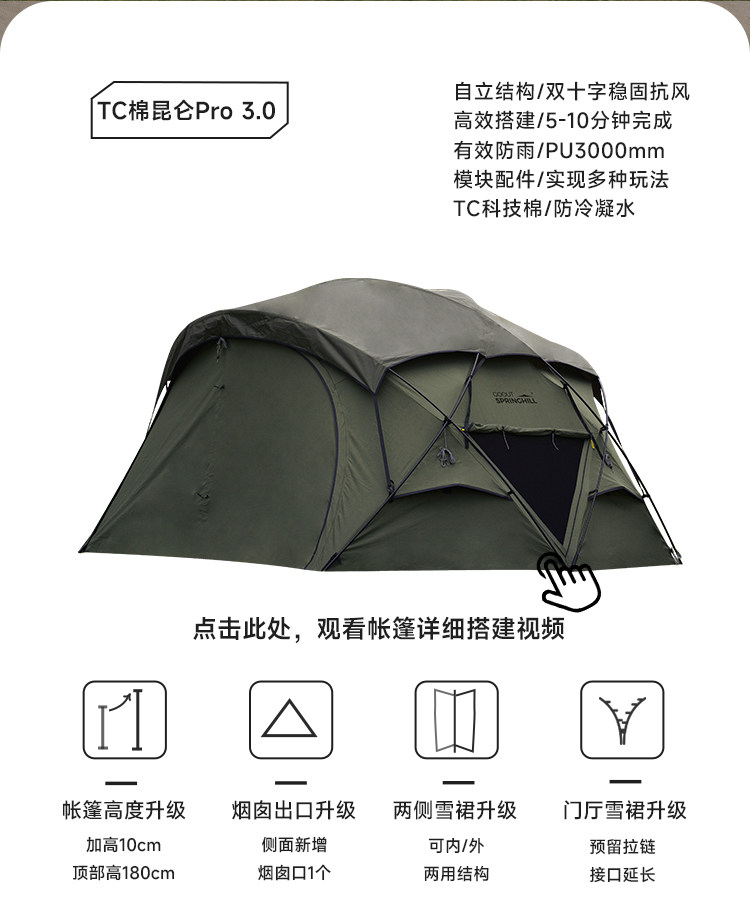 春山棉布崑侖3.0球形帳篷戶外露營庇護所客廳半球形帳篷防雨加厚
