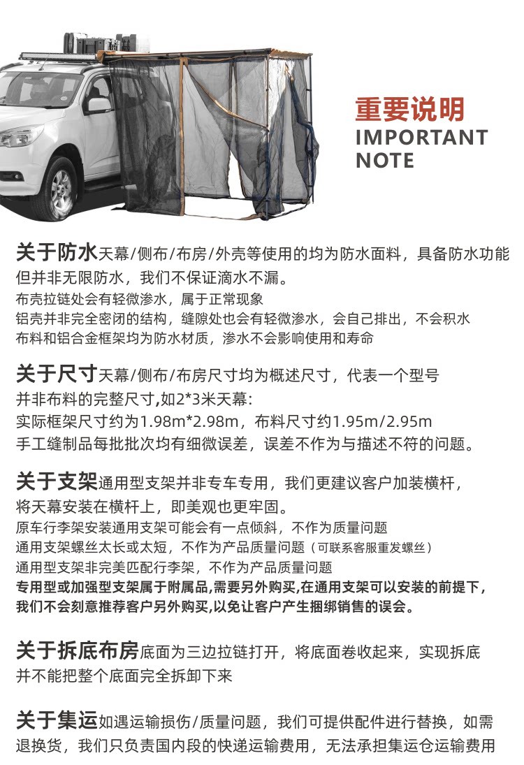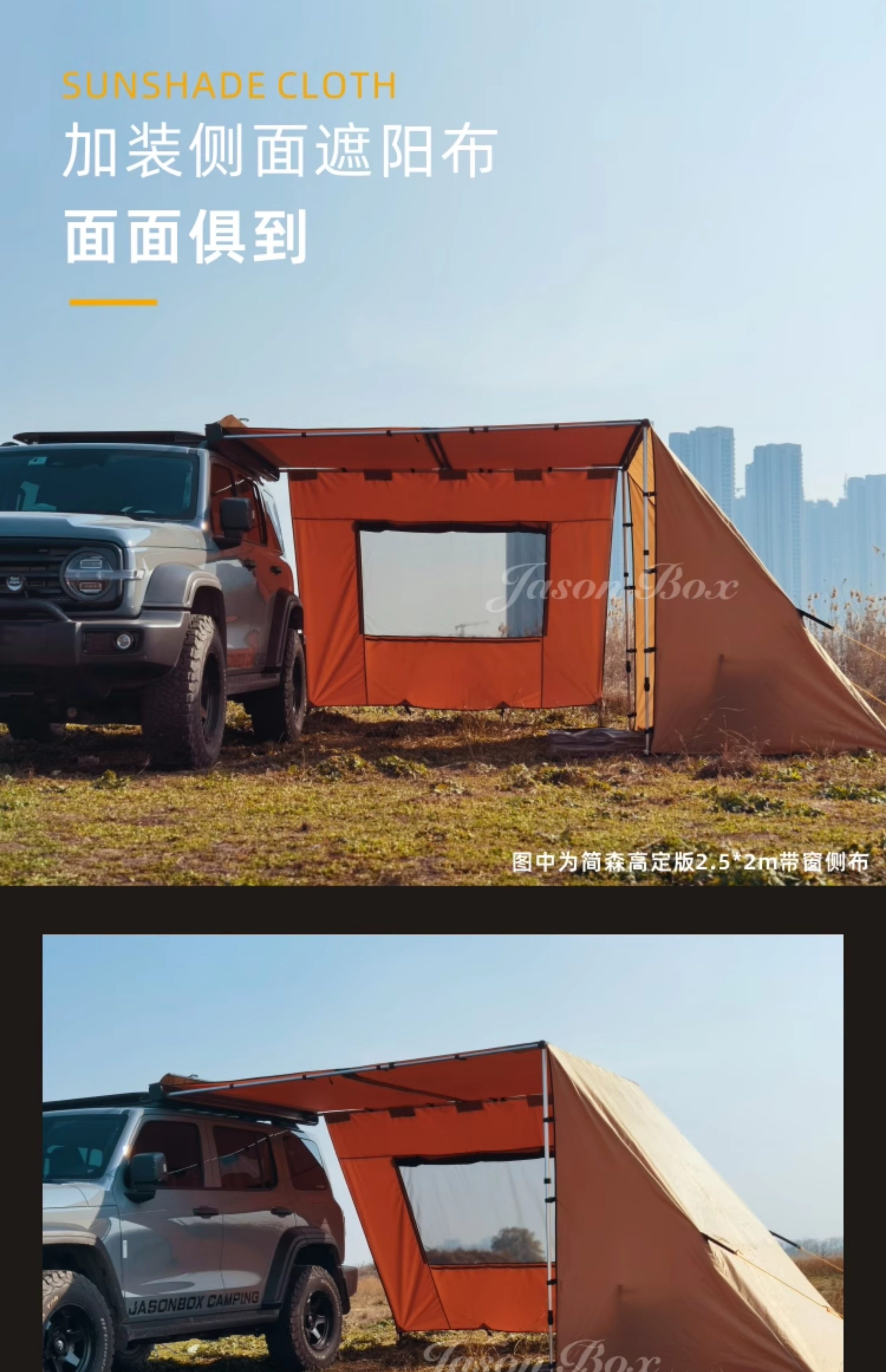 簡森戶外車邊帳拓展配件三角庇護所帳篷天幕側帳布房遮陽篷布雨棚