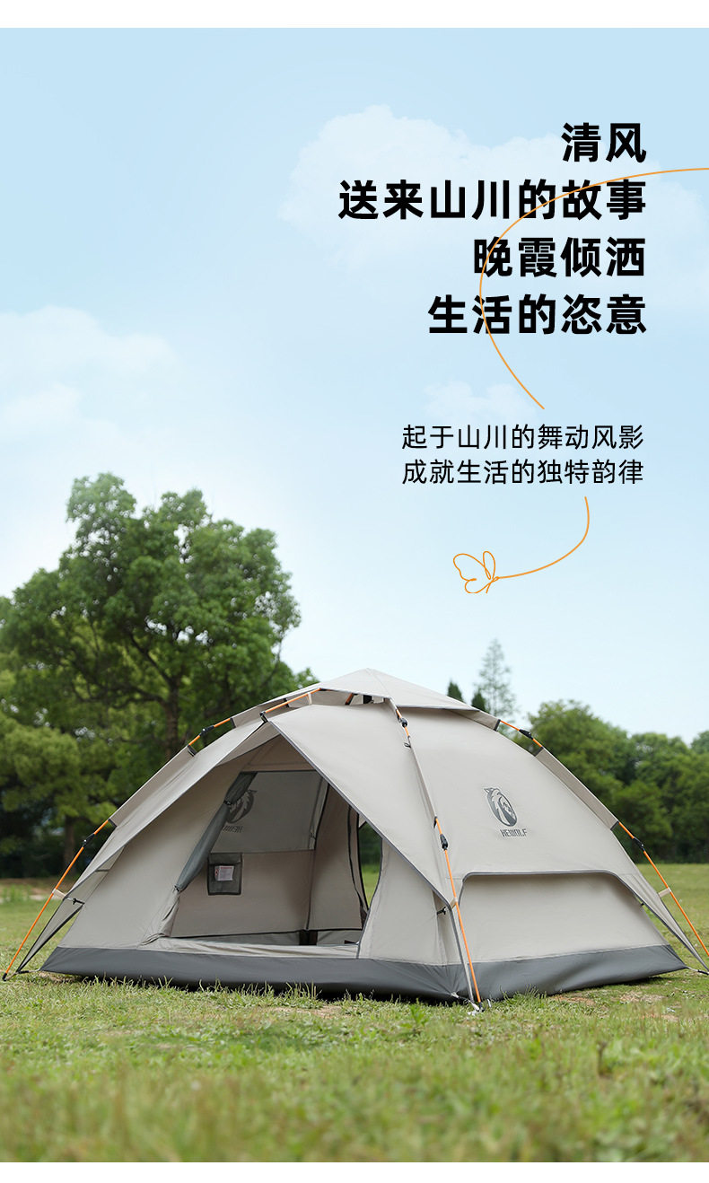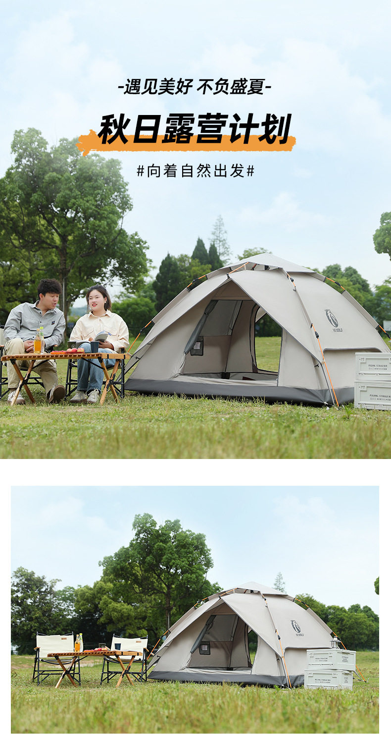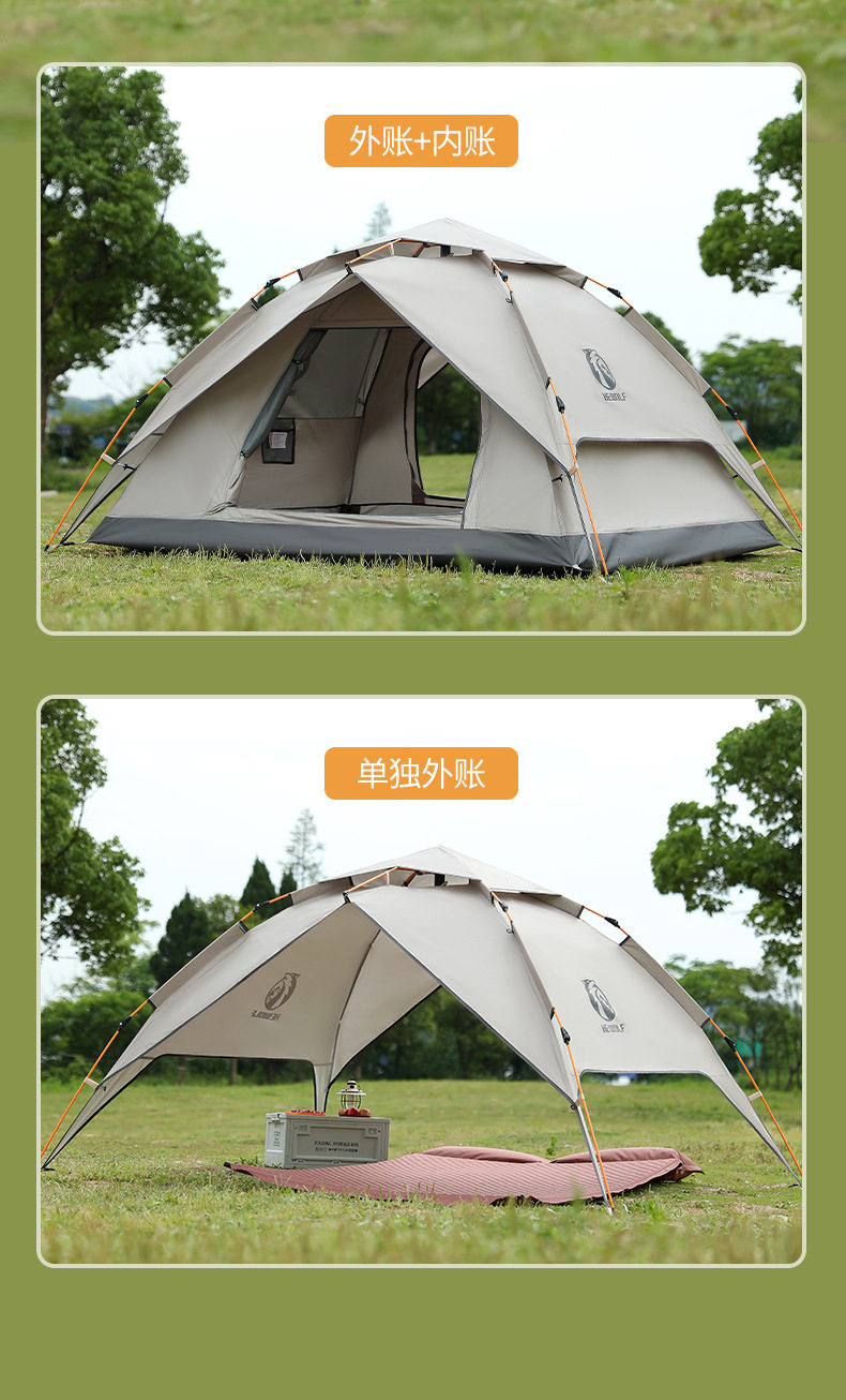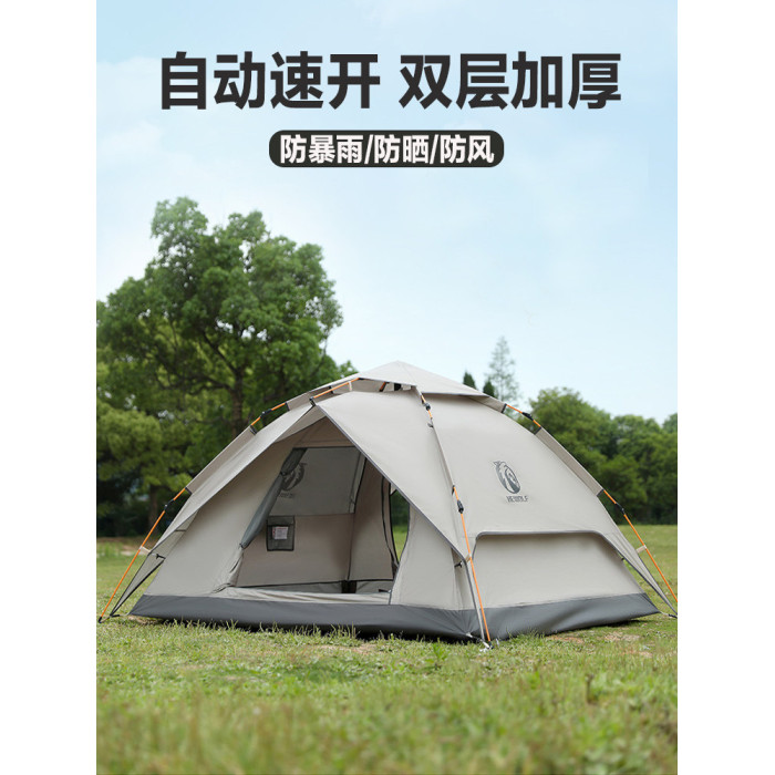 公狼帳篷戶外3-4人野營過夜防雨加厚可攜式折曡遮陽棚高級露營天幕