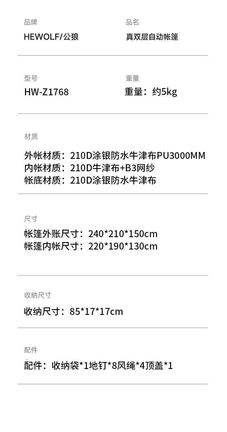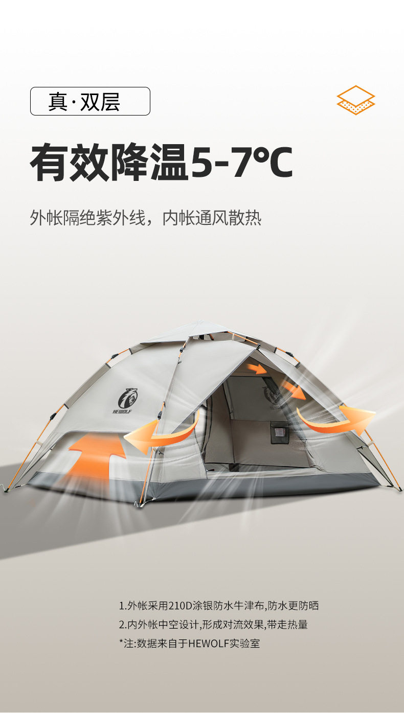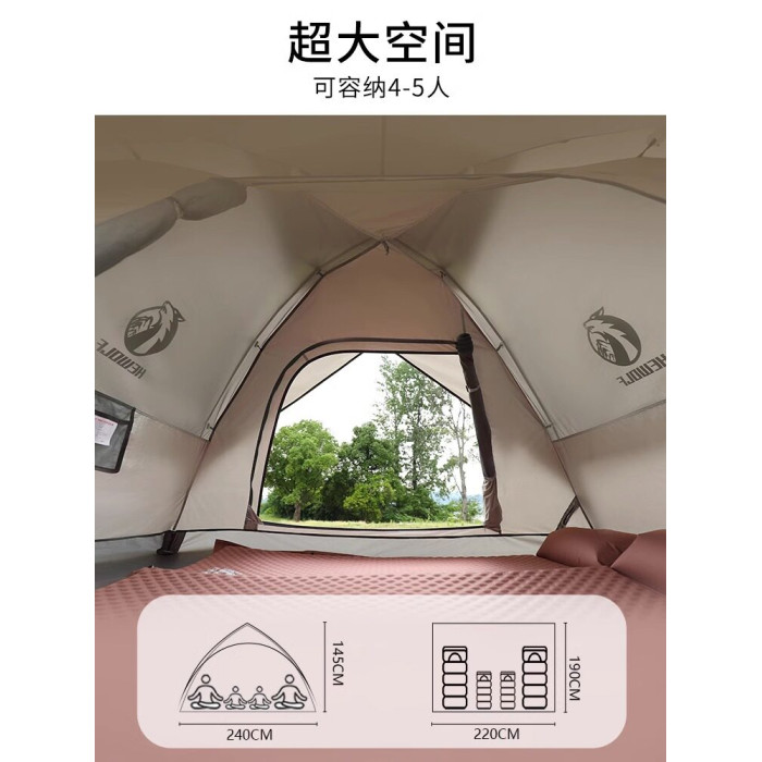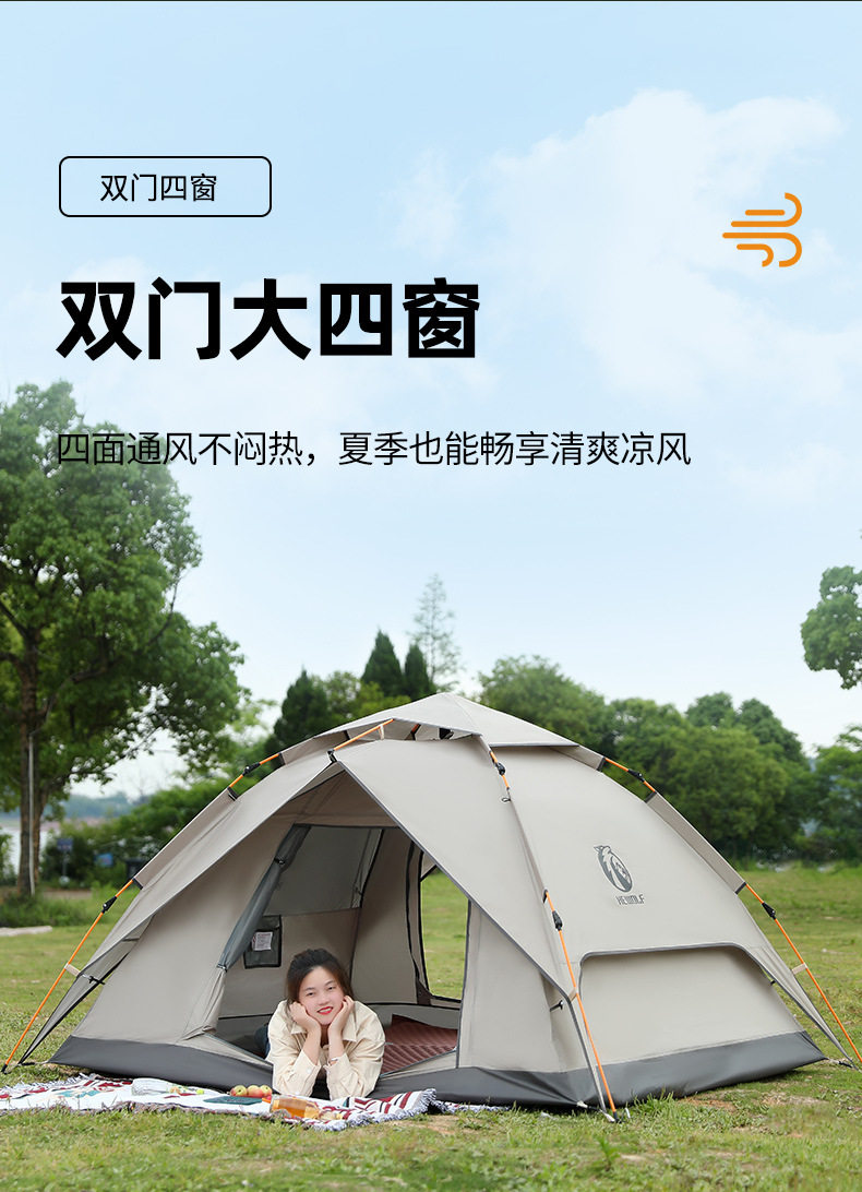 公狼帳篷戶外3-4人野營過夜防雨加厚可攜式折曡遮陽棚高級露營天幕