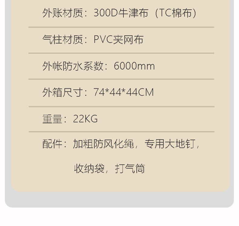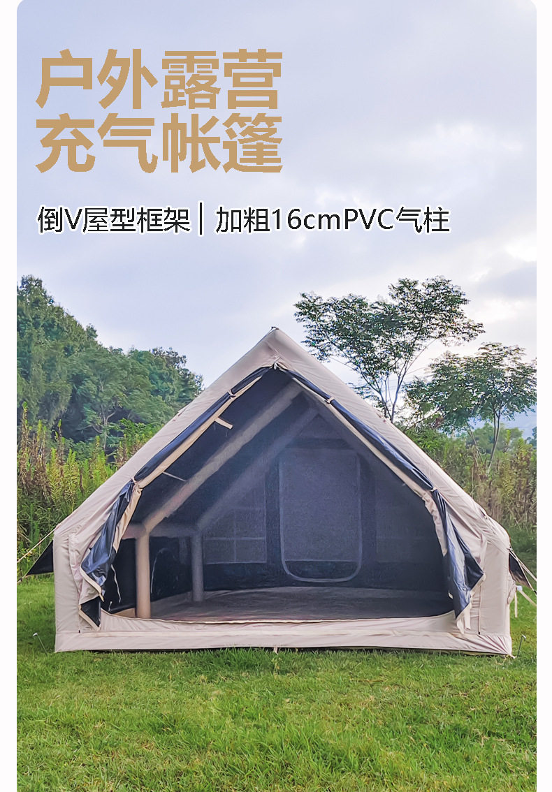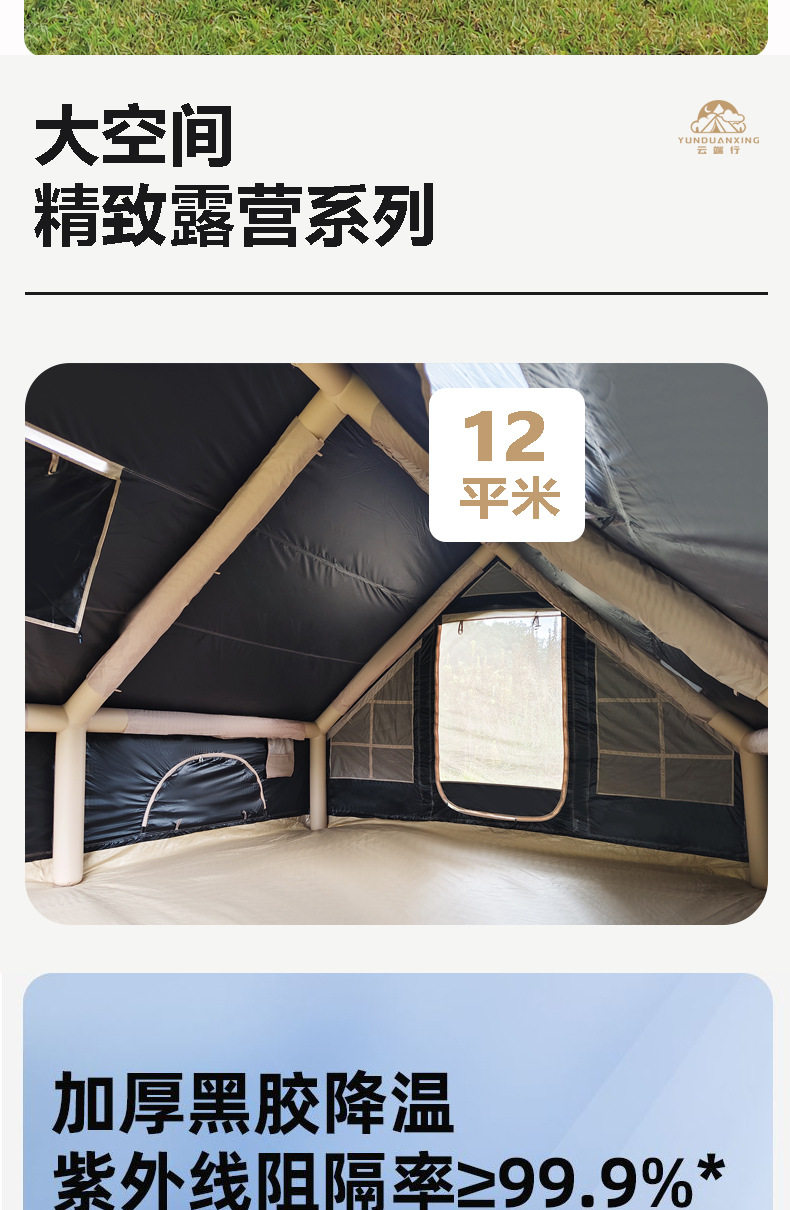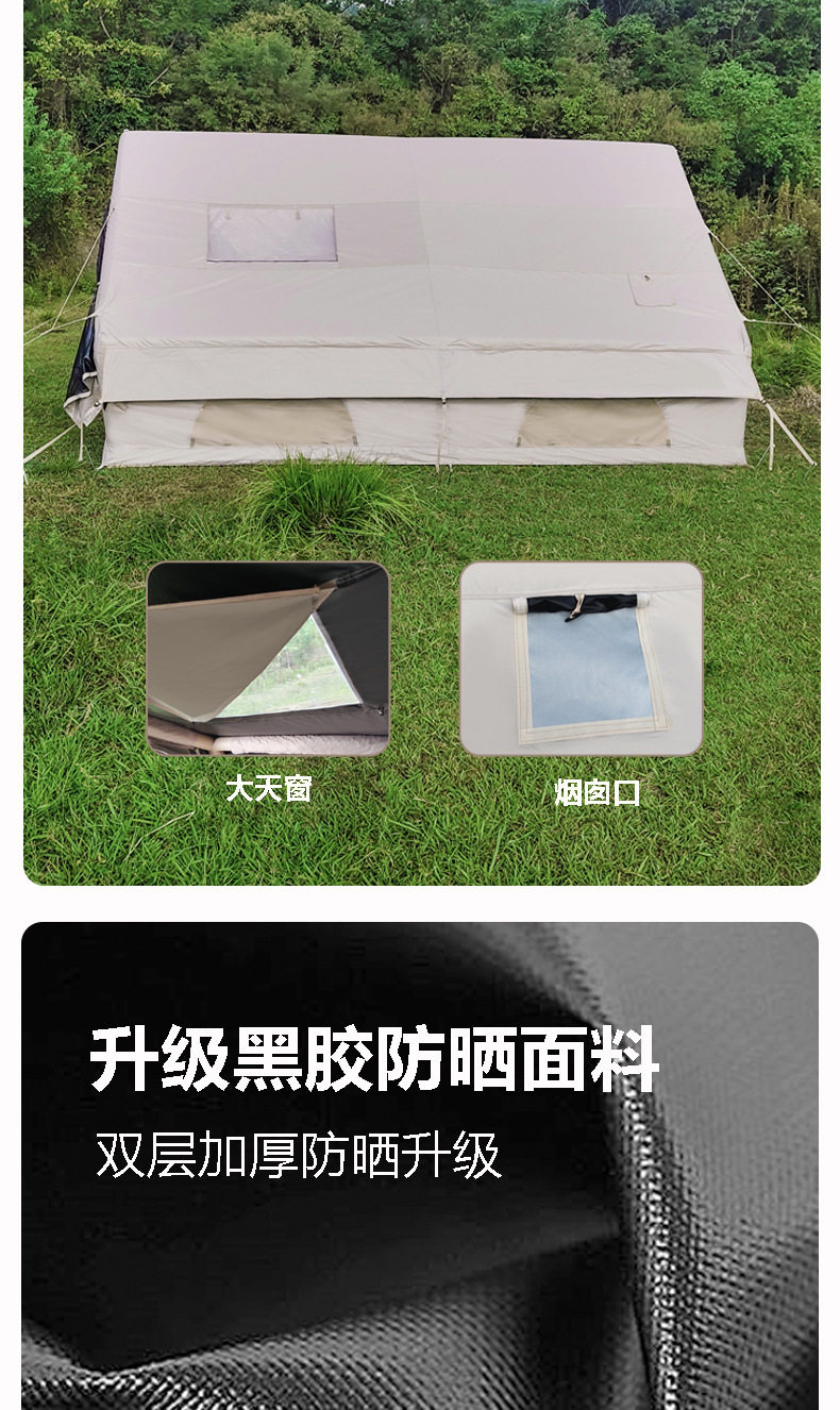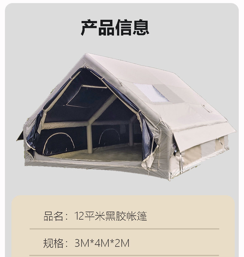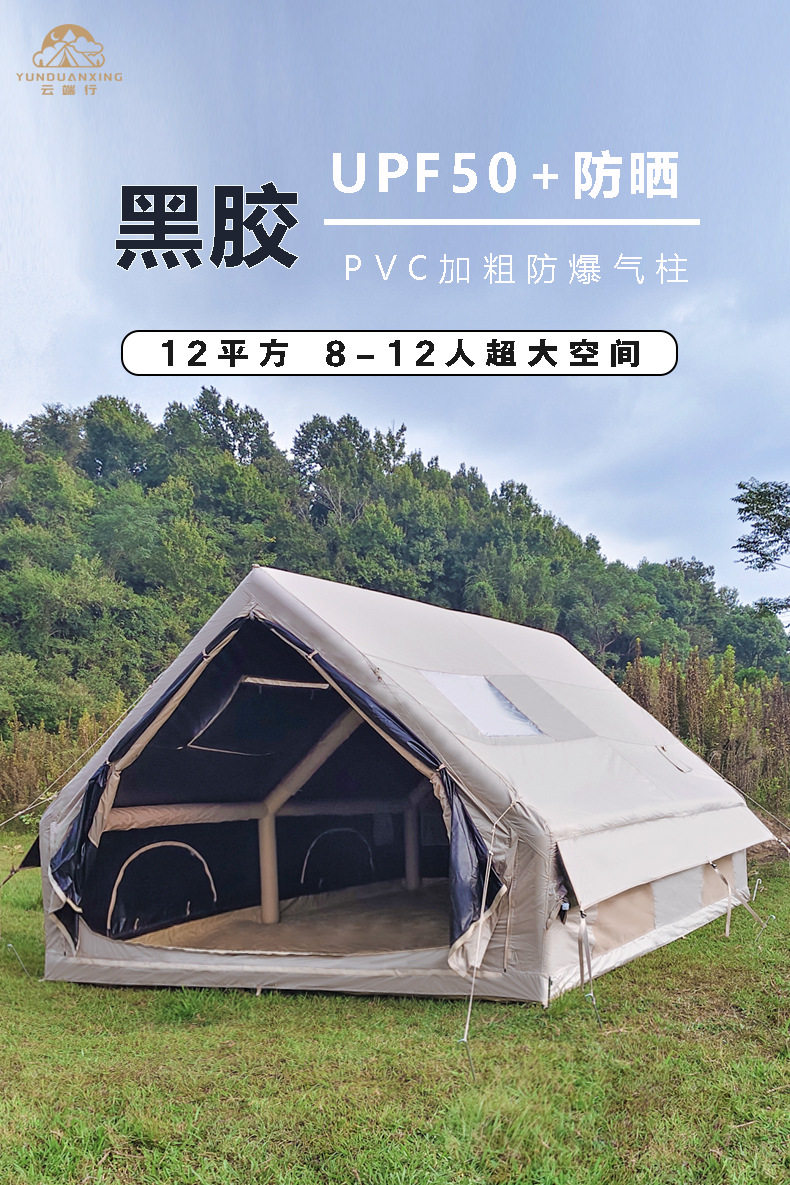 雲端行黑膠12平米充氣帳篷防風防雨四季防潮戶外露營可攜式免搭建
