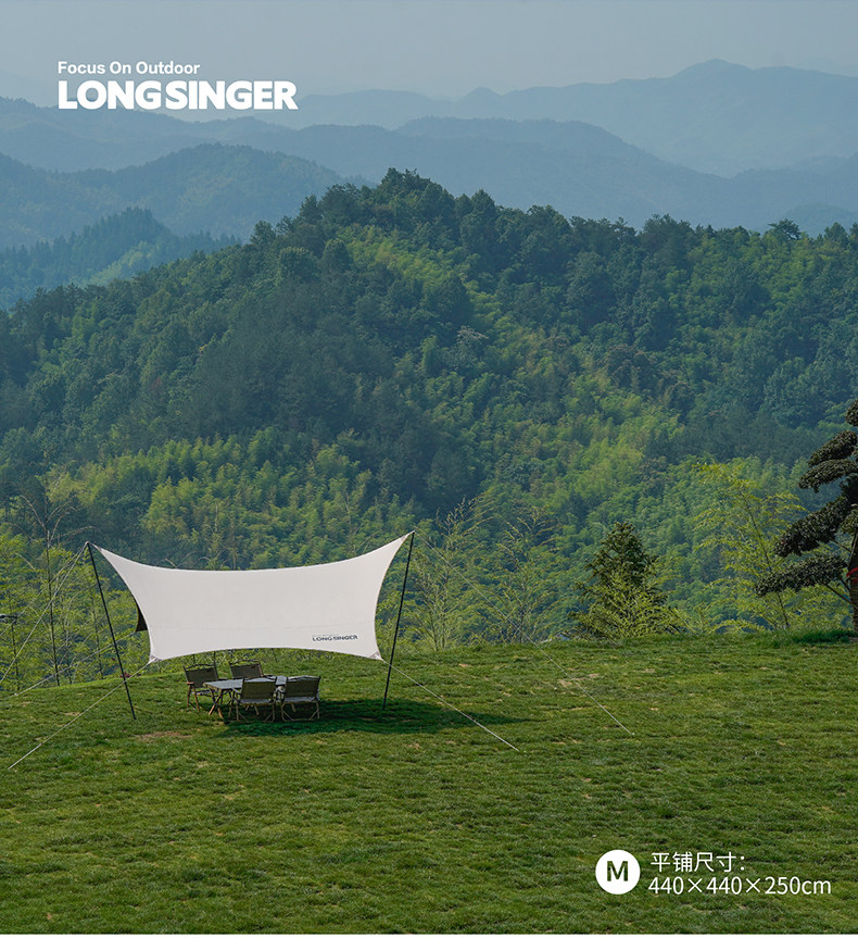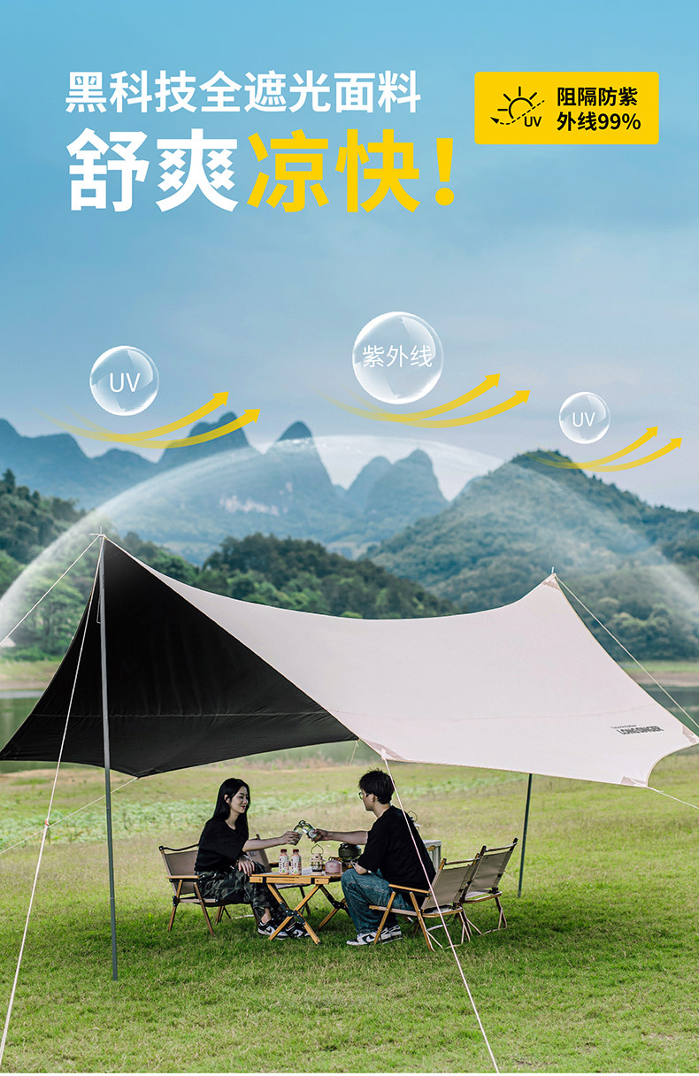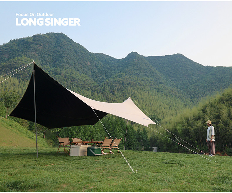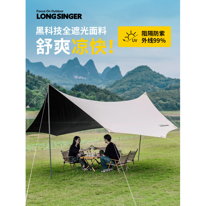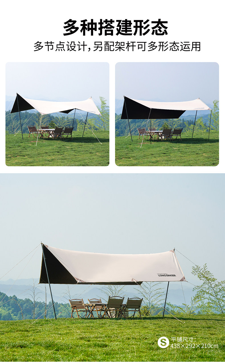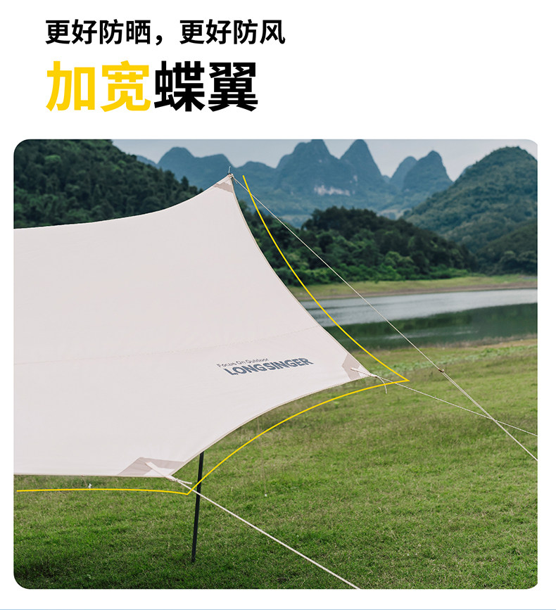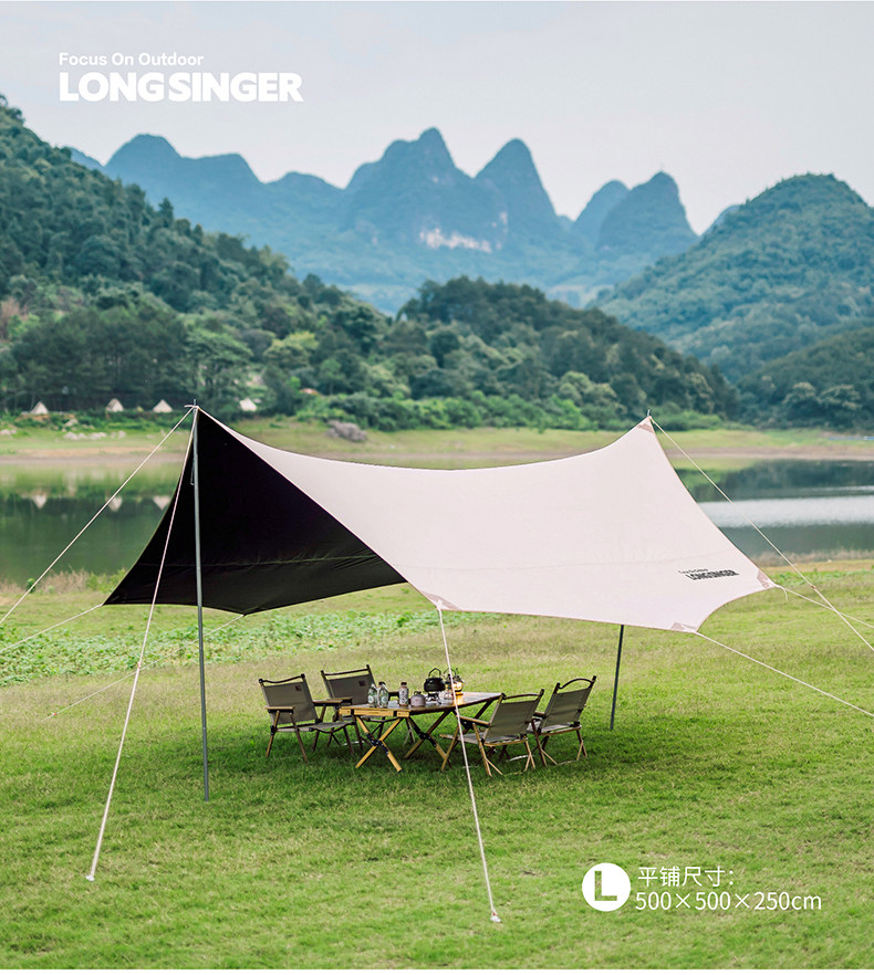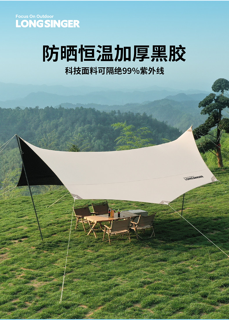 龍行者黑膠天幕戶外方蝶形多人帳篷防曬防雨遮陽棚戶外露營裝備