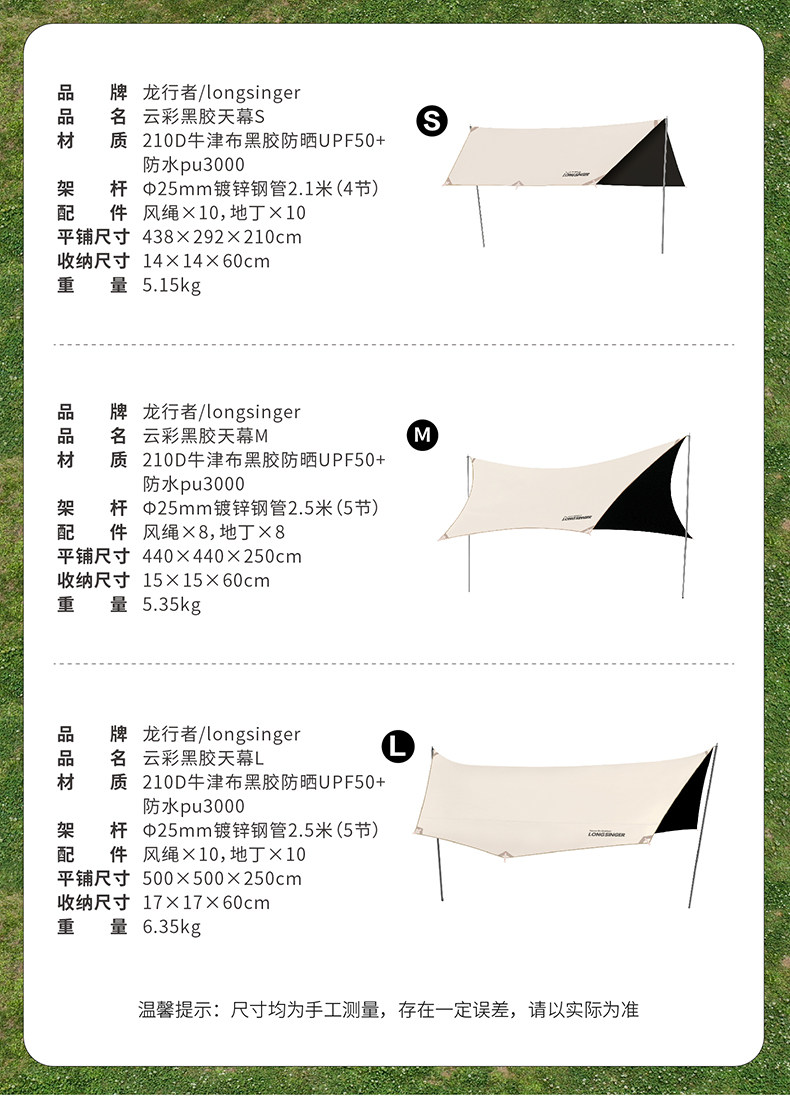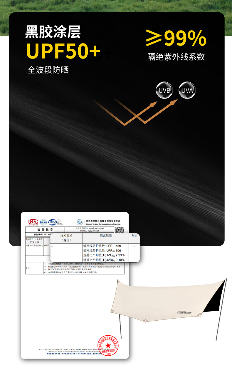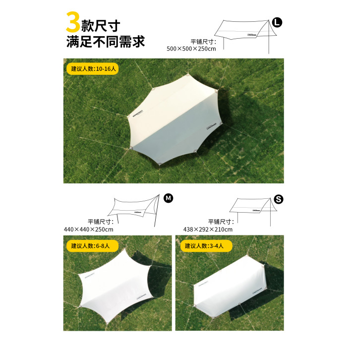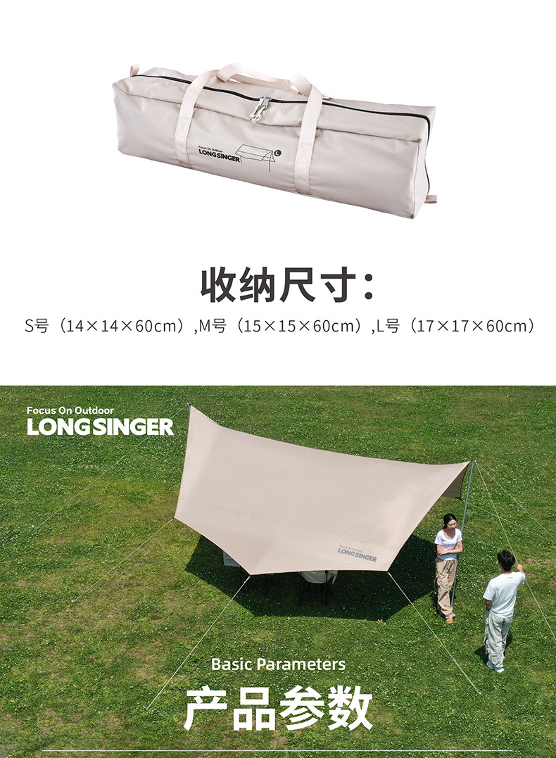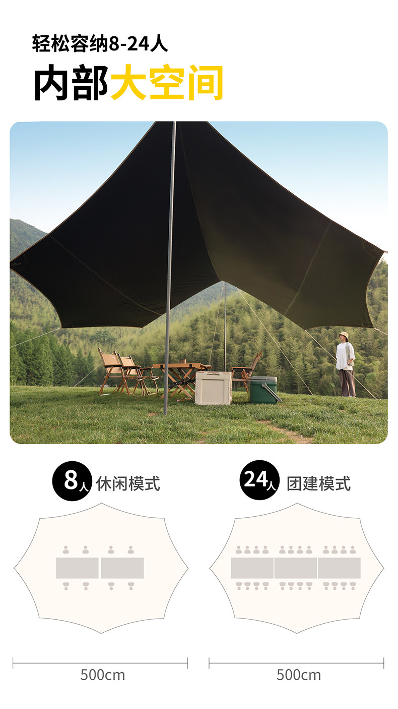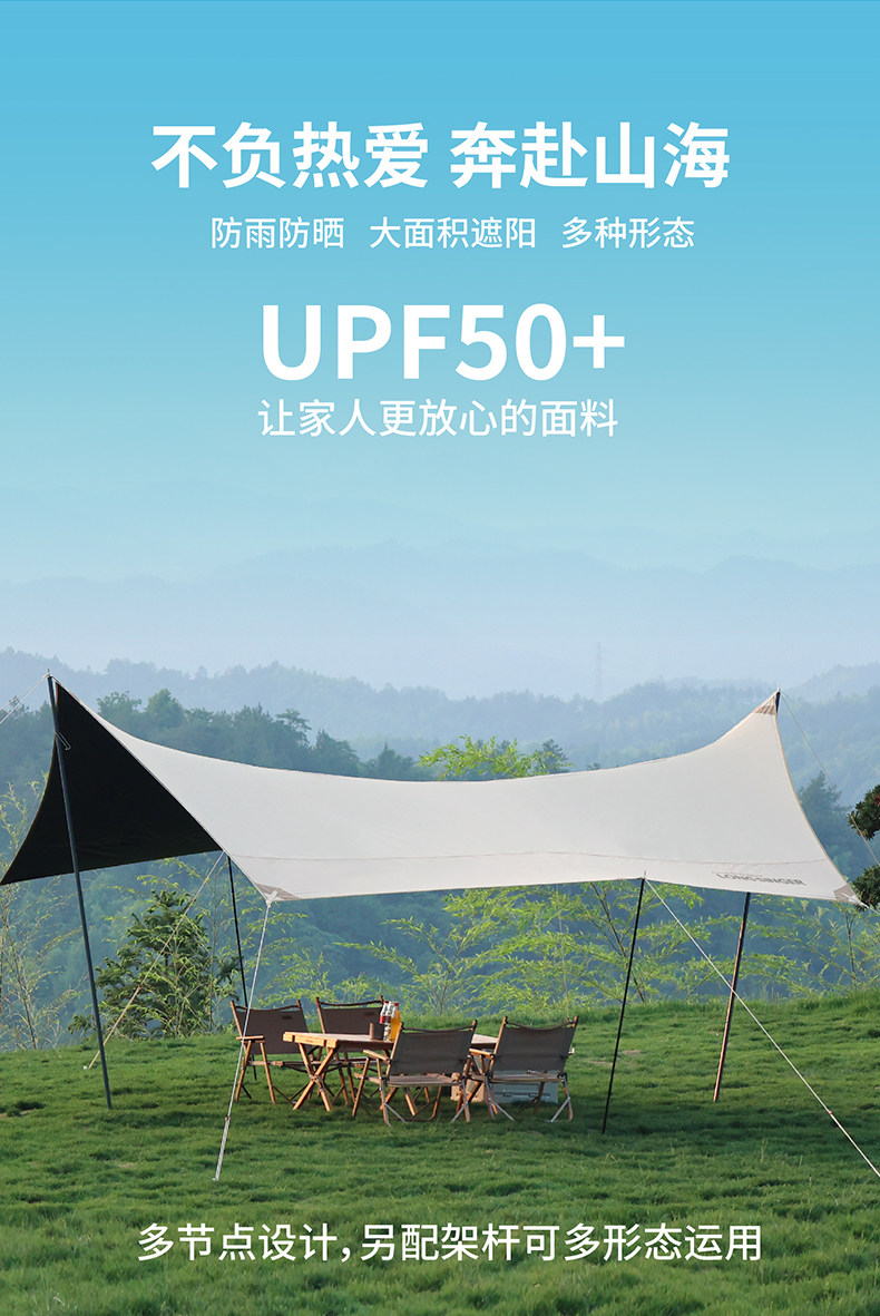 龍行者黑膠天幕戶外方蝶形多人帳篷防曬防雨遮陽棚戶外露營裝備