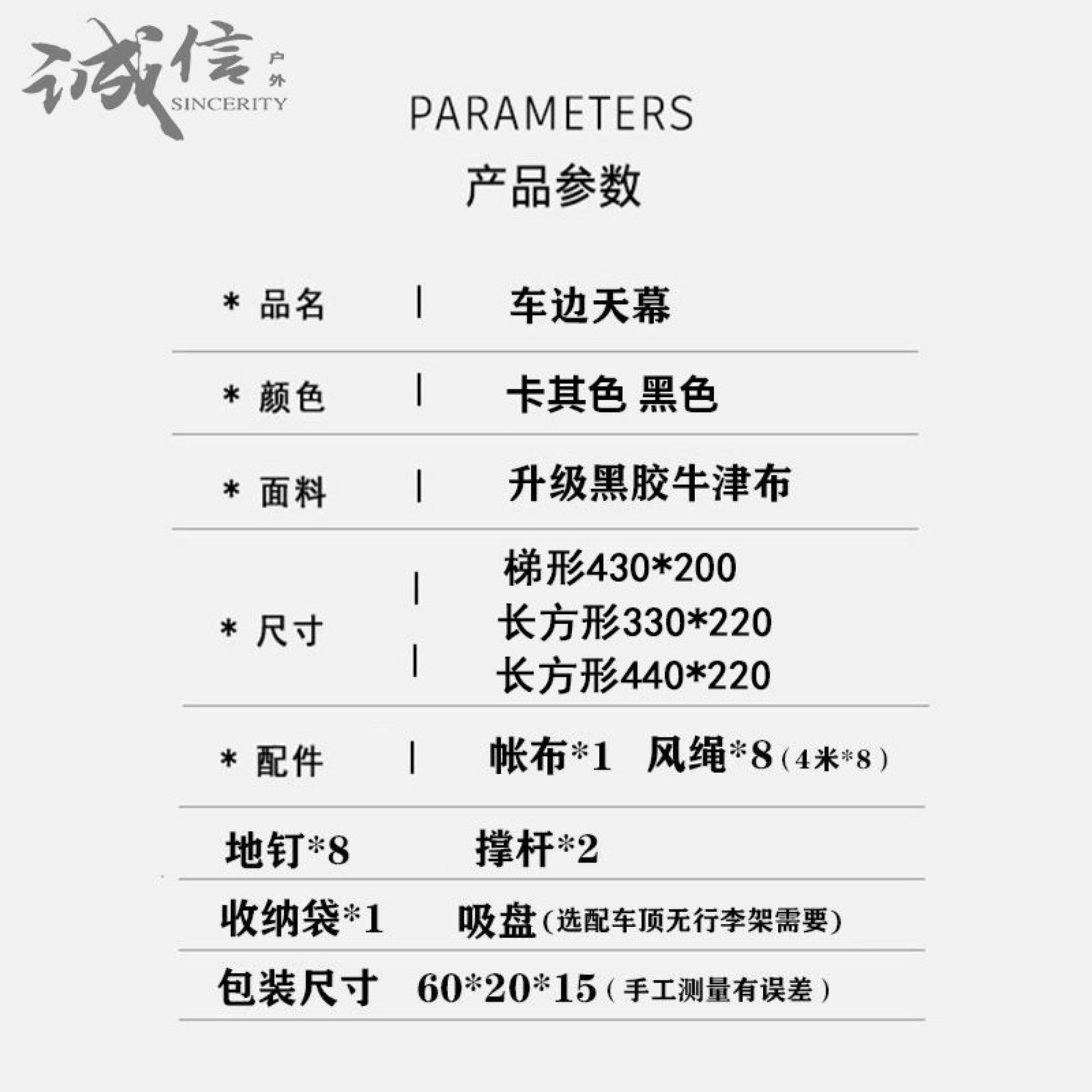 黑膠車尾帳篷汽車SUV露營側邊帳遊車邊天幕戶外遮陽棚防雨
