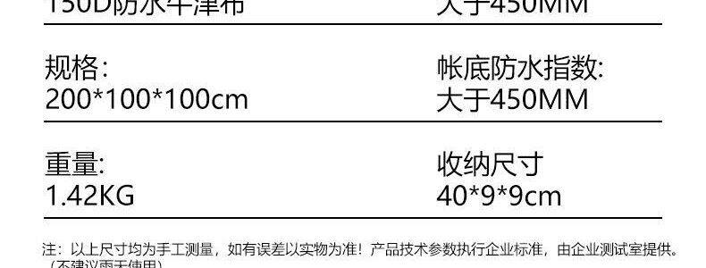 帳底防水指數(mm) 1000mm