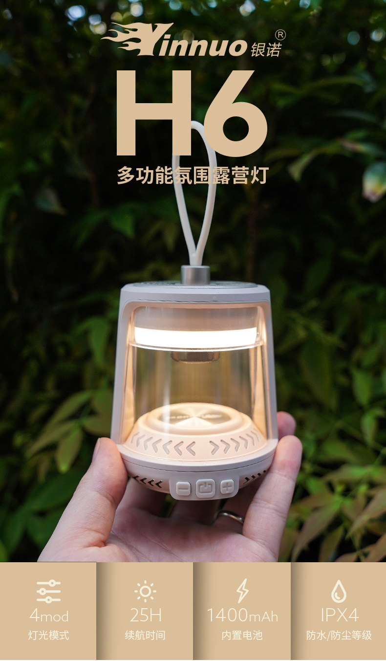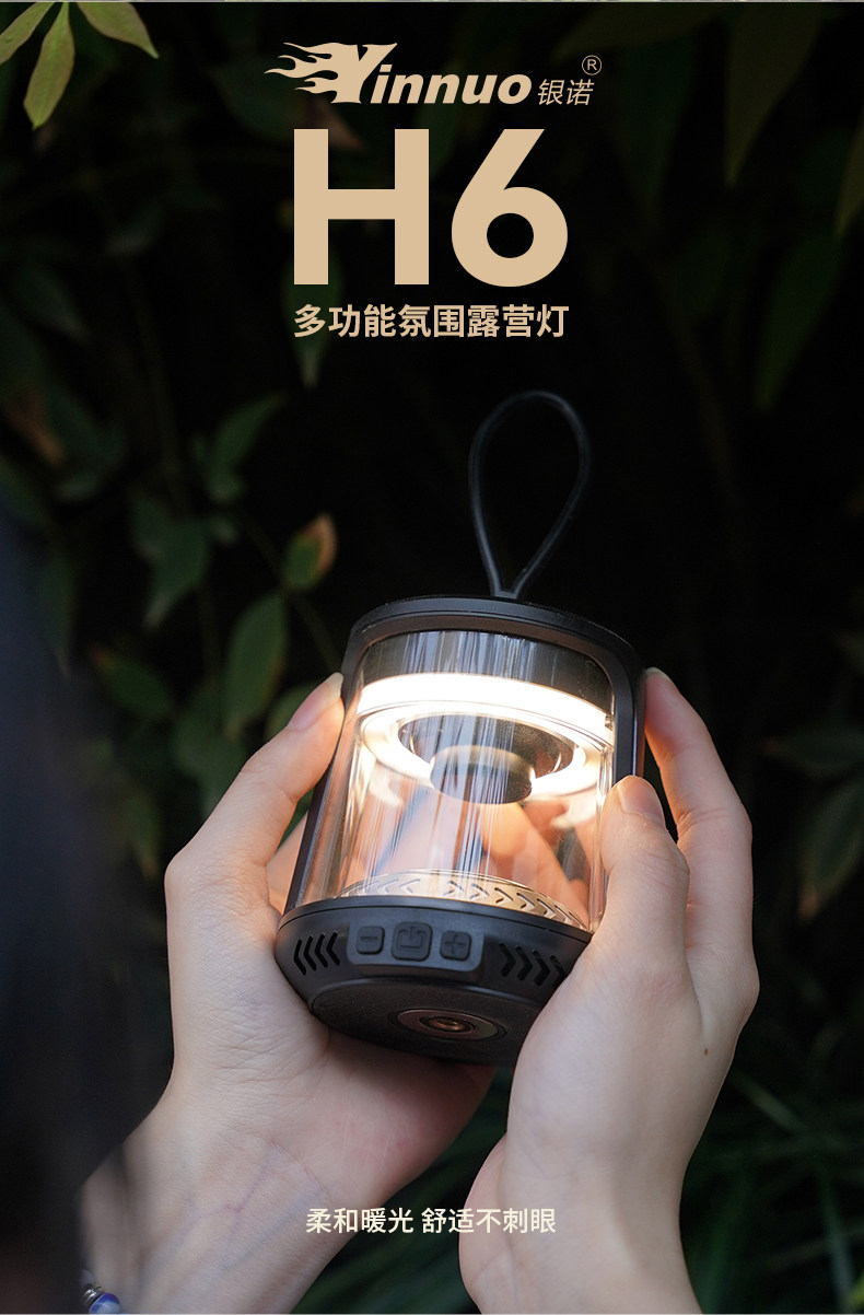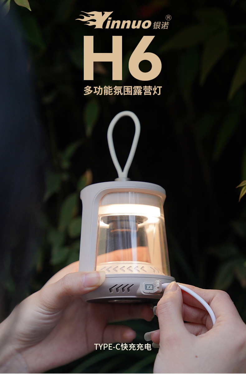 銀諾H6露營燈氛圍暖光長續航戶外可攜式帳篷燈氛圍充電照明野營掛燈