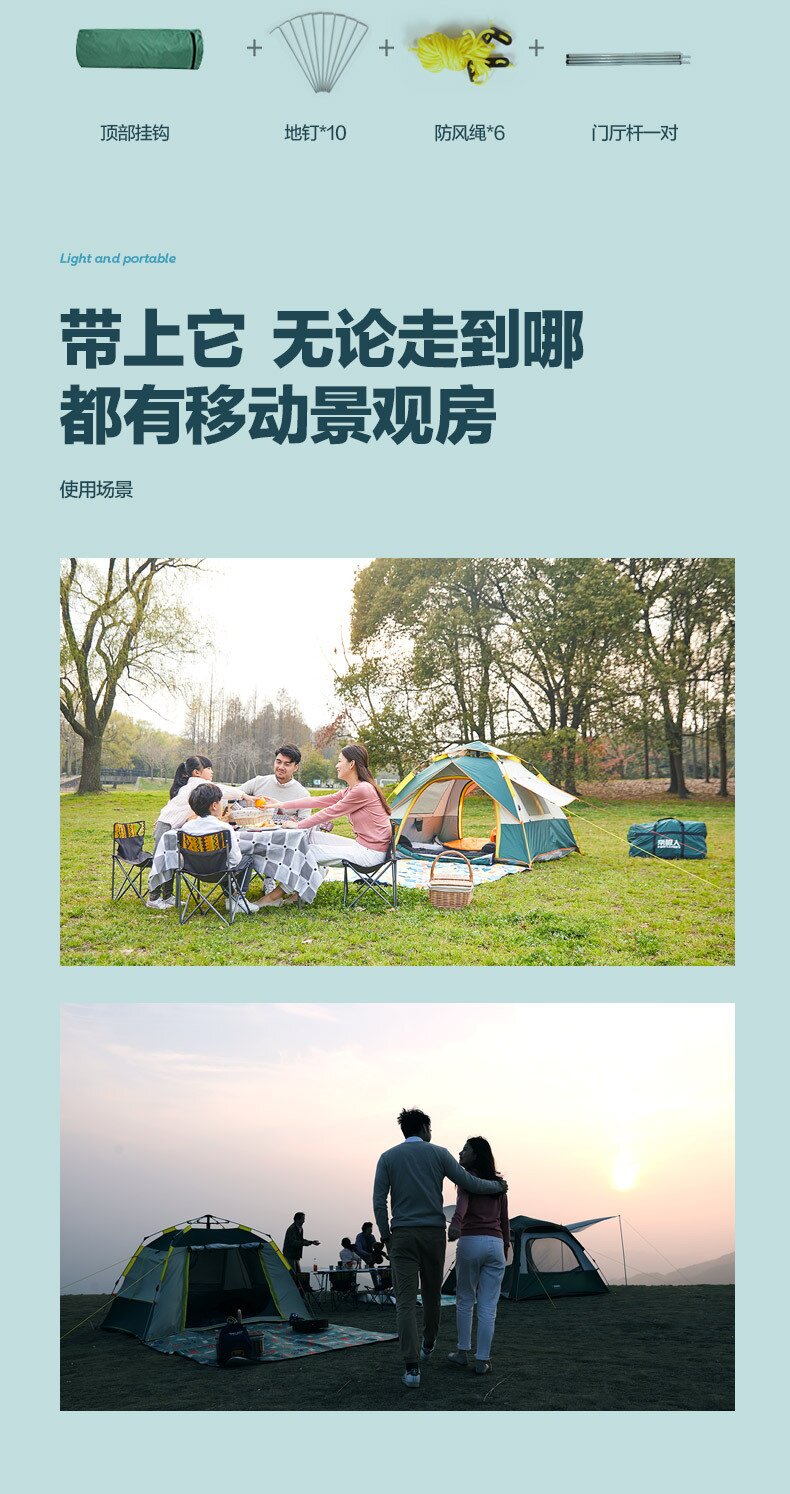 帳篷戶外折曡可攜式全自動防雨防曬加厚野營過夜露營裝備用品全套