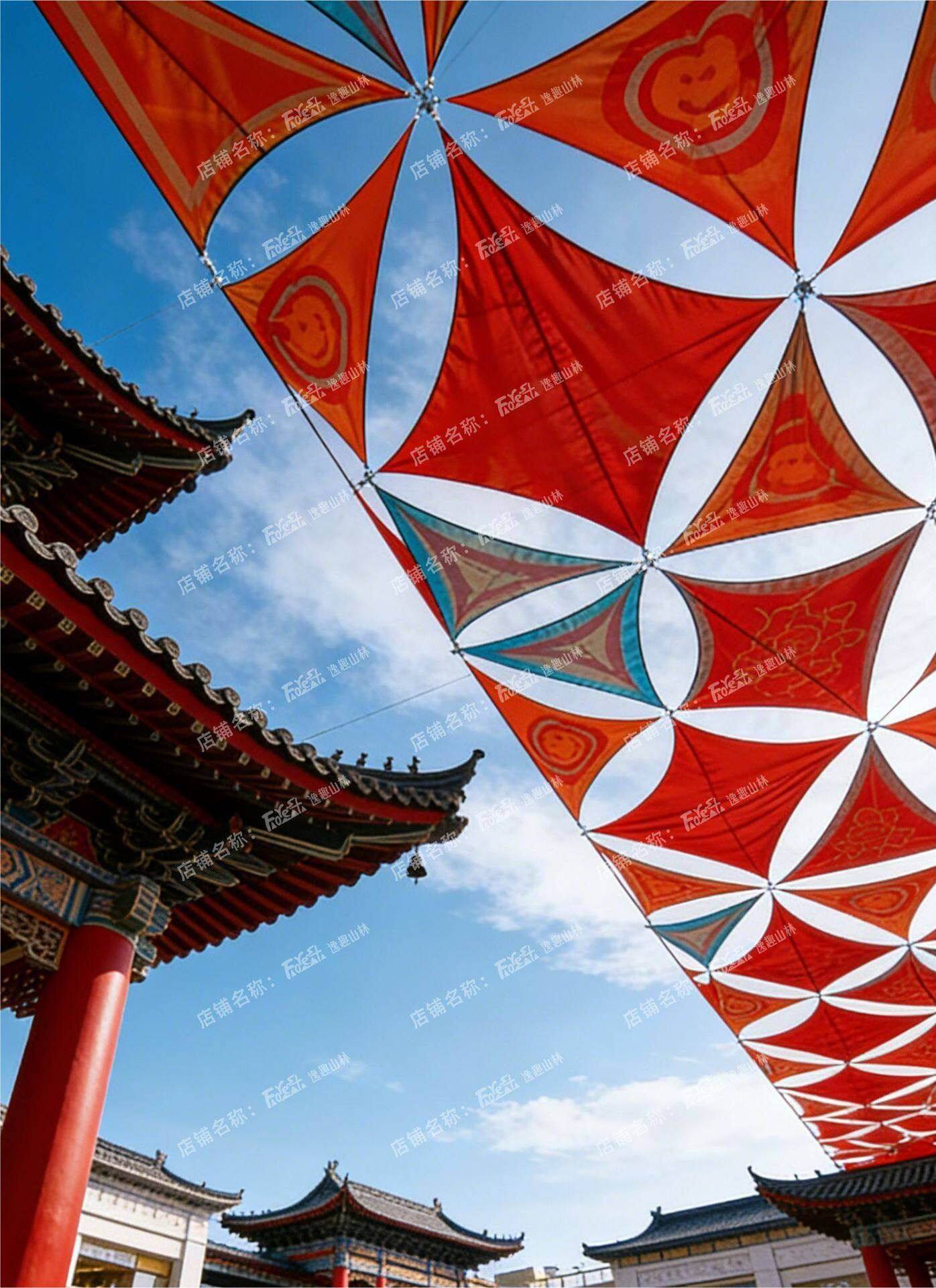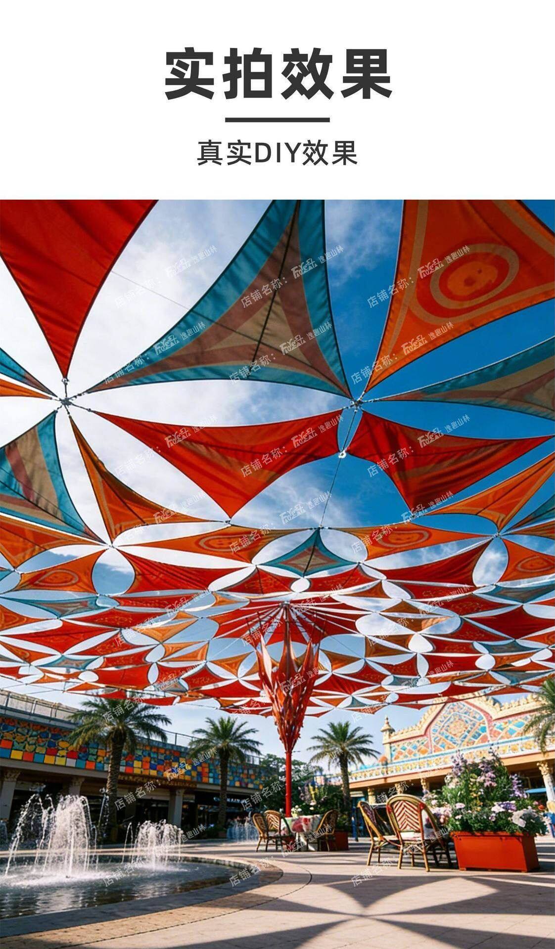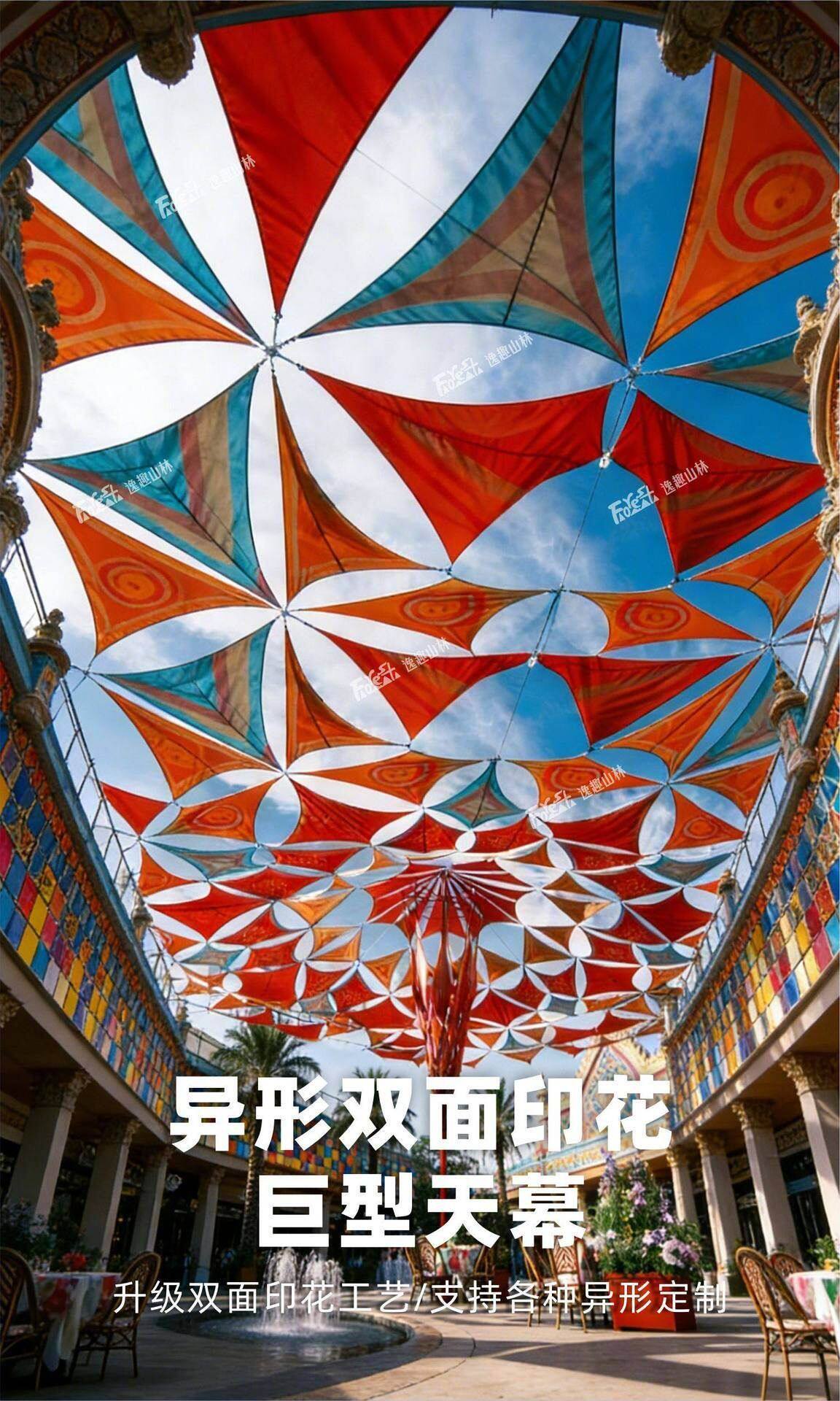 三角形天幕遮陽異形印花遮陽布牛津布戶外雨棚泳池庭院景區遮陽布