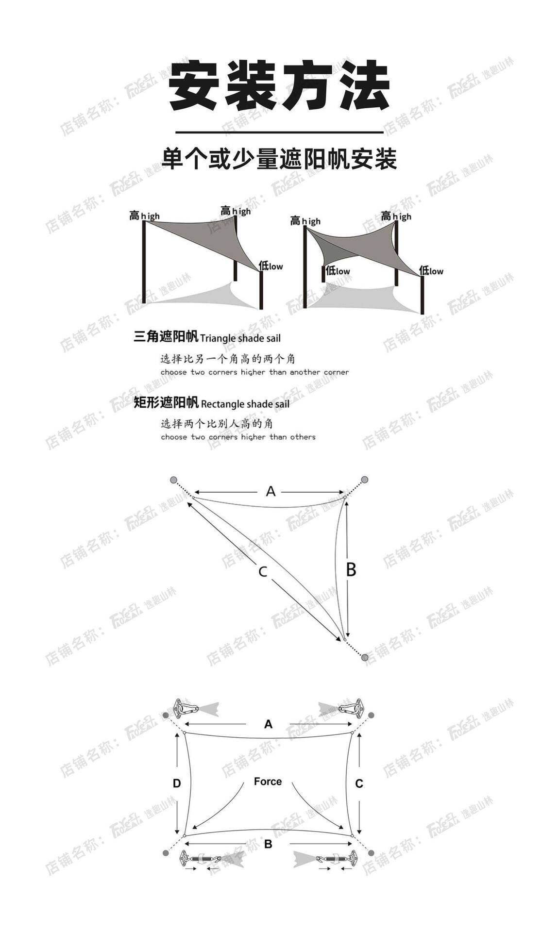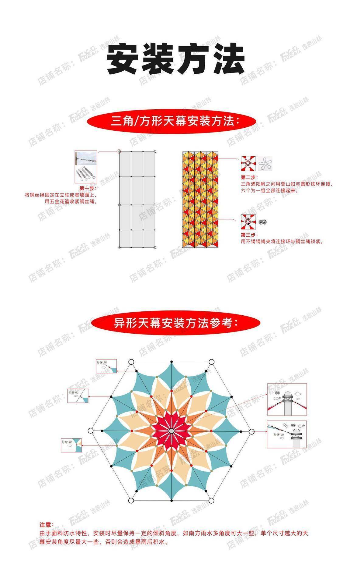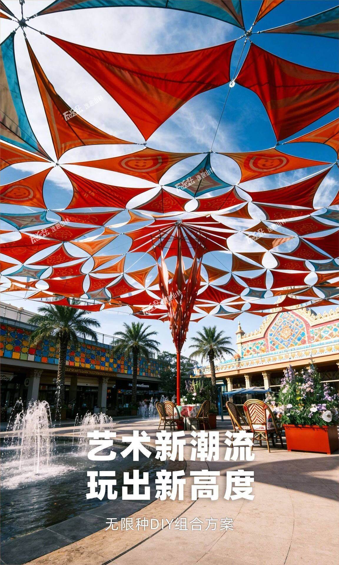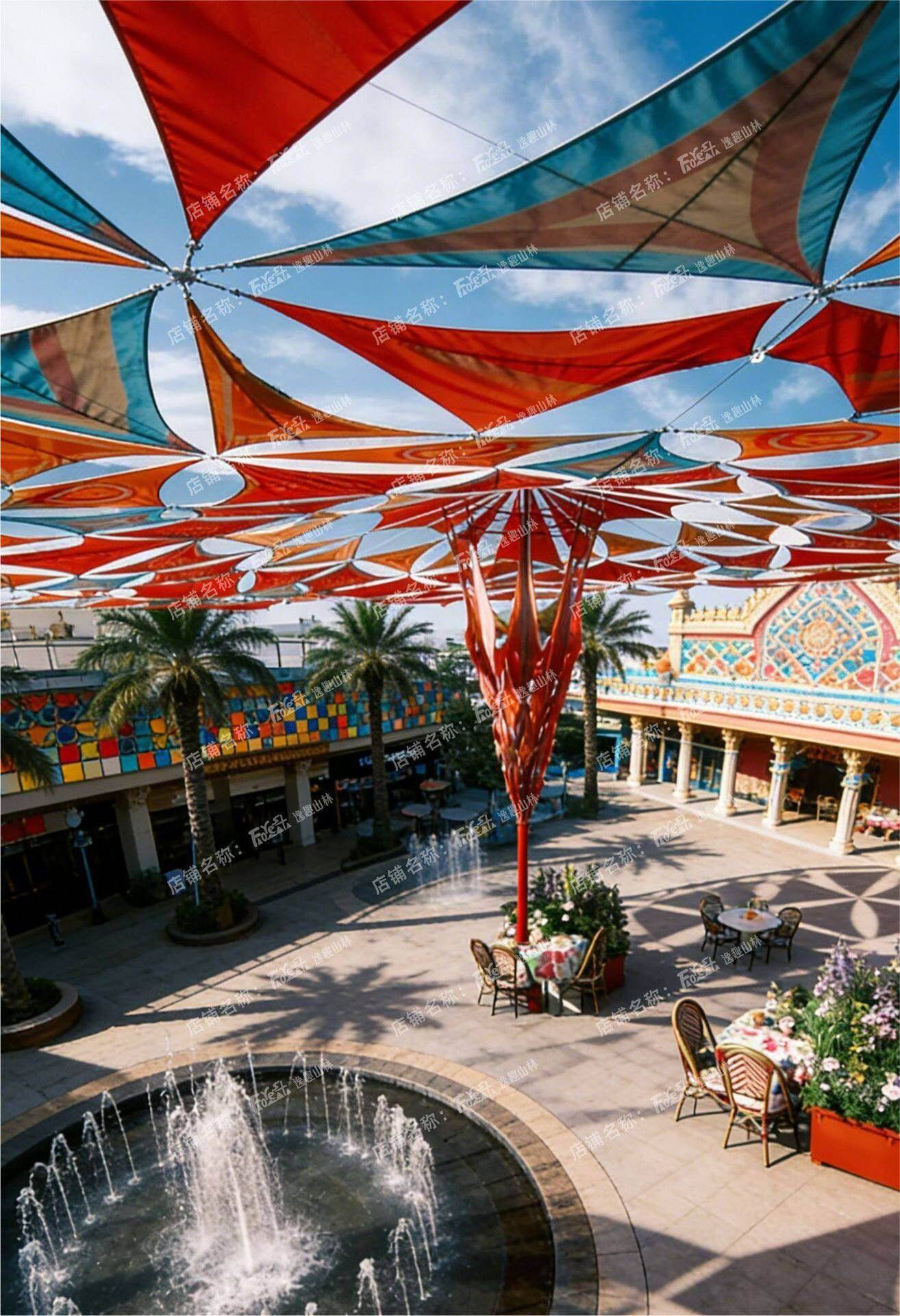 三角形天幕遮陽異形印花遮陽布牛津布戶外雨棚泳池庭院景區遮陽布