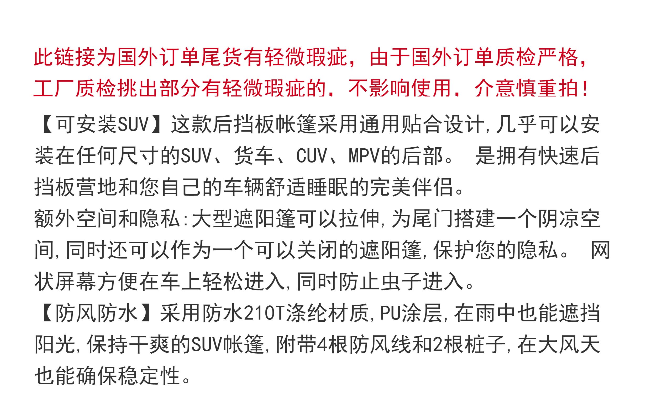 車尾車邊帳篷露營天幕遊旅行戶外車用側邊防蚊防曬遮陽棚suv