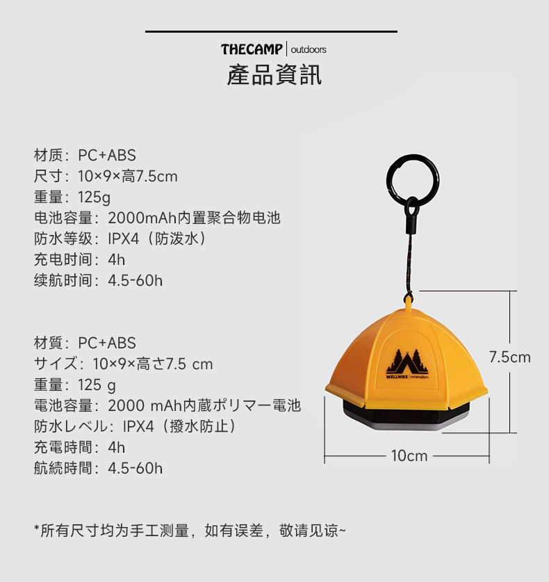 戶外露營燈超長續航帳篷燈野營氛圍燈天幕掛燈營地兒童噗噗球帳燈