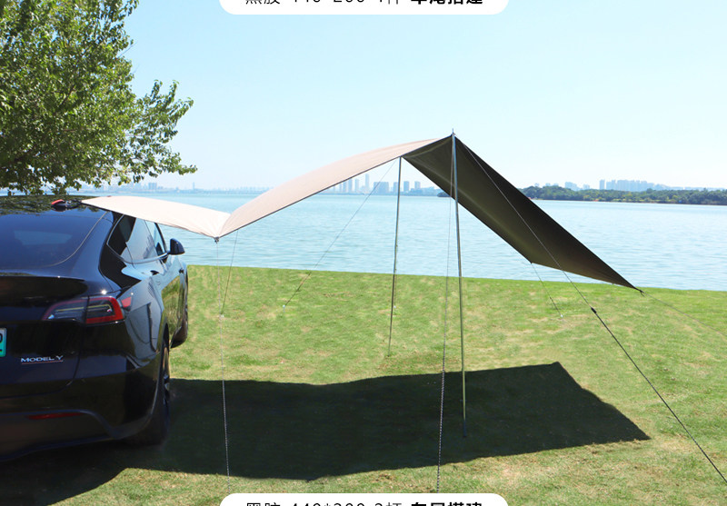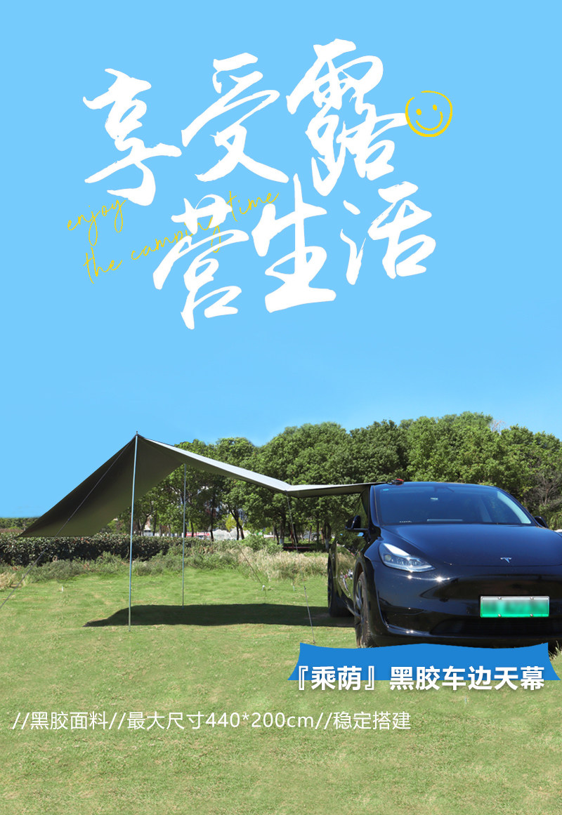 車邊天幕 黑膠戶外露營帳篷車尾帳防曬側邊SUV吸盤汽車用慕布自動