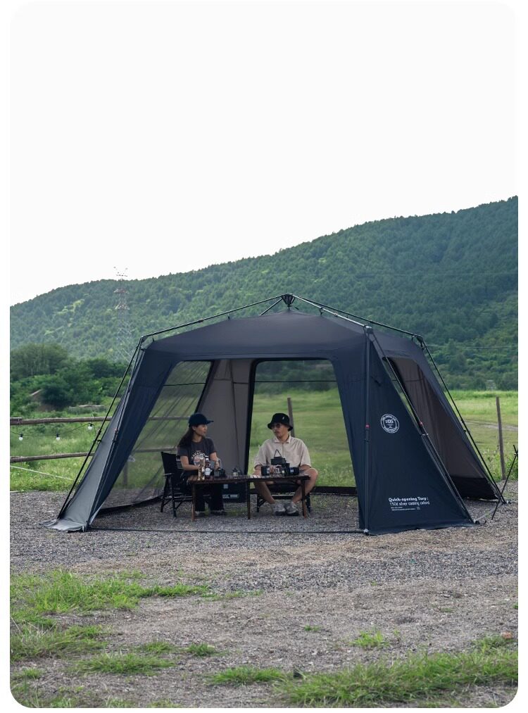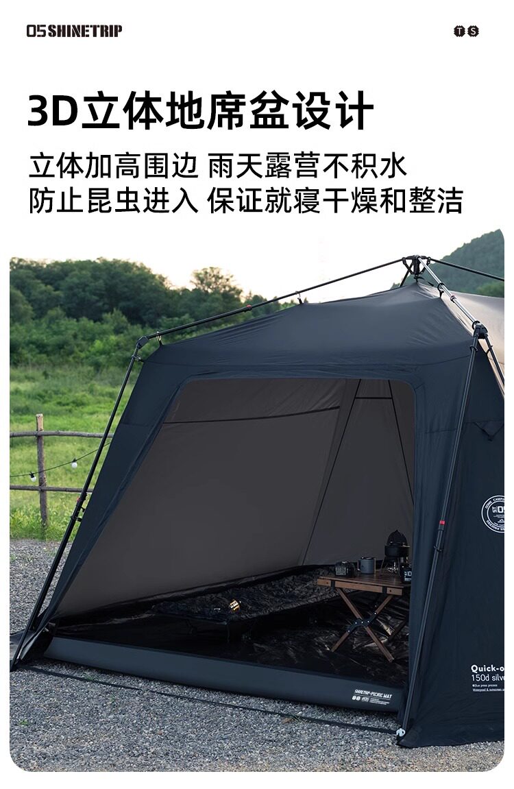 山趣戶外穹頂天幕帳篷二合一全自動速開塗銀防曬露營野營可攜式