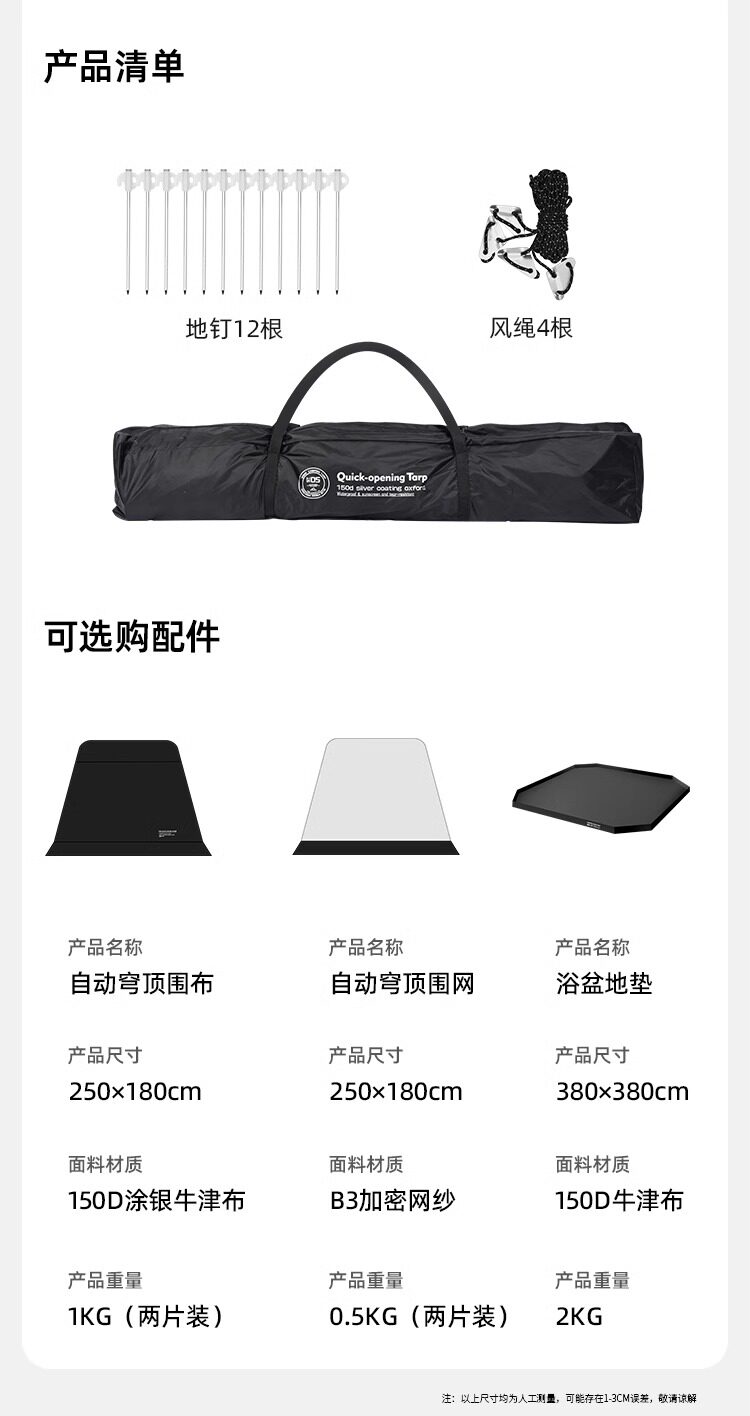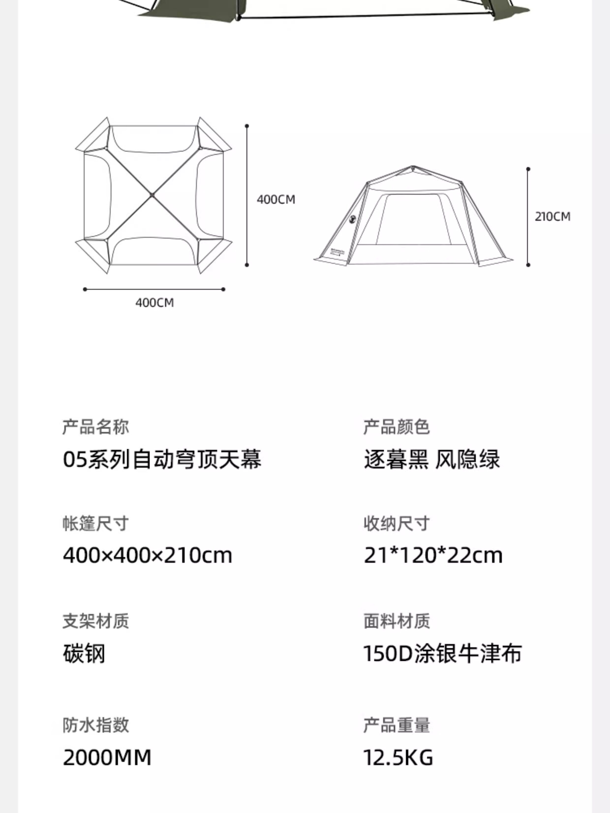 篷面尺寸 400*400*210