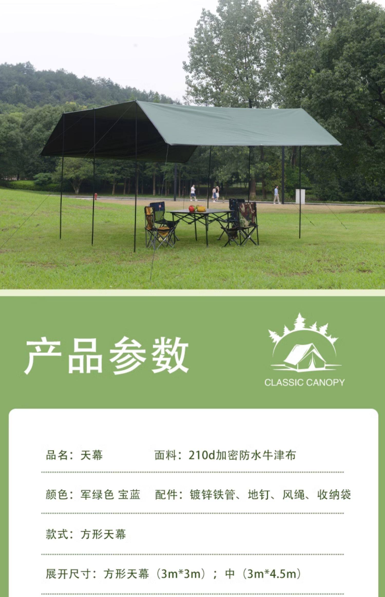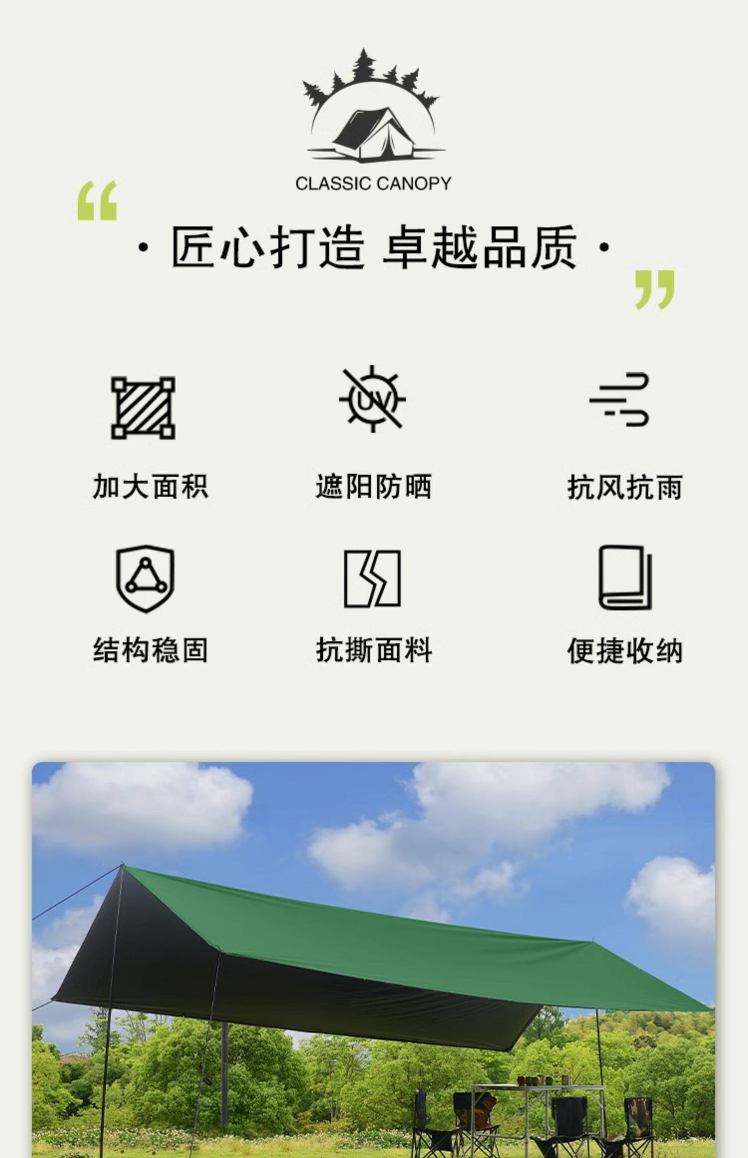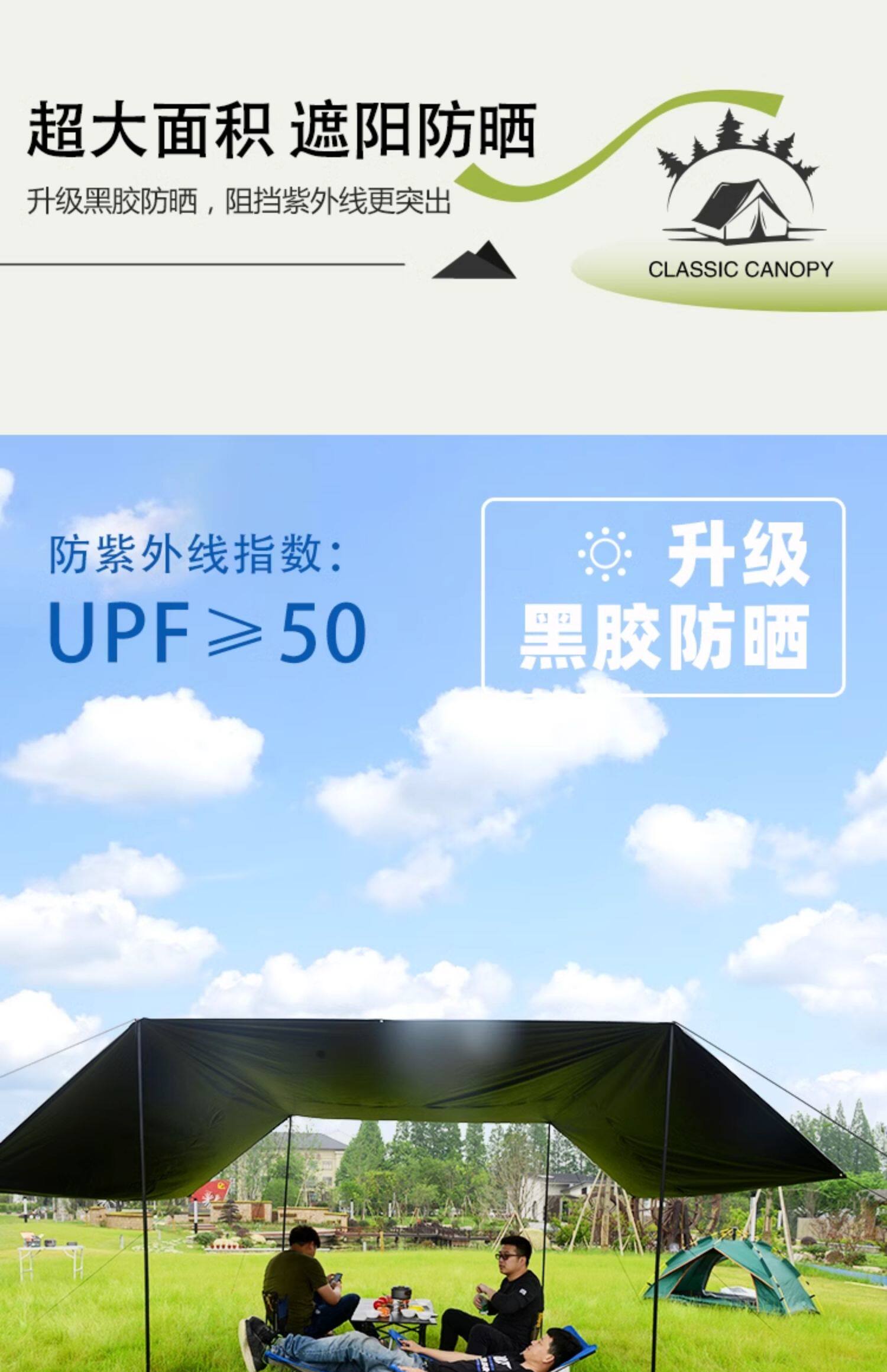 黑膠天幕帳篷戶外超大露營大號沙灘遮陽棚防水防雨防曬釣魚涼棚布