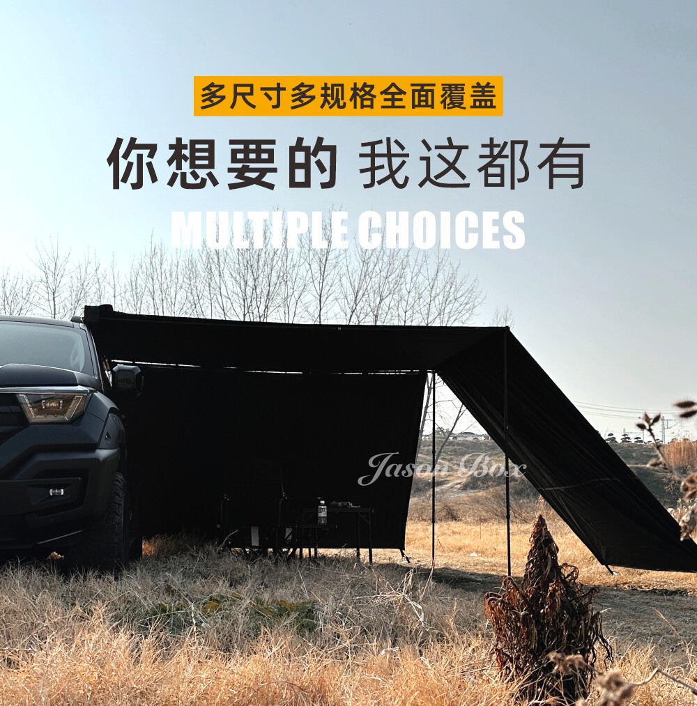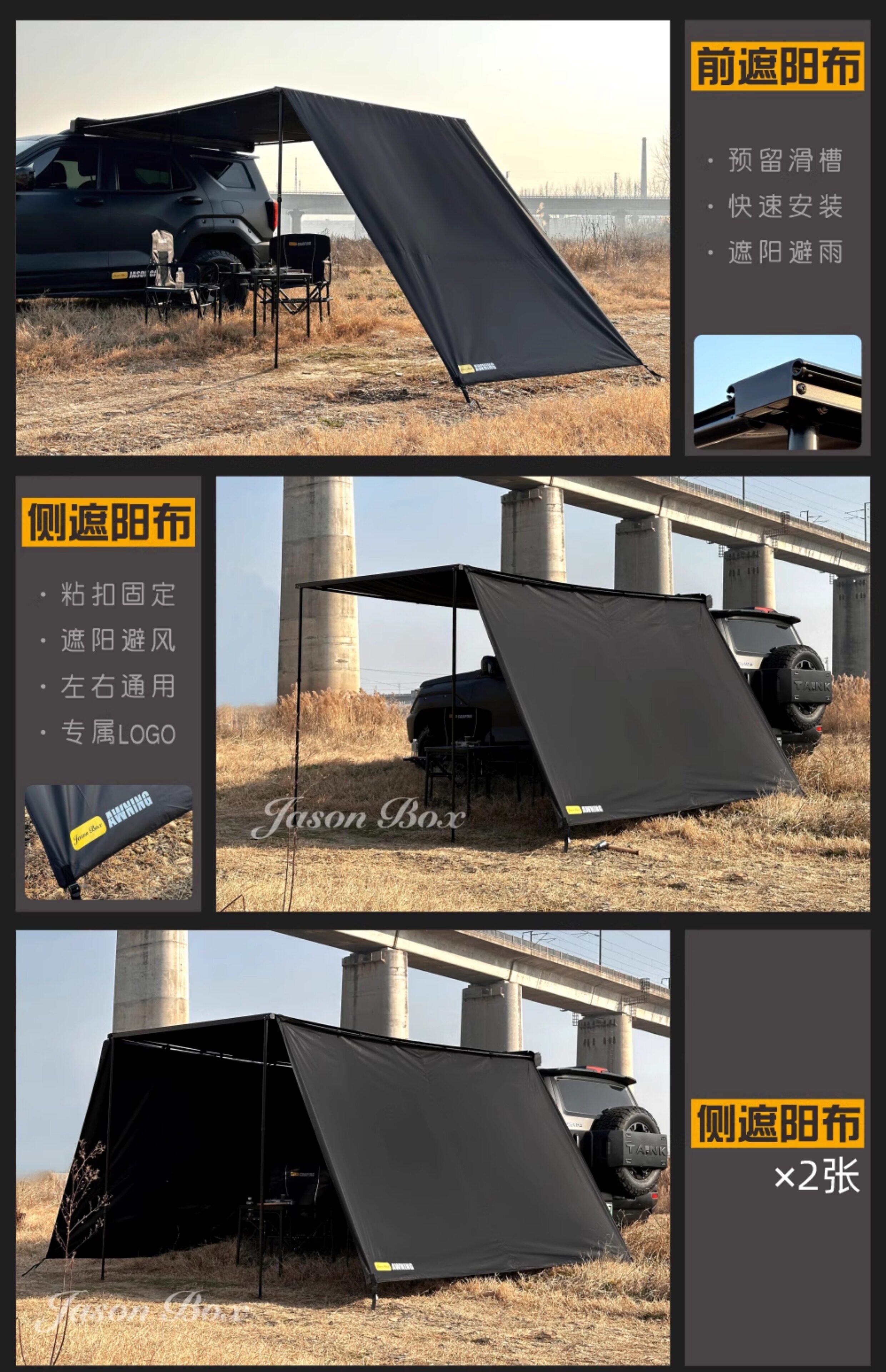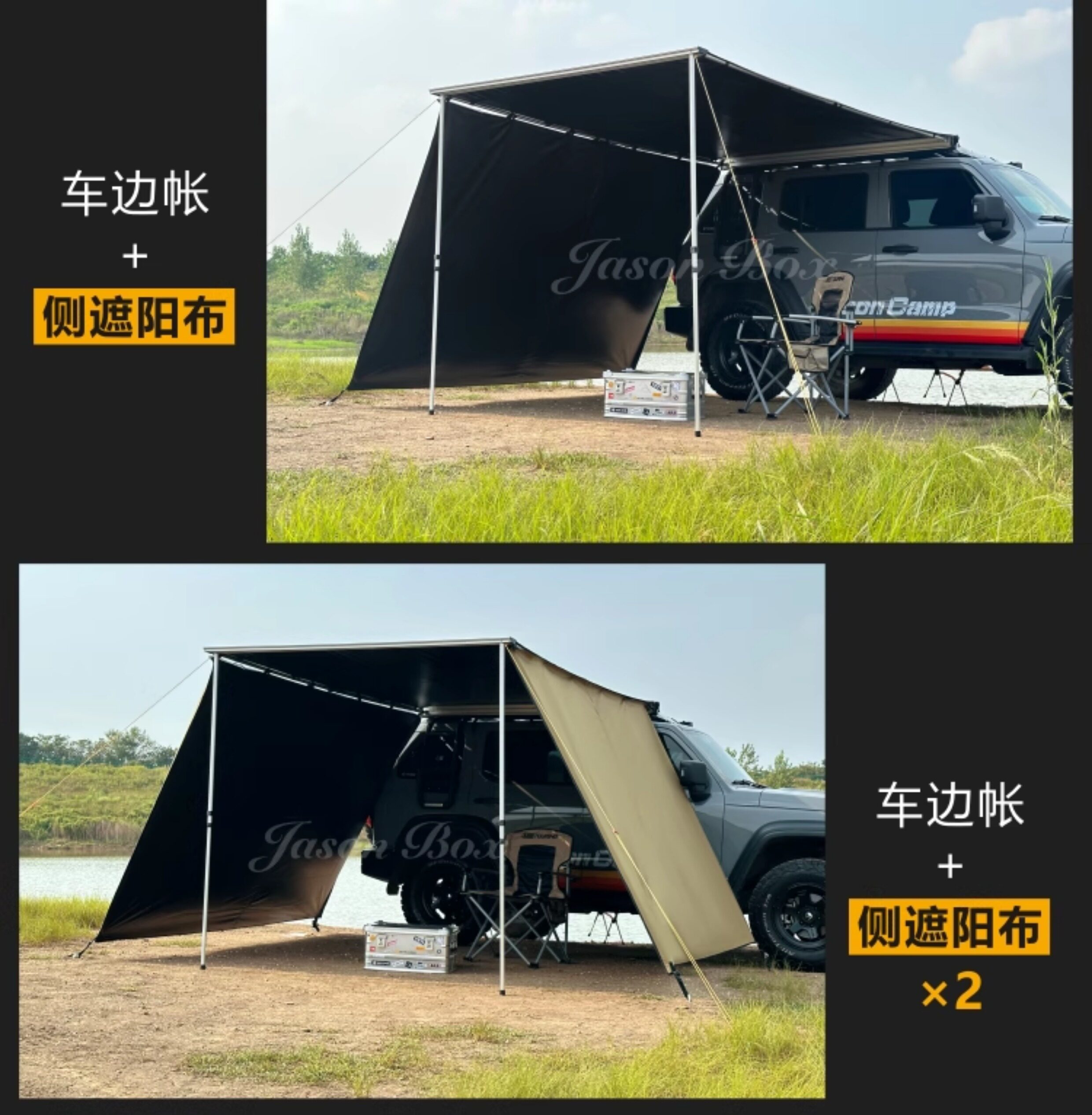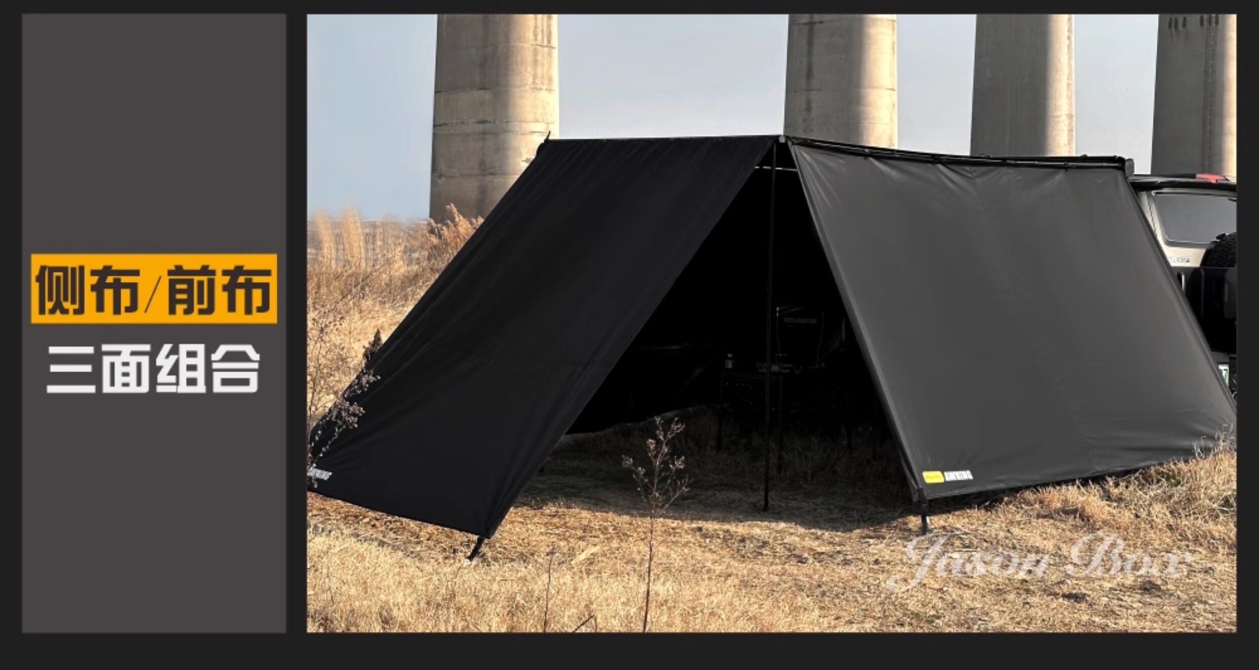 簡森戶外車邊帳篷側帳前布/側面遮陽簾防曬防風pu黑膠塗層全黑化