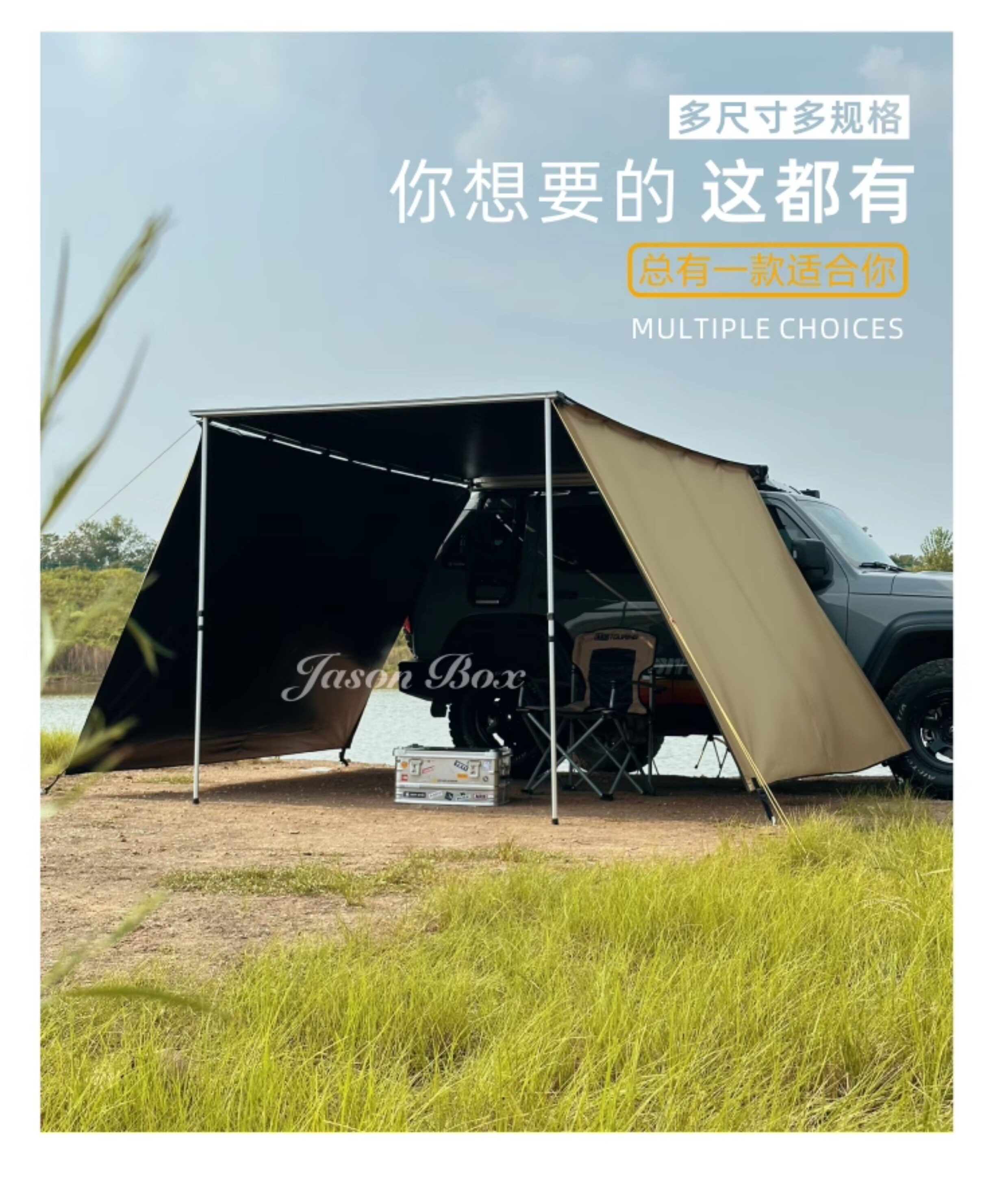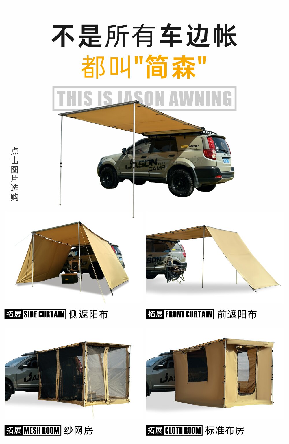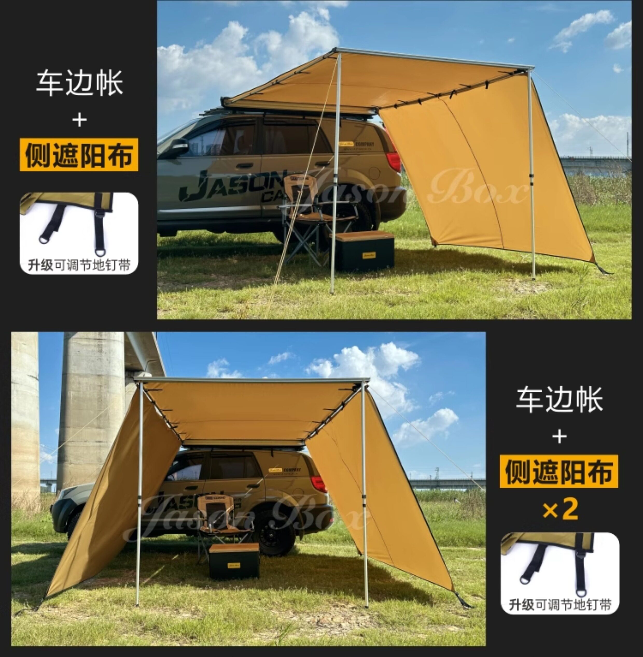 簡森戶外車邊帳篷側帳前布/側面遮陽簾防曬防風pu黑膠塗層全黑化