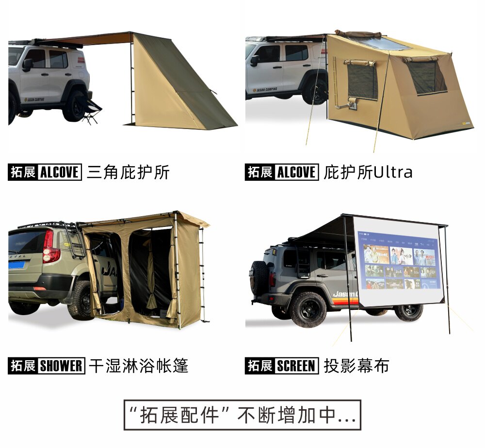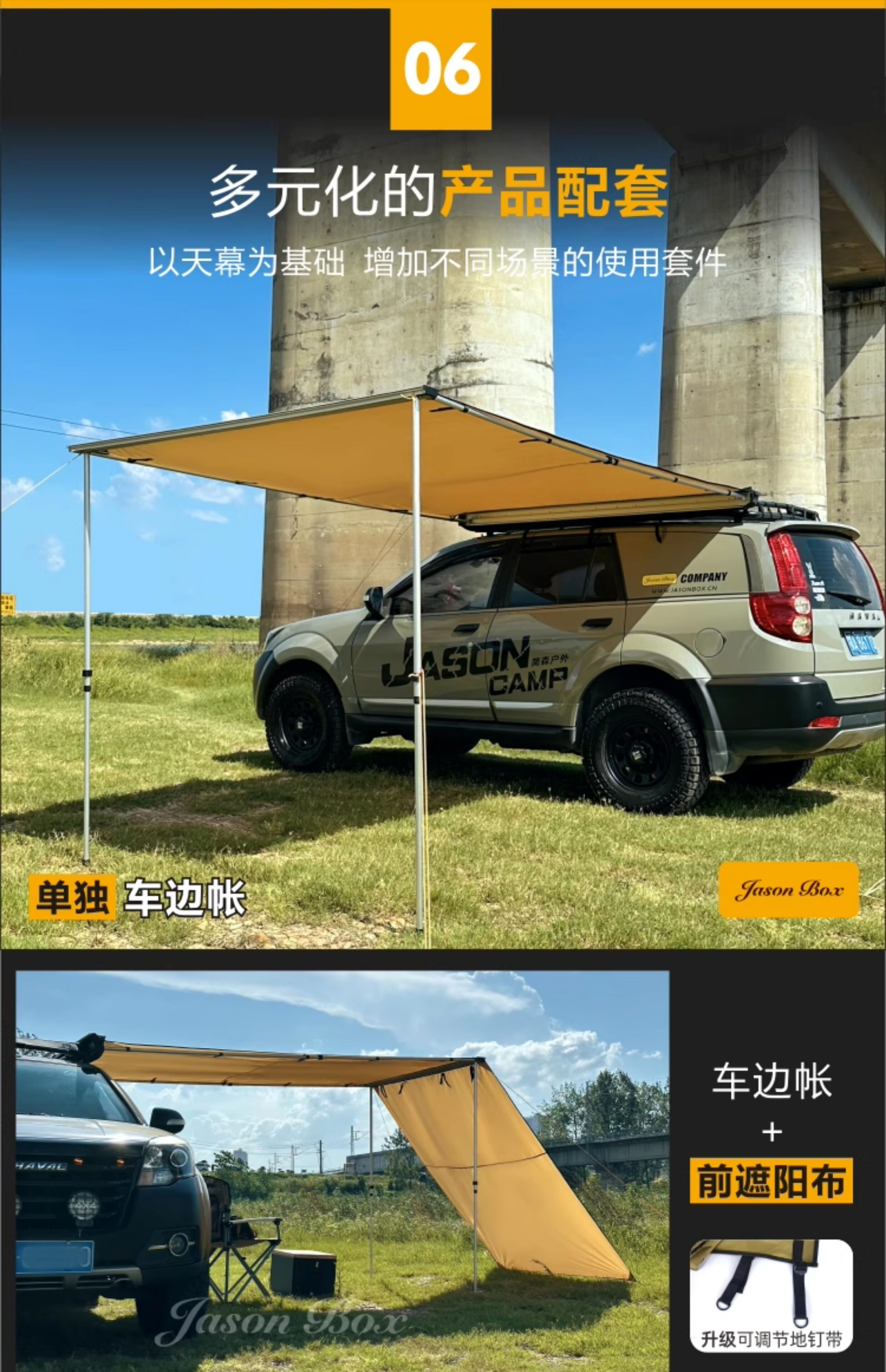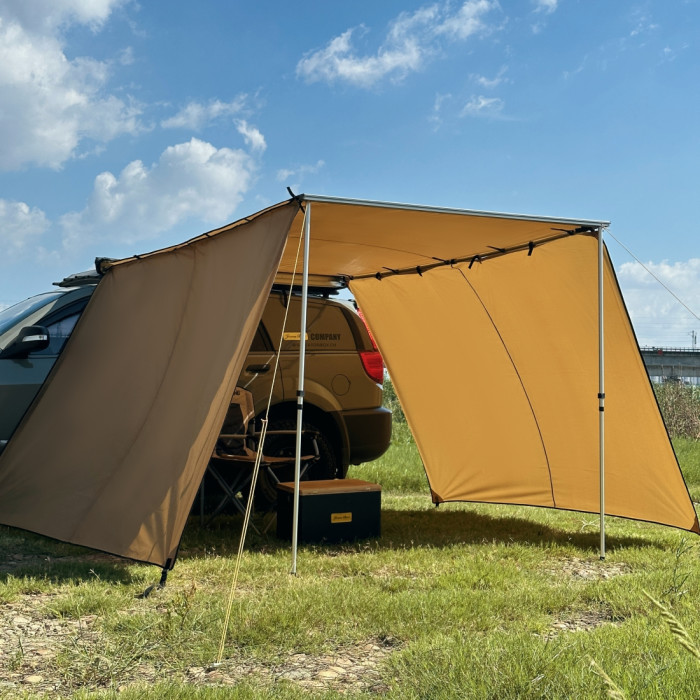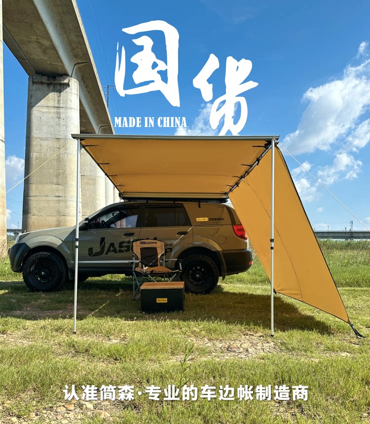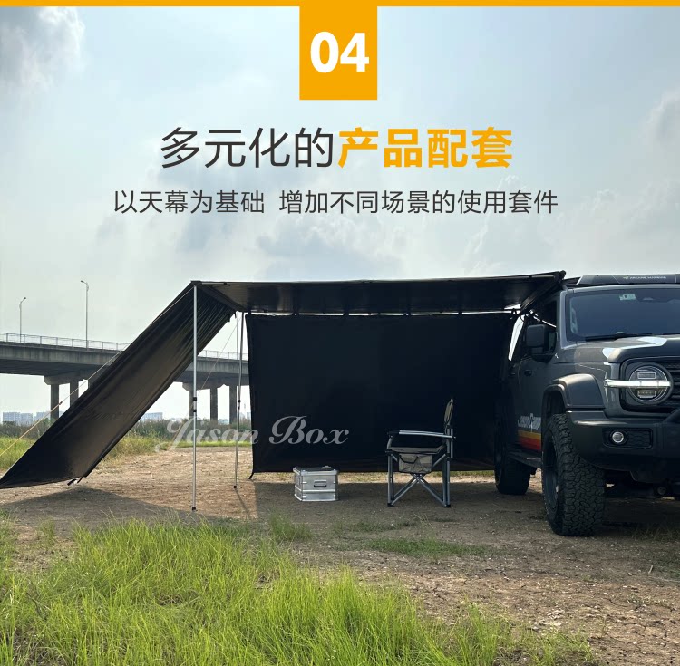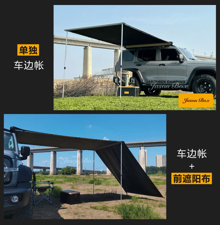 簡森戶外車邊帳篷側帳前布/側面遮陽簾防曬防風pu黑膠塗層全黑化