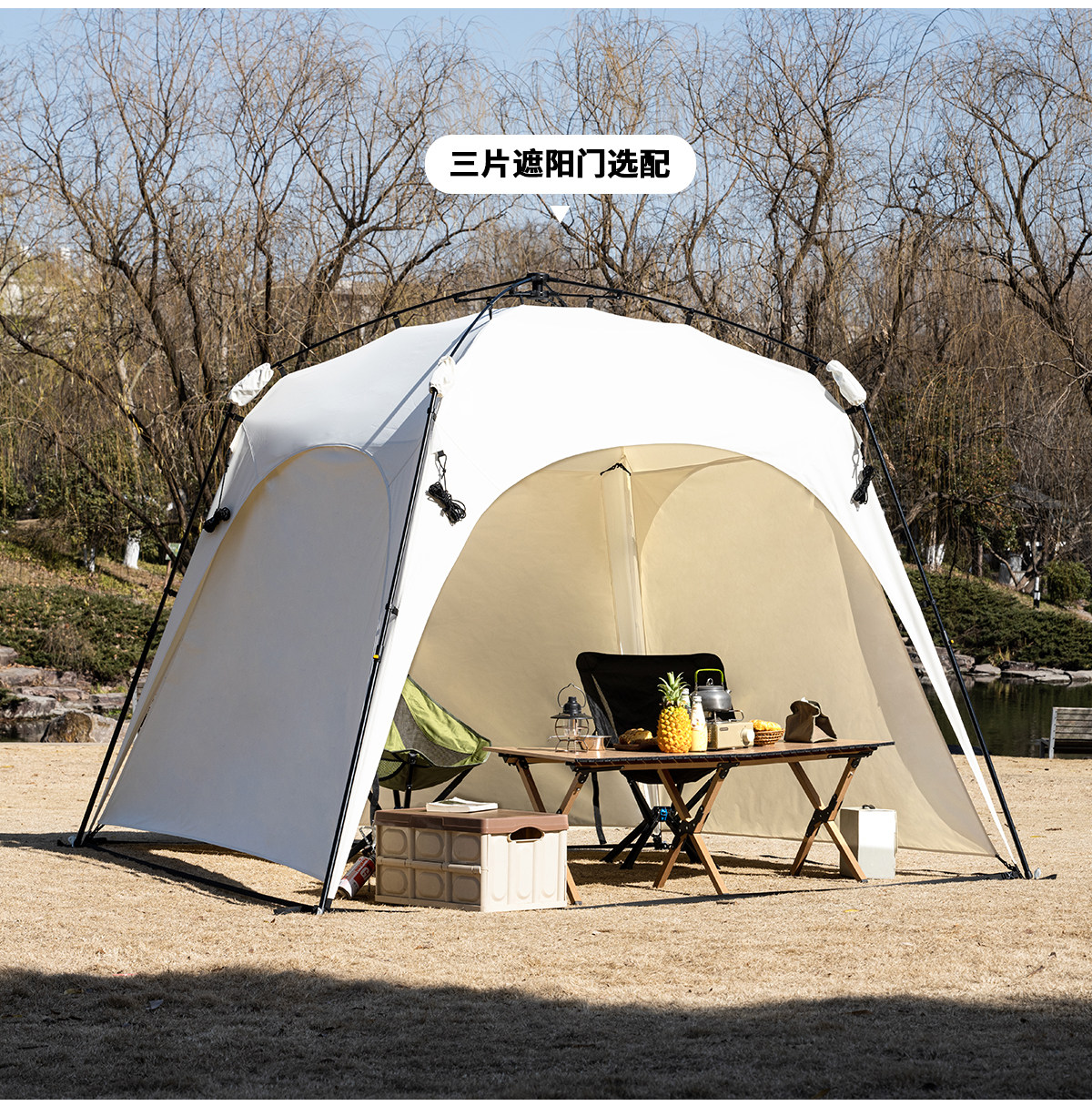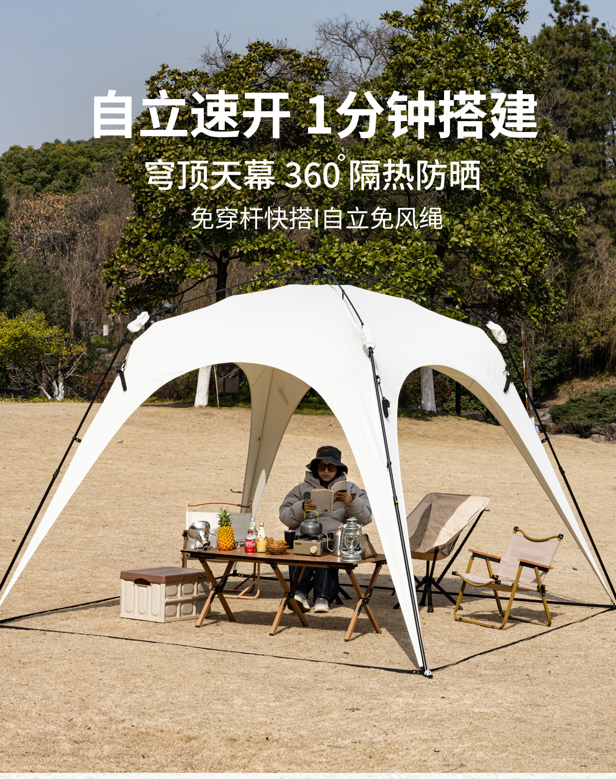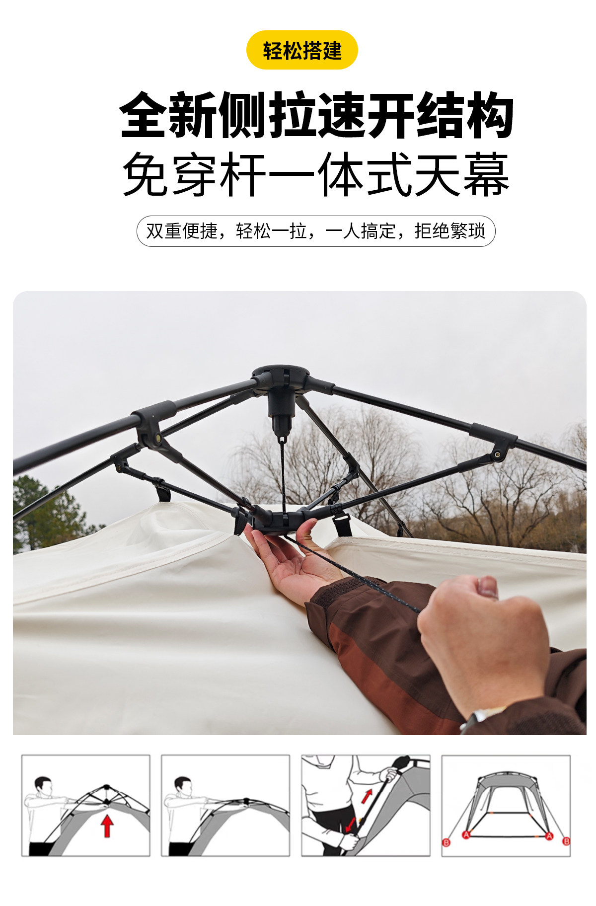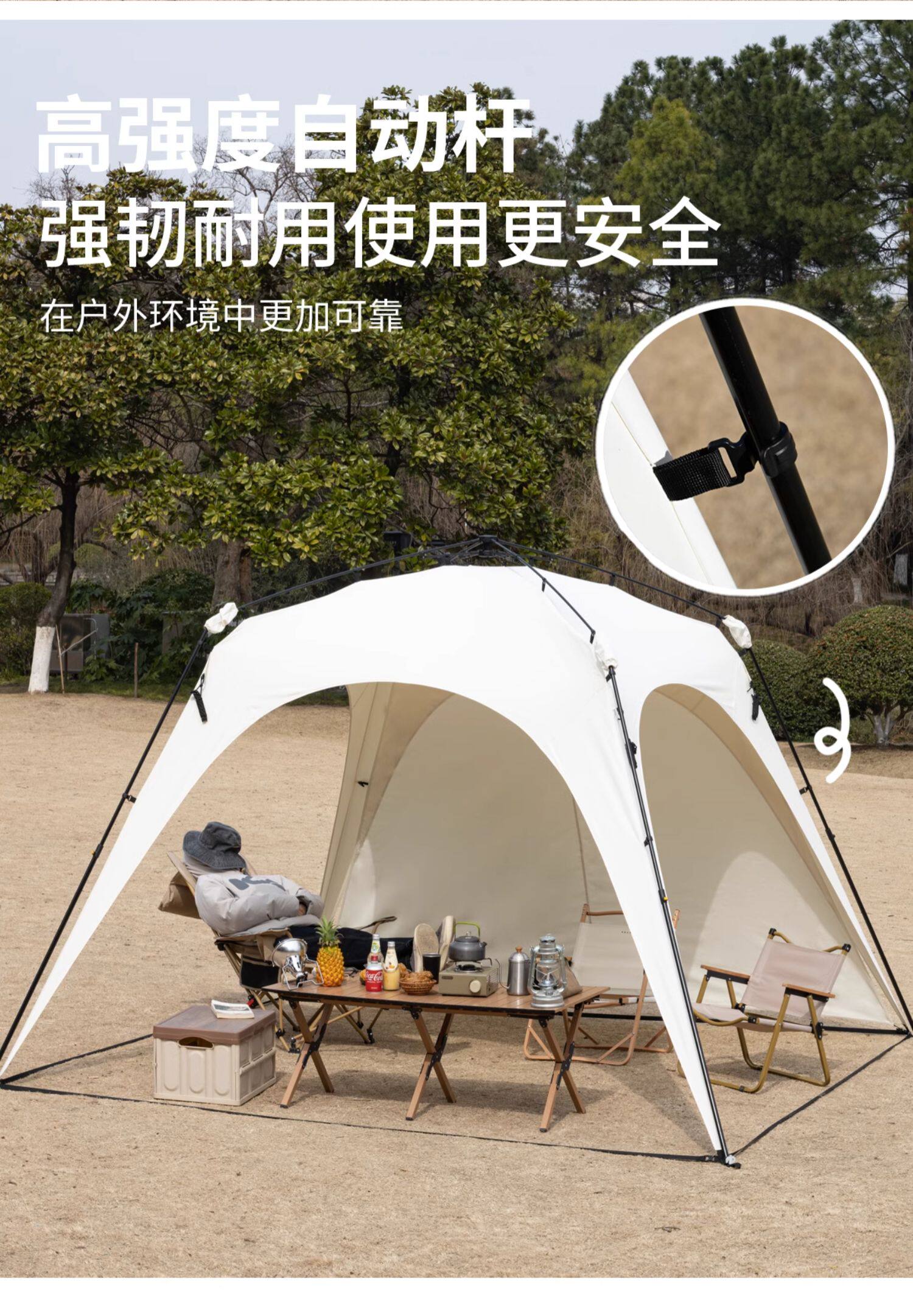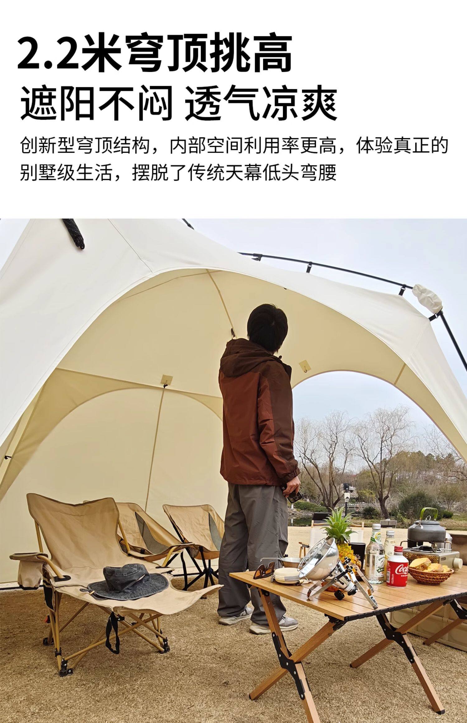 自動桿速開戶外穹頂天幕帳篷黑膠防曬露營遮陽棚可攜式防風防雨