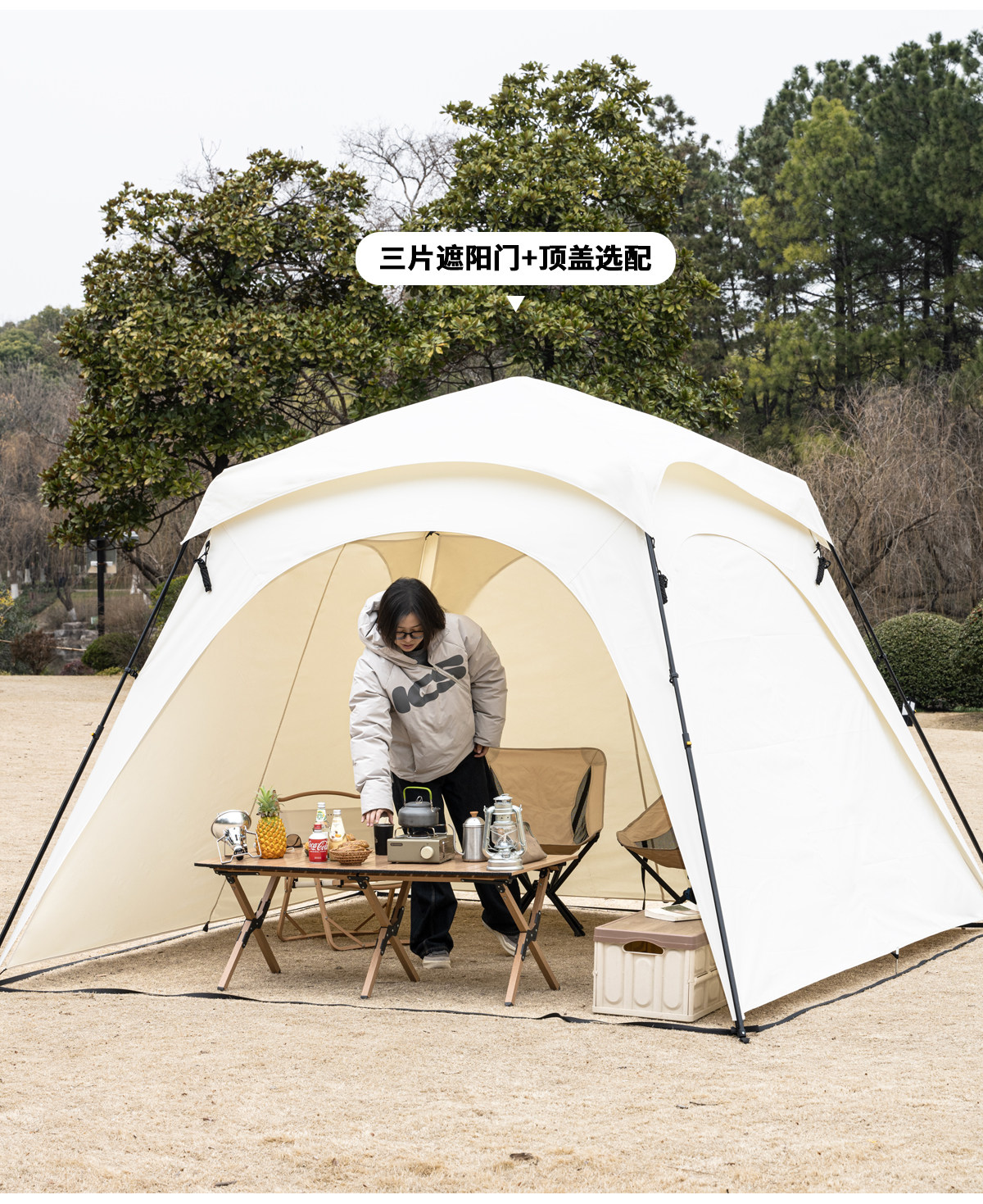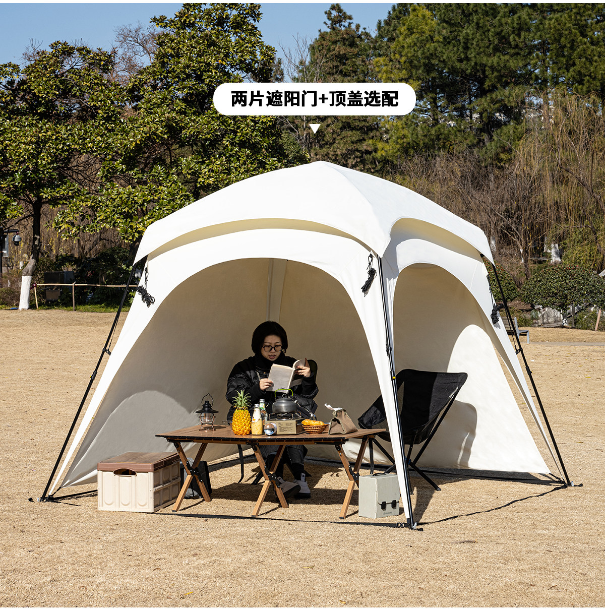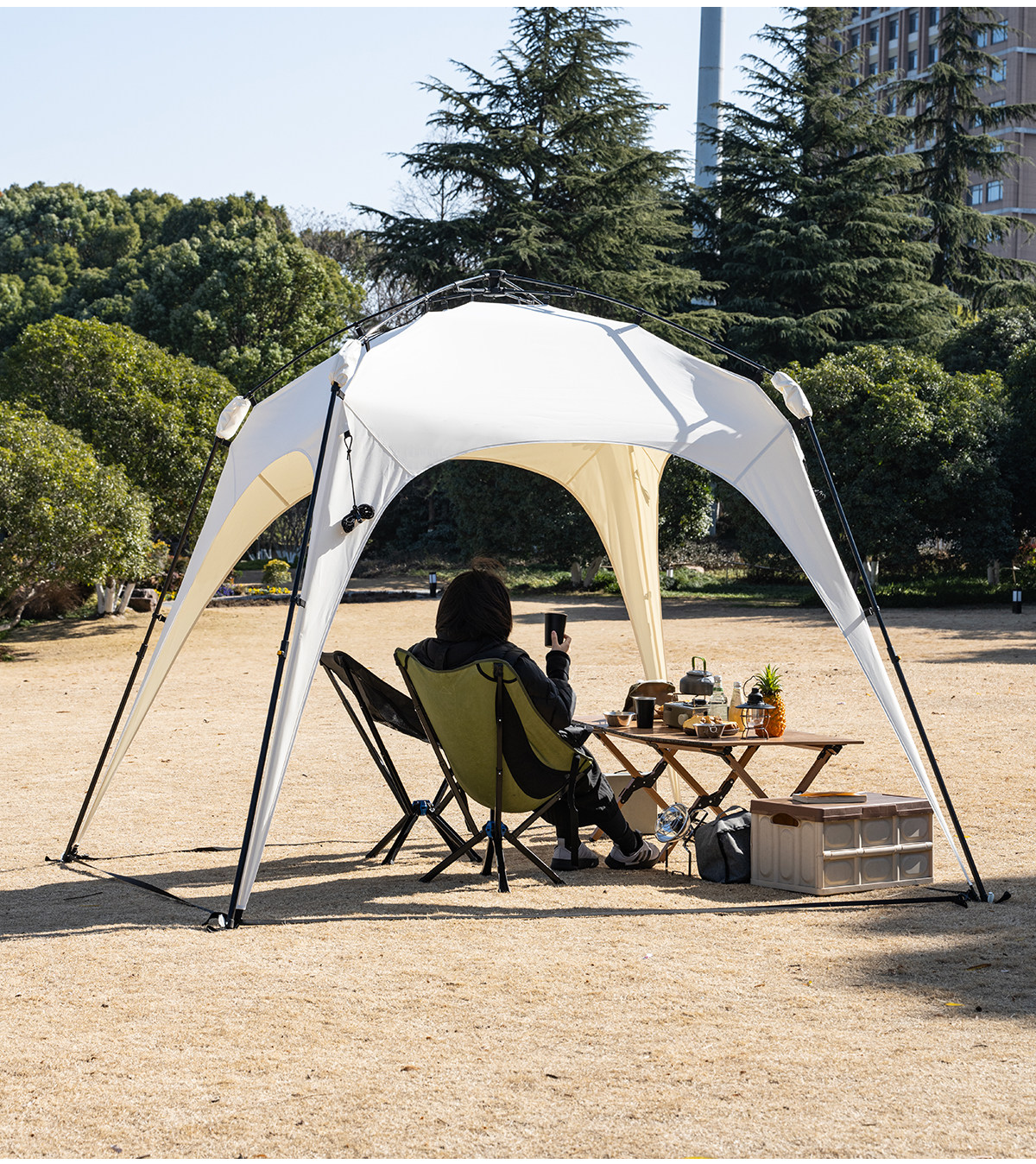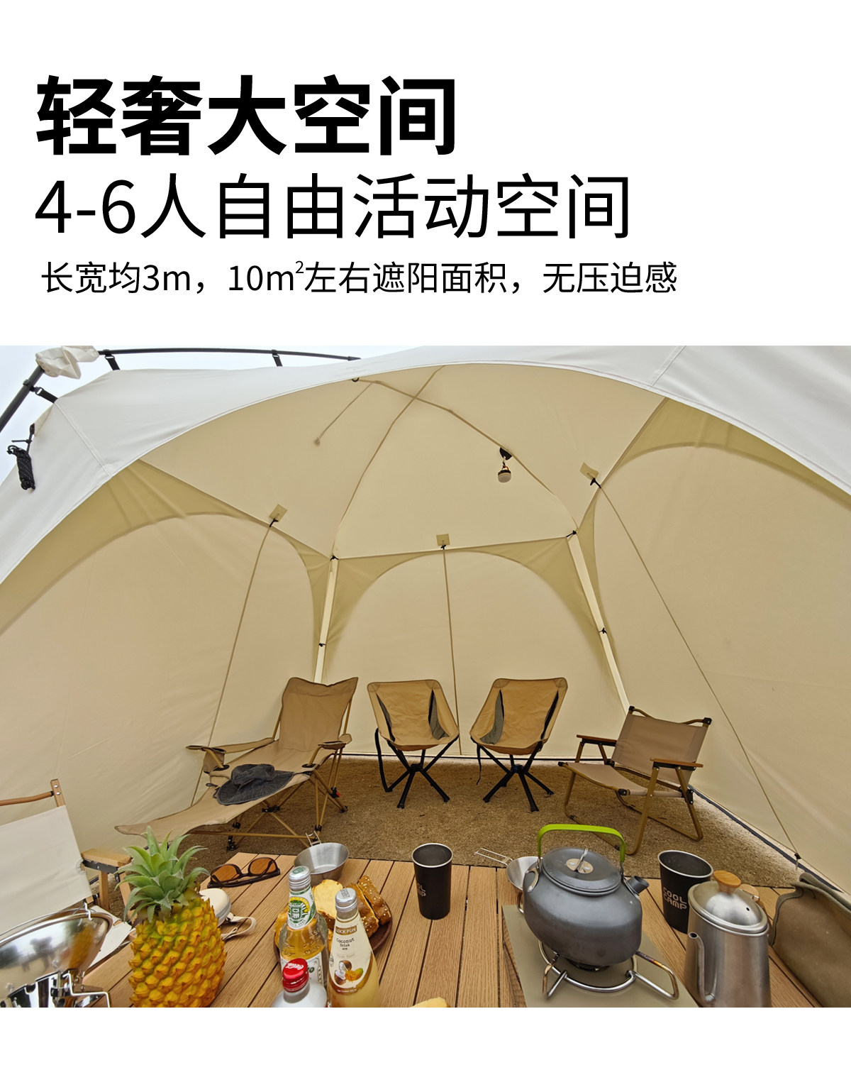 自動桿速開戶外穹頂天幕帳篷黑膠防曬露營遮陽棚可攜式防風防雨