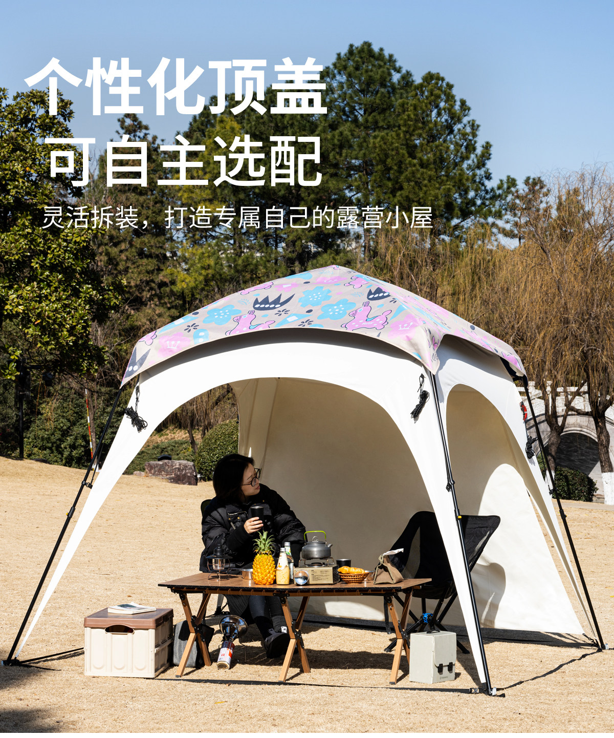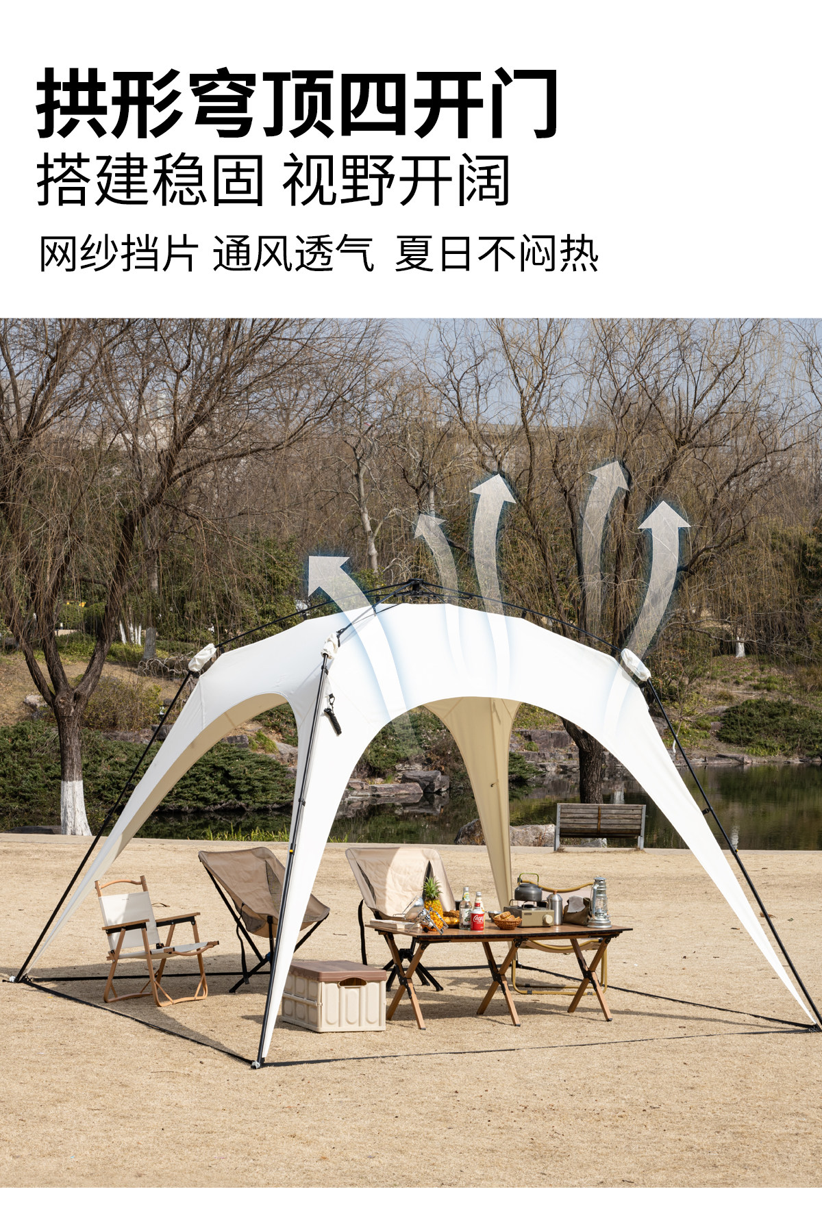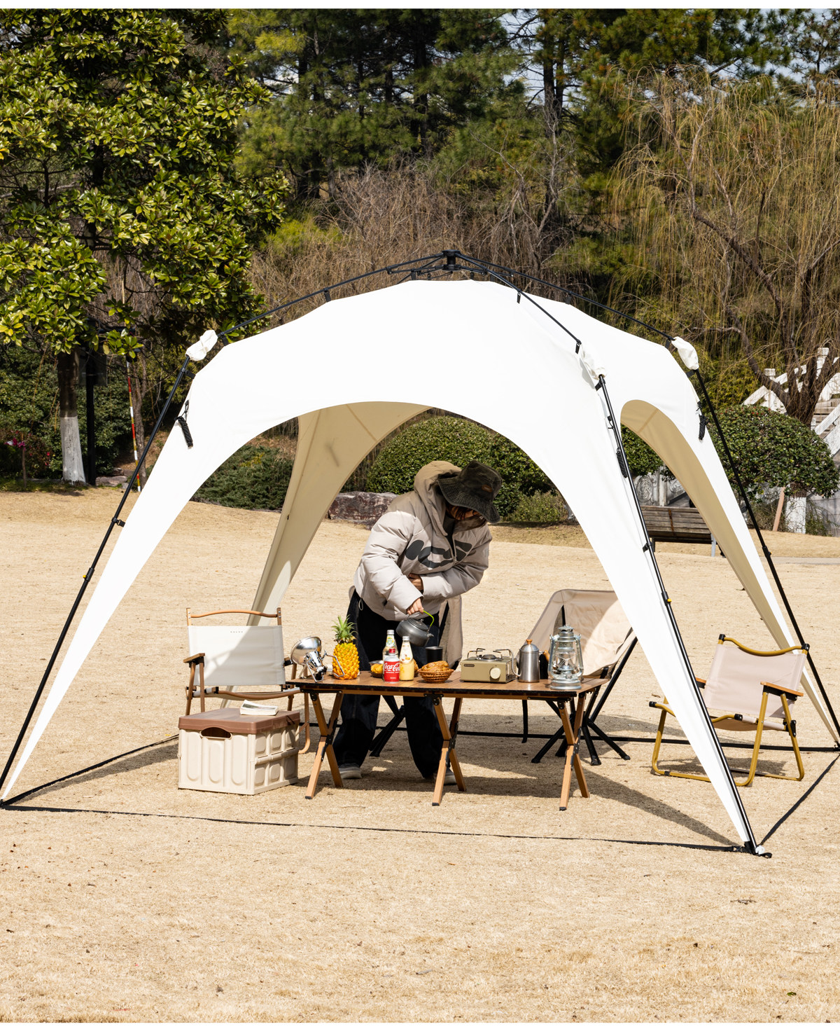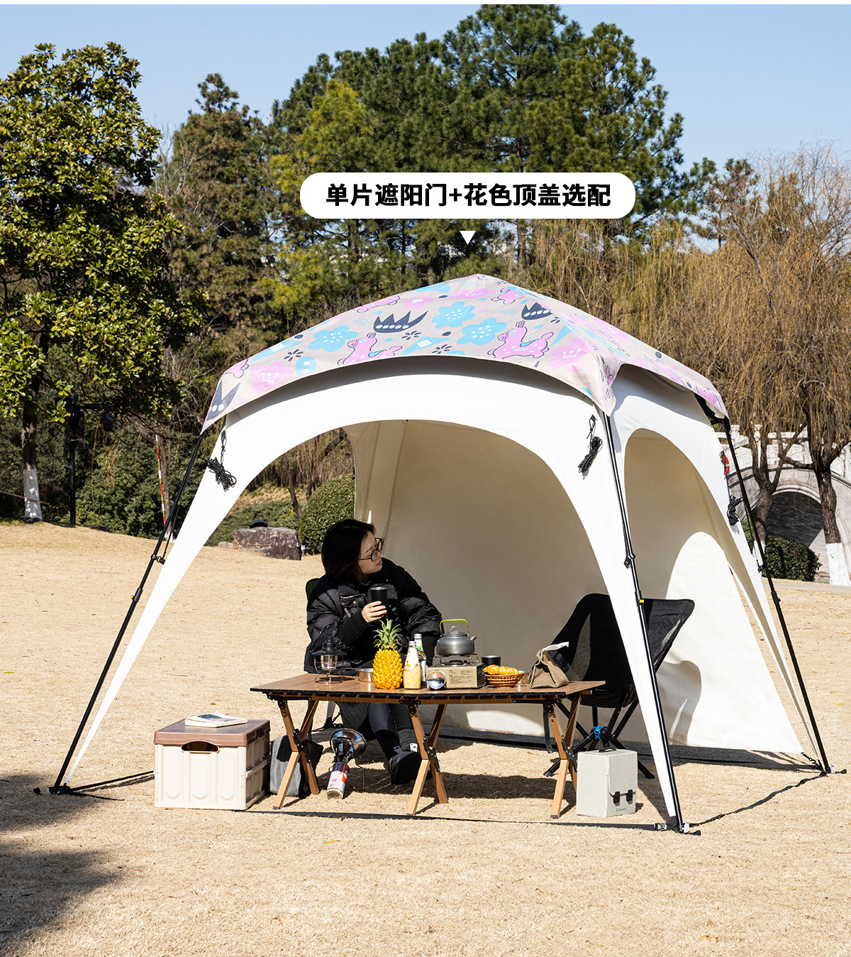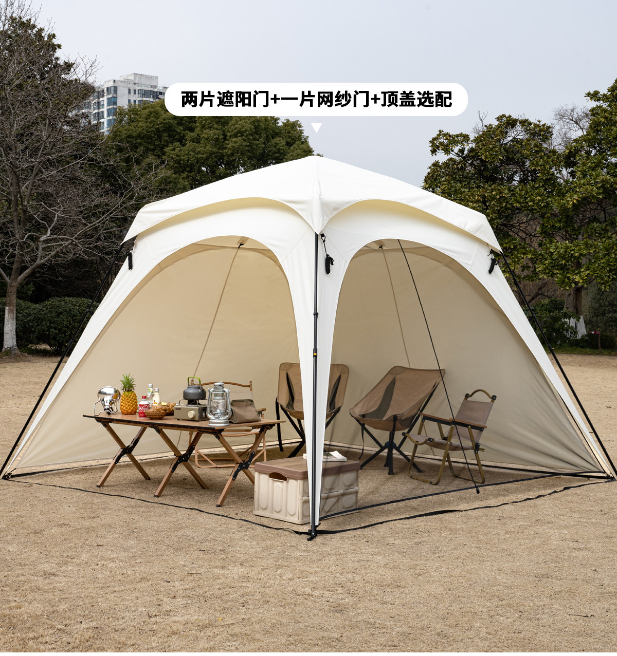 自動桿速開戶外穹頂天幕帳篷黑膠防曬露營遮陽棚可攜式防風防雨