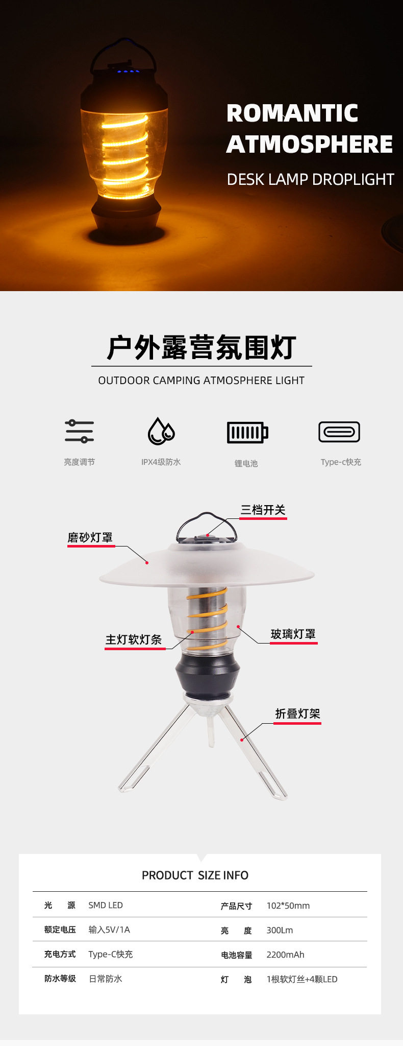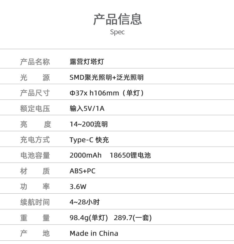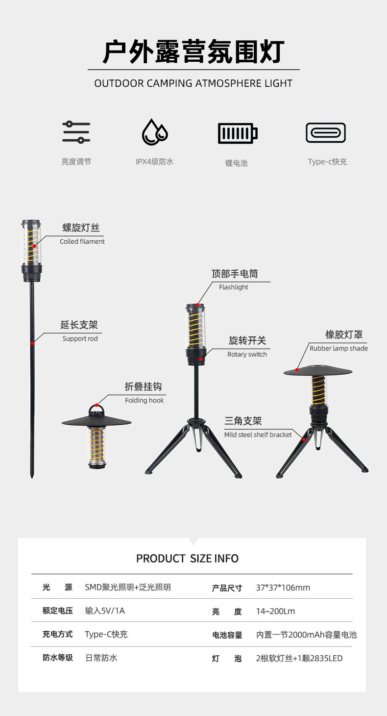 探界者戶外可攜式小夜燈可攜式手電筒三腳支架照明燈塔天幕帳篷氛圍燈