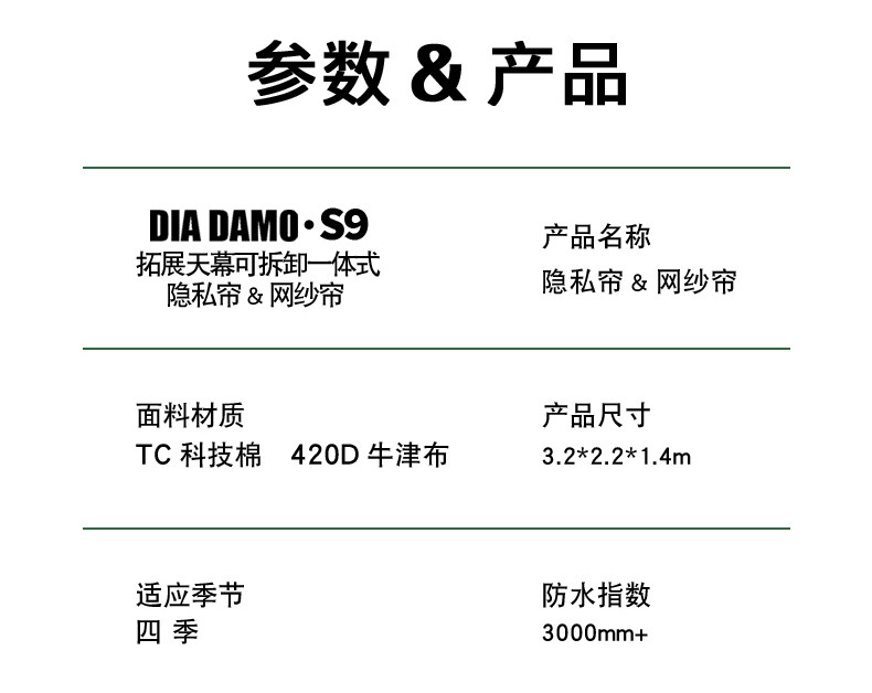 DIA DAMO/迪達矇 S9 拓展天幕可拆卸一體式隱私簾加網紗簾