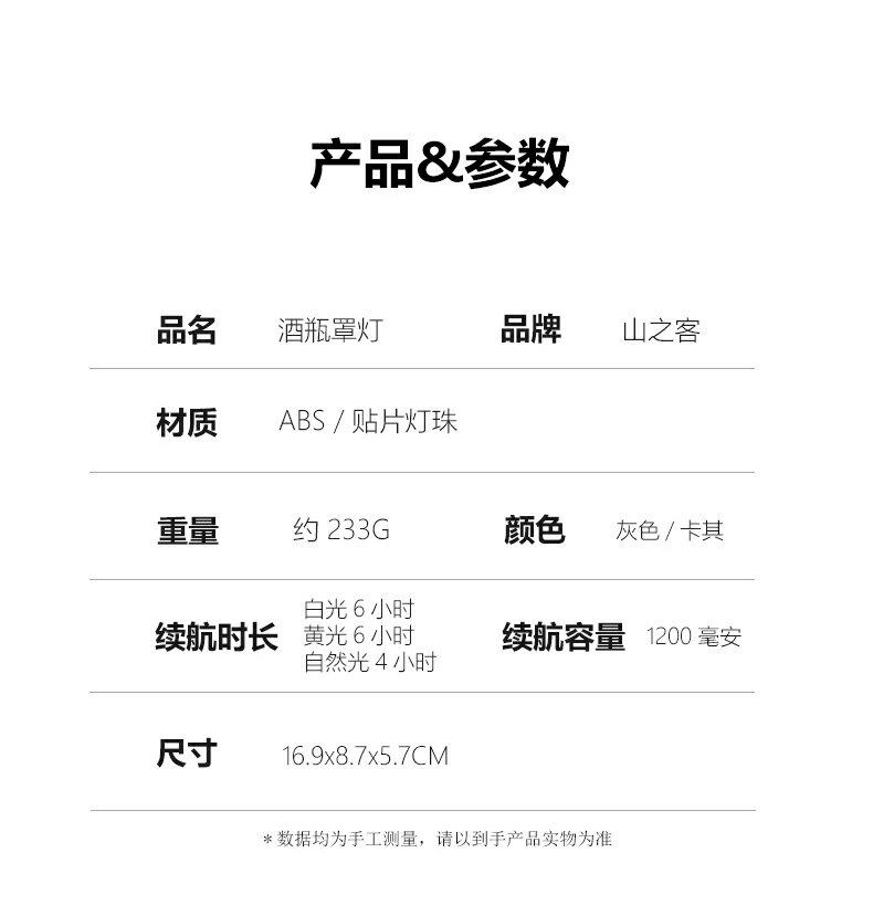山之客酒瓶燈罩戶外露營燈野營氛圍燈防水可攜式收納營地照明帳篷燈