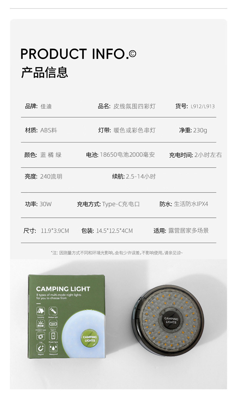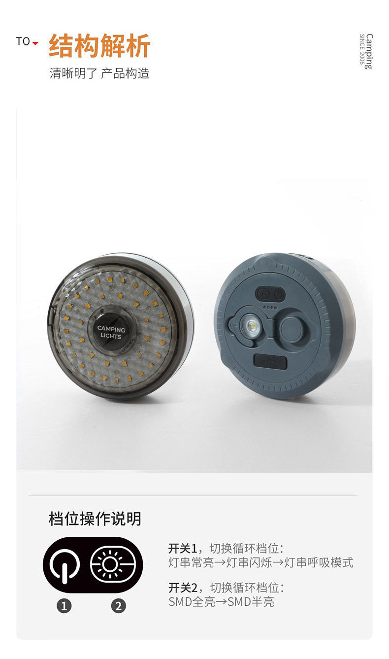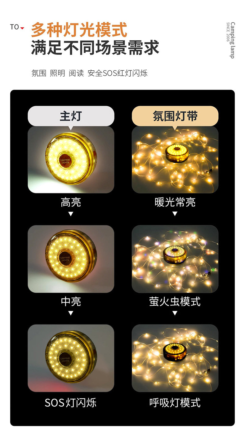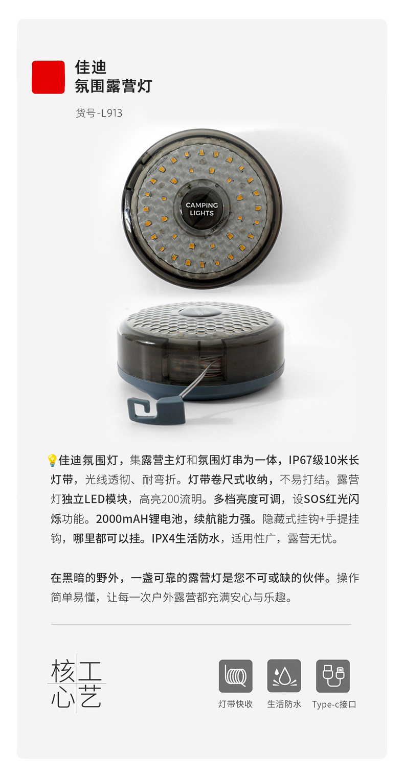 探界者戶外氛圍帳篷應急氛圍燈照明燈可攜式卷尺燈防水收納野營燈串