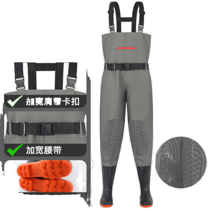 下水褲加厚耐磨捕魚半身雨褲男女連體防水衣服全身皮叉褲子水鞋