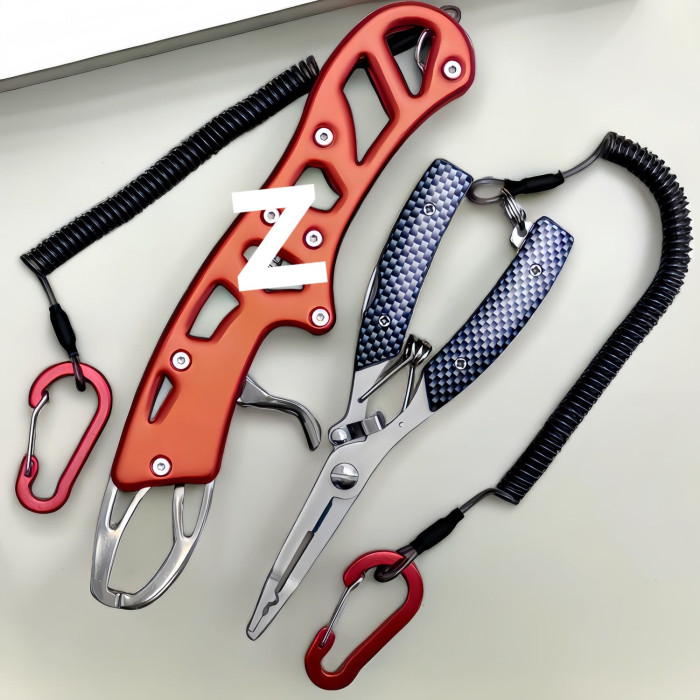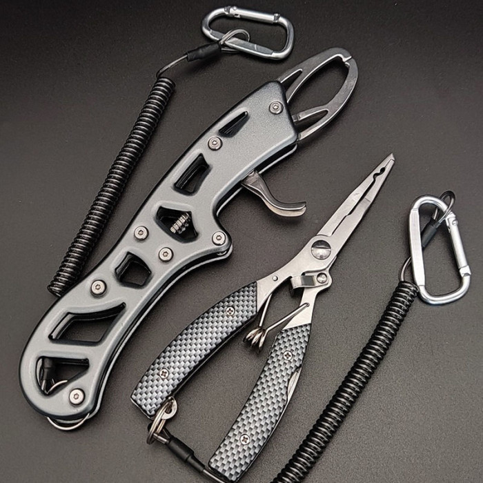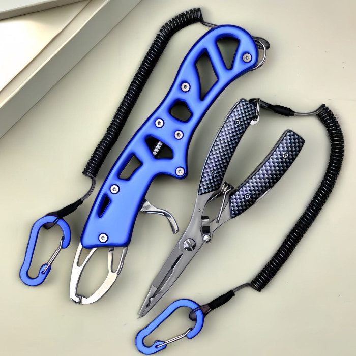 新款格子紋不鏽鋼路亞鉗控魚器開環綁線摘鉤戶外釣魚專用控魚鉗