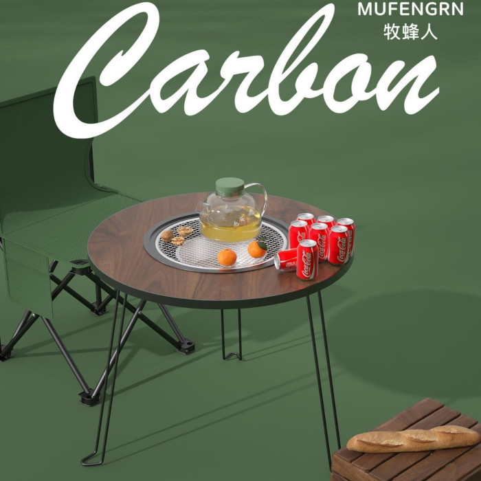 戶外可攜式折曡桌燒烤圍爐煮茶桌露營家庭院聚餐燒烤桌木炭烤爐