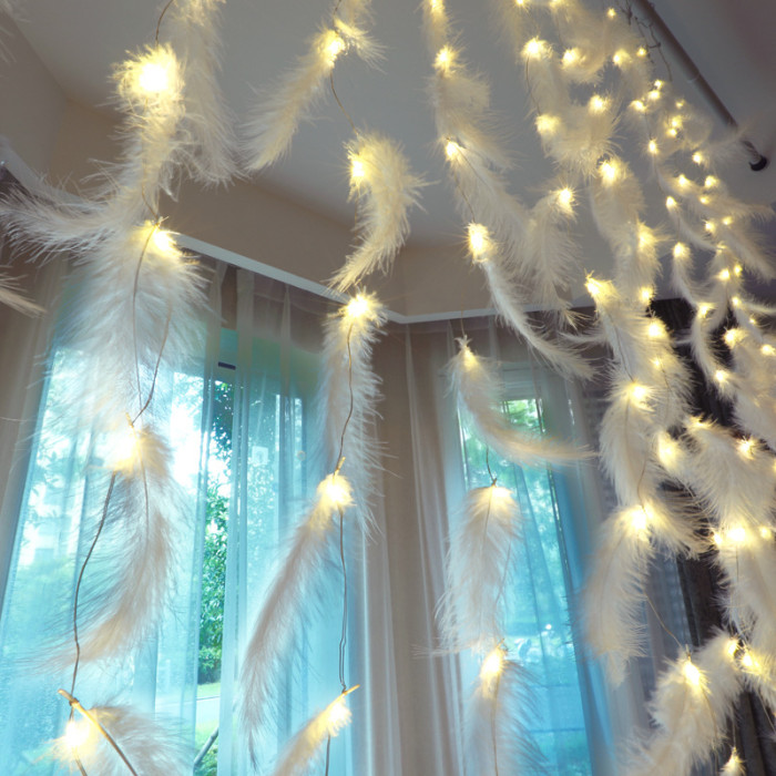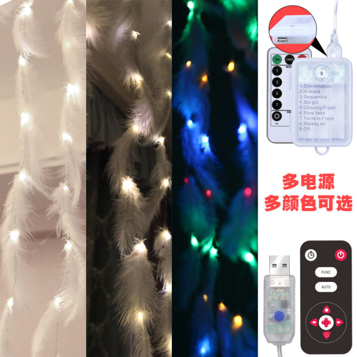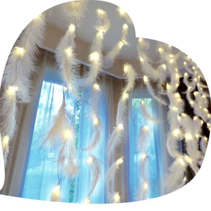 閃光羽毛星星冰條LED彩燈串七夕表白求婚氛圍房間窗簾布置裝飾品