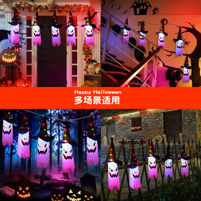 萬聖節巫師帽幽靈led彩燈掛件鬼節恐怖氛圍房間裝扮布置閃燈掛飾
