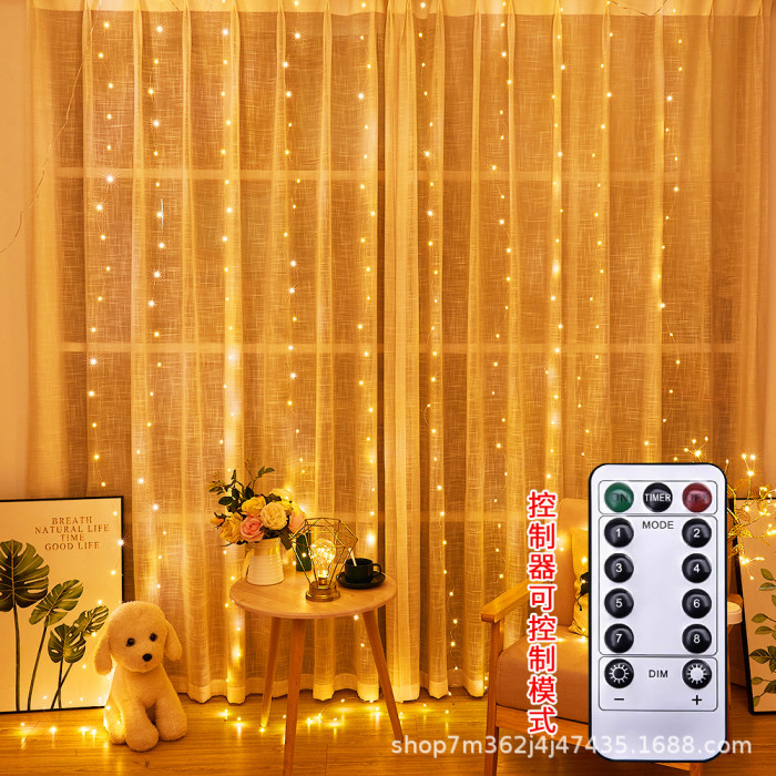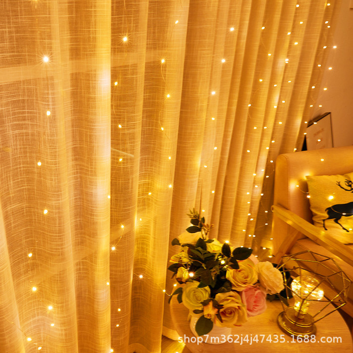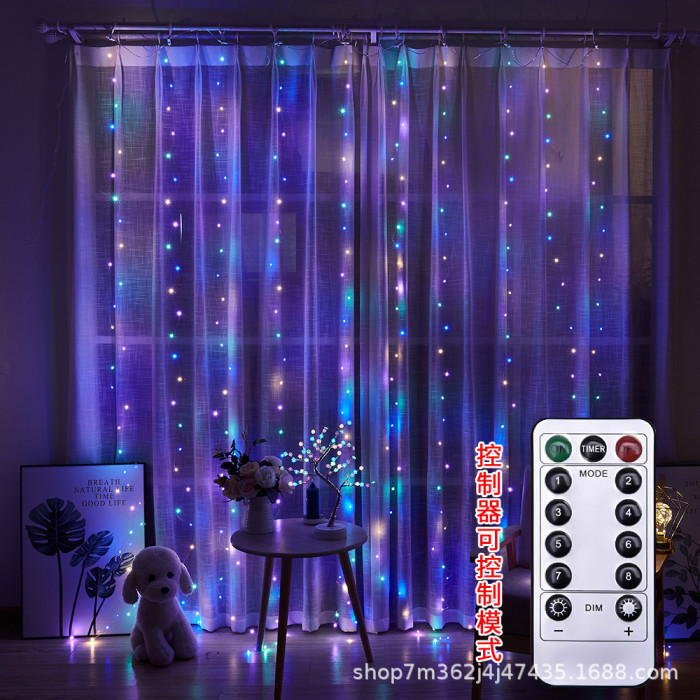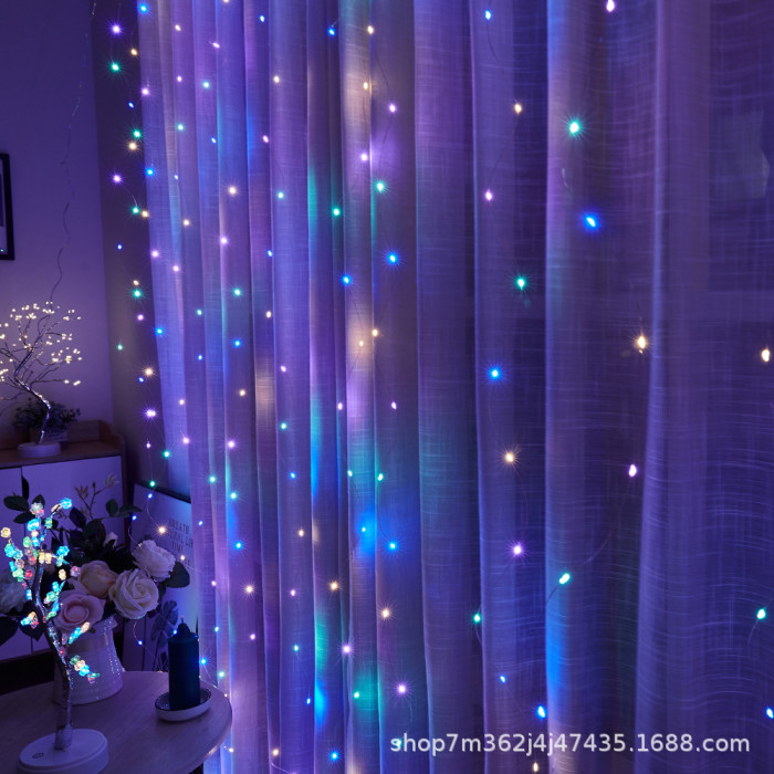 LED彩虹銅絲燈300L窗簾燈USB遙控房間背景裝飾聖誕節布置