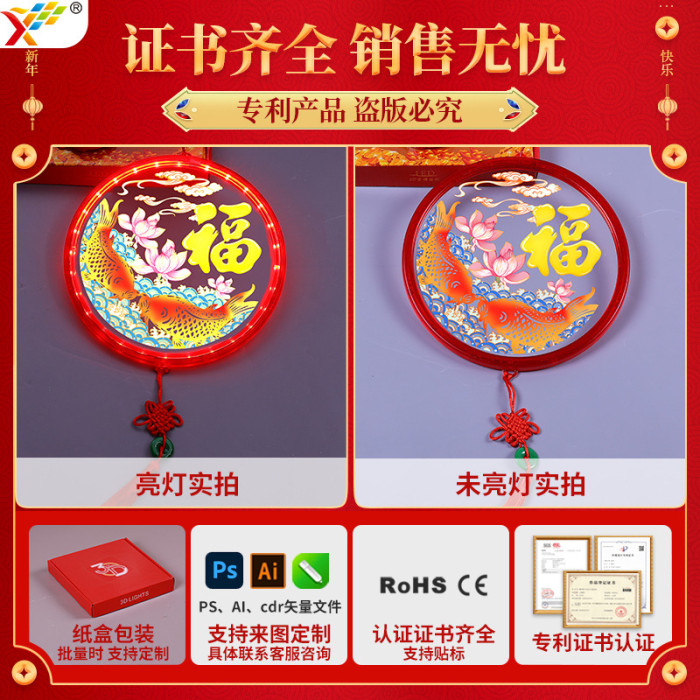 發光年年有餘福字掛件LED彩燈2026馬年春節氛圍室內裝飾布置掛飾