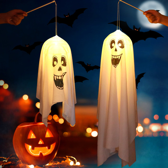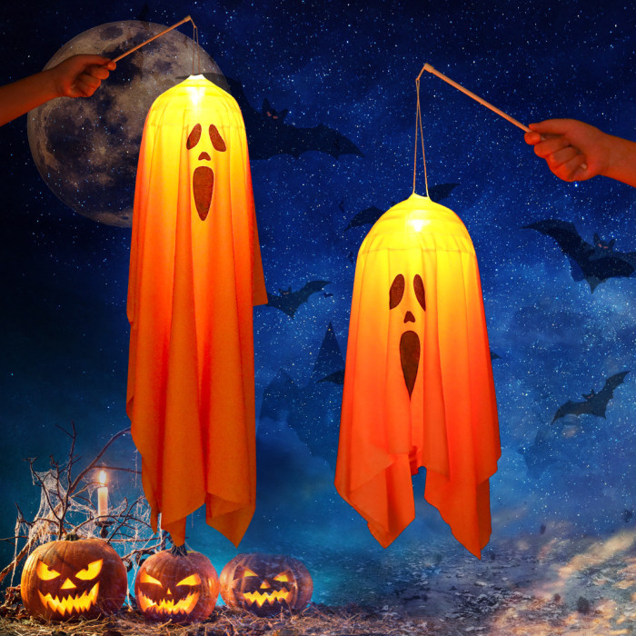 2025萬聖節發光幽靈吊鬼led彩燈鬼節兒童手提道具裝飾布置掛飾